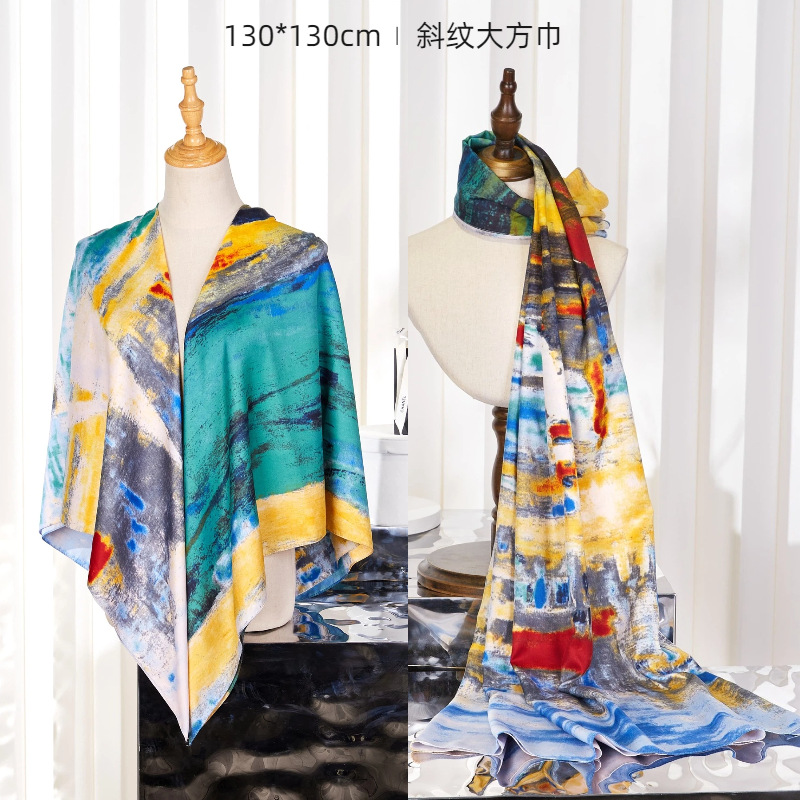국경 간 인기 판매 130 대형 사각형 스카프 능직 인쇄 실크 스카프 여성용 얇은 목도리 맞춤형 긴 스카프 민족 스카프스토어 가기