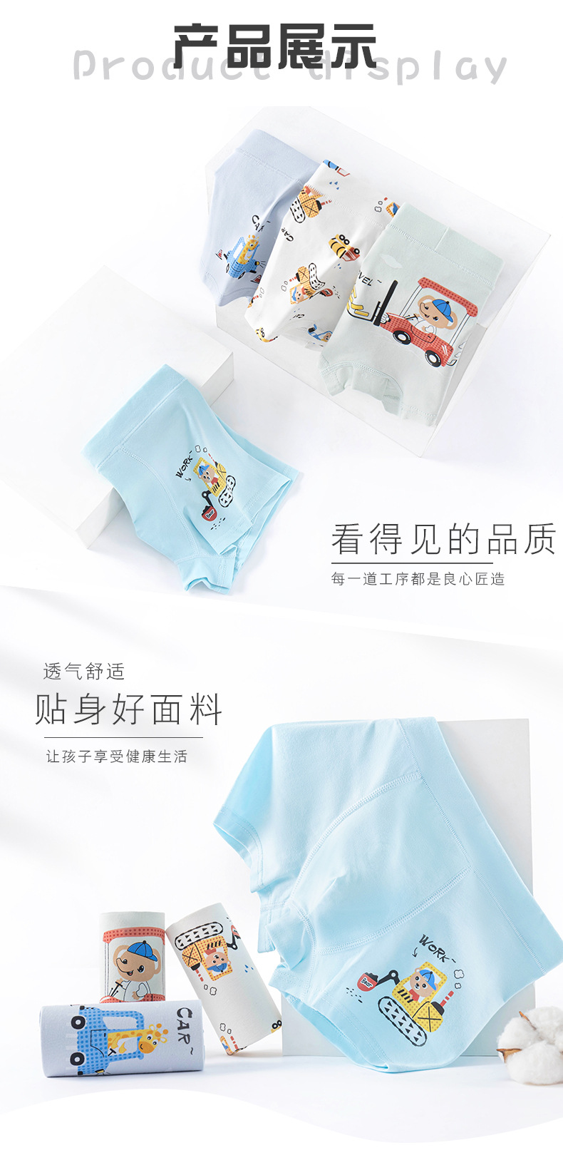 50수 면 아동 속옷, 순면, A형 남아 속옷, 유아용 사각팬티, 엉덩이를 조이지 않는 어린이용 사각팬티스토어 가기