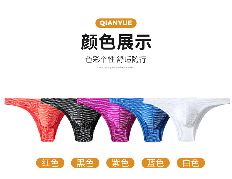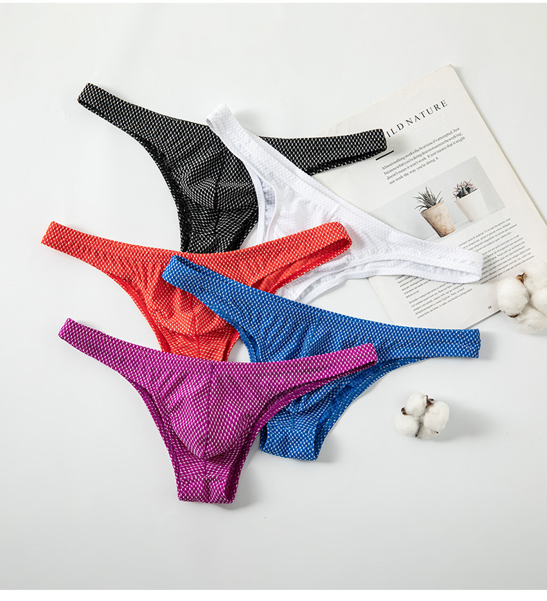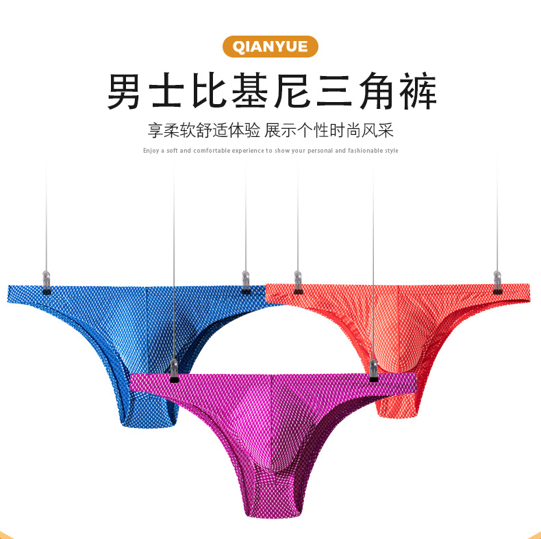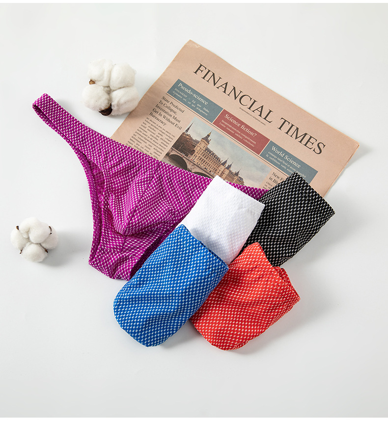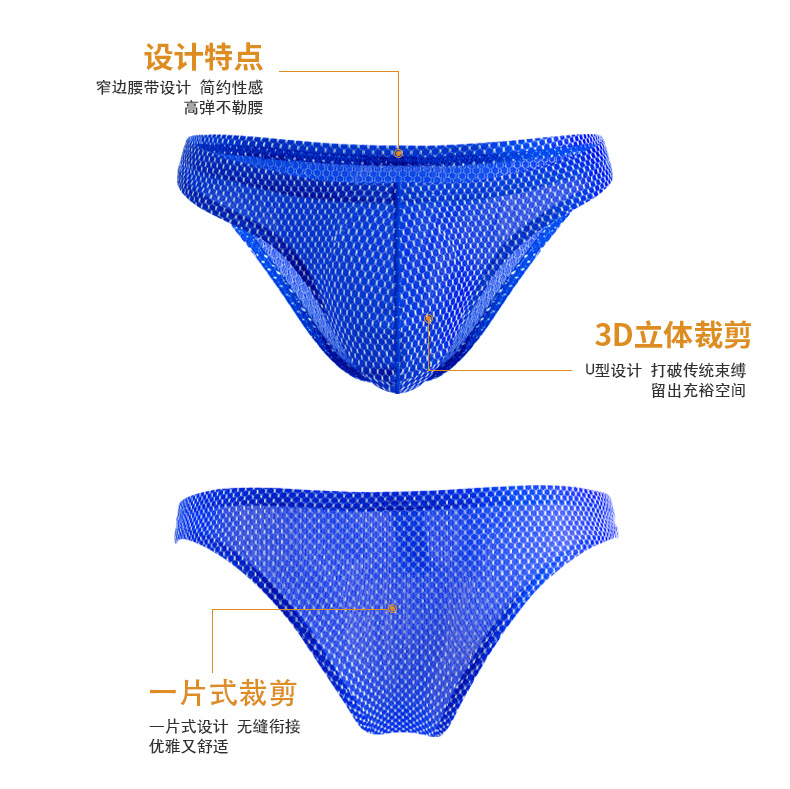 남성용 비키니 팬티, 로우 웨이스트, 섹시하고 흥미로운 아이스 실크 팬티, 편안하고 통기성이 뛰어난 메쉬 자카드 팬티