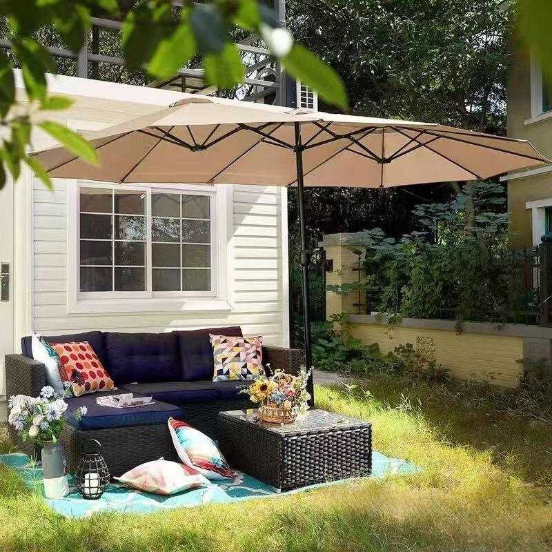 야외 상업용 대형 태양 우산, 야외 카페 테라스 우산, 인터넷 연예인 스톨 우산, 3헤드 중간 기둥 우산, 안뜰 차양스토어 가기