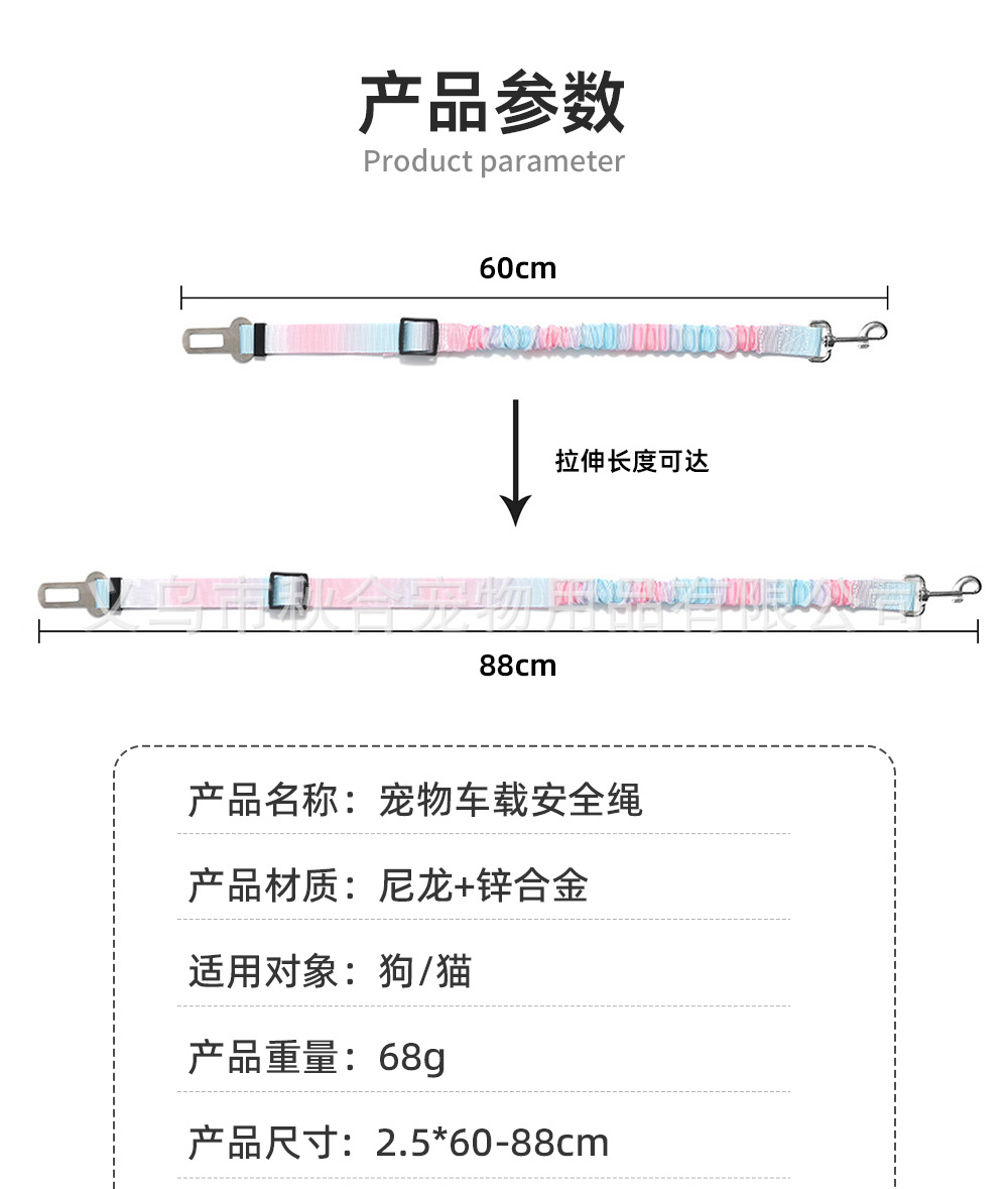 국경 간 애완 동물 자동차 제품 개 좌석 벨트 밖으로 견인 밧줄 고양이 개 자동차 시트 고정 로프 망원경 탄성