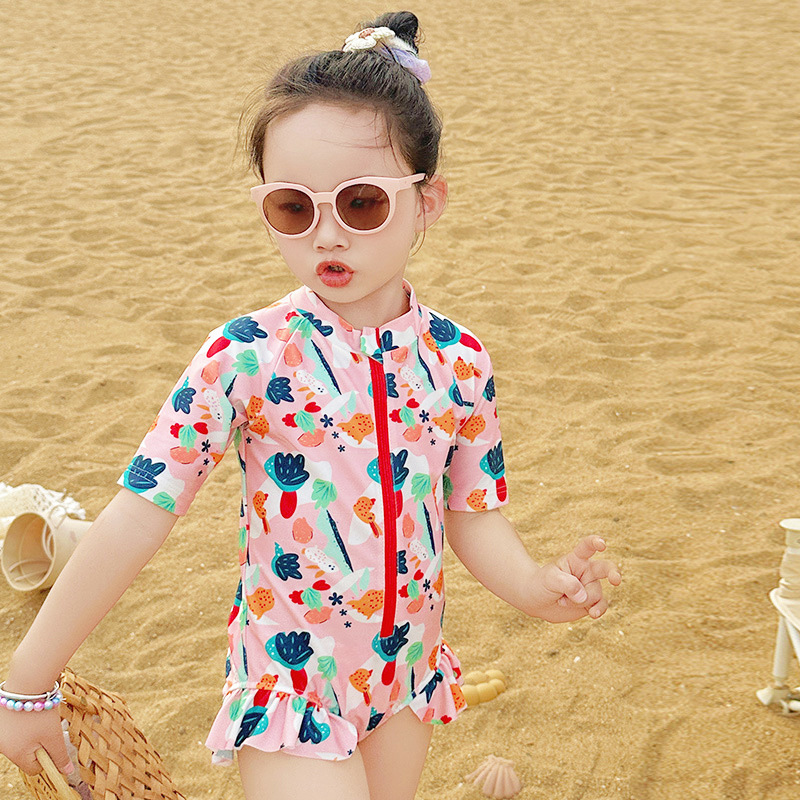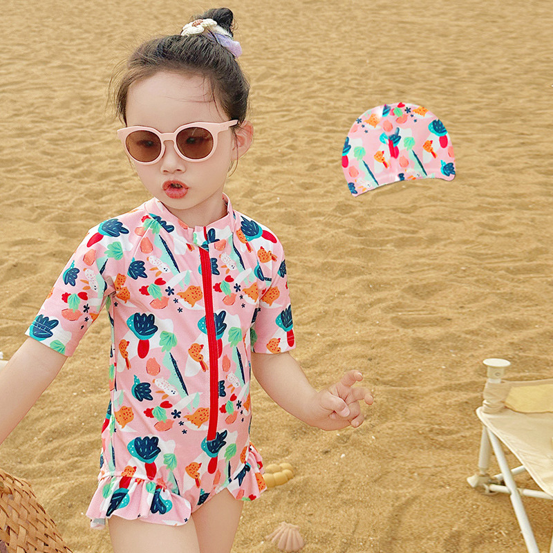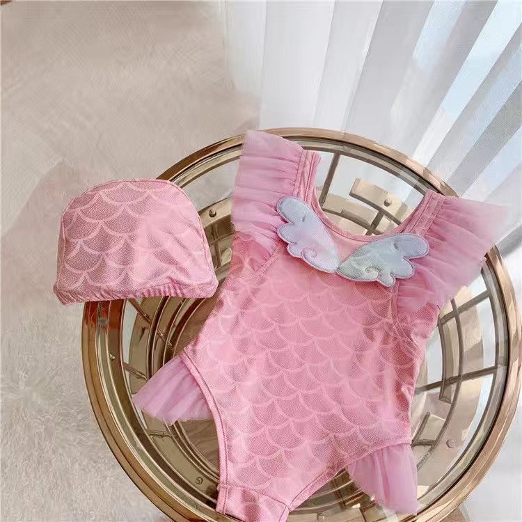 • 핑크 날개 원피스 수영복 + 수영모