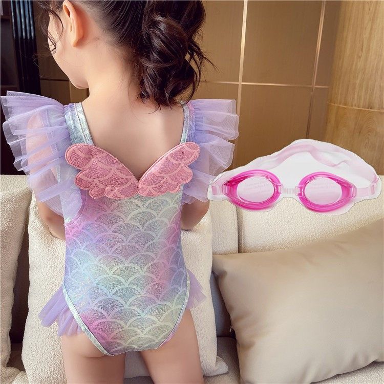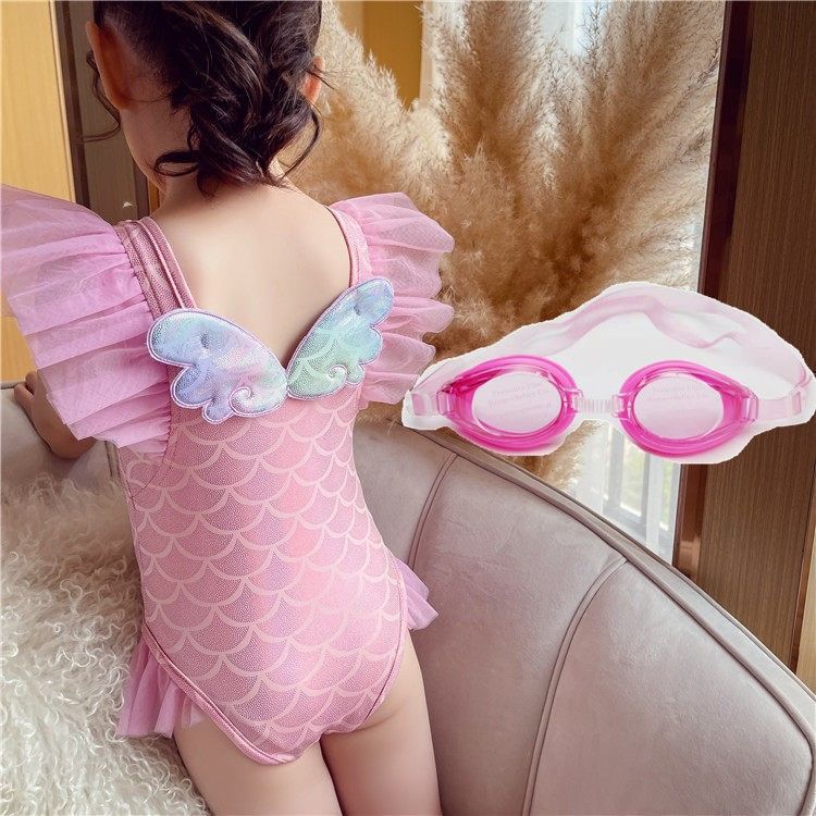 • 핑크 날개 원피스 수영복 + 수영 고글