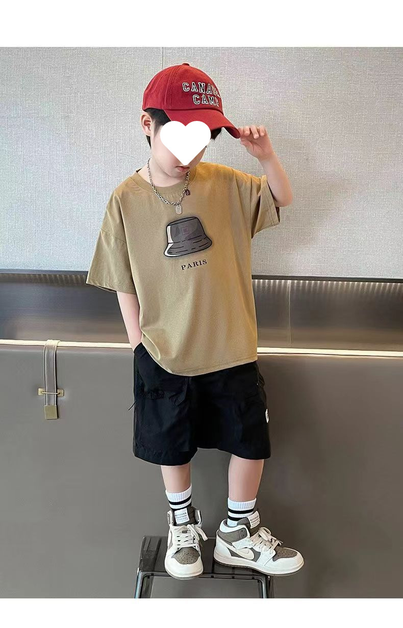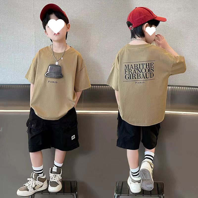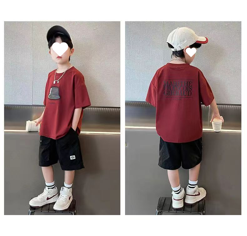 소년 여름 반팔 티셔츠 5 바지 투피스 2025 새로운 큰 소년 더피 잘 생긴 소년 느슨한 스포츠 세트스토어 가기