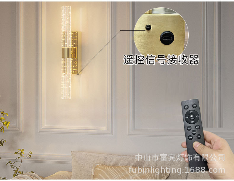 침실 침실 벽 램프 빛 고급 높은 감각 설치 무료 조정 가능한 실내 충전 창조적 인 거실 크리스탈 벽 램프스토어 가기