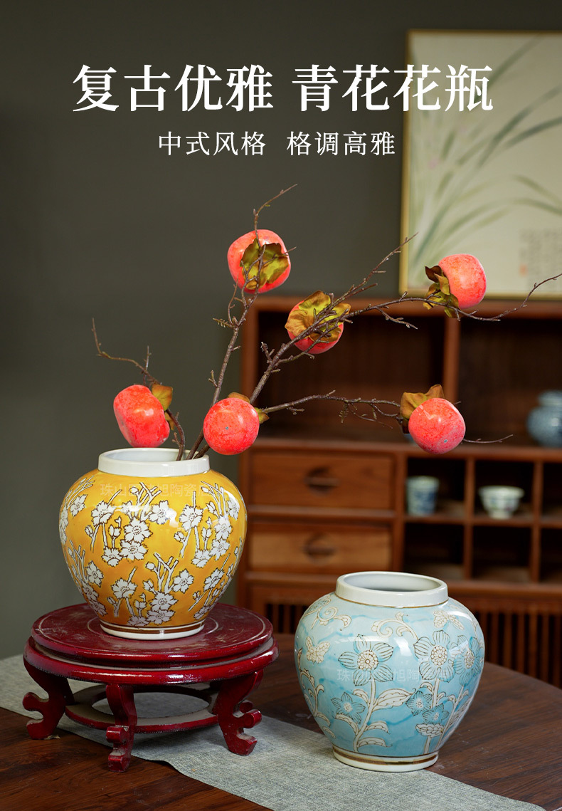 고급 꽃병 장식품, 심플한 복고풍 손으로 그린 꽃병, 수경재배 가능한 거실, 서재, 탁상 장식품, 배꽃병스토어 가기