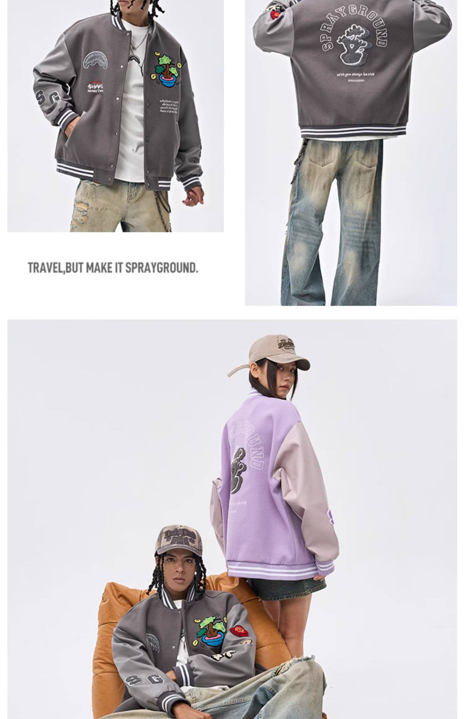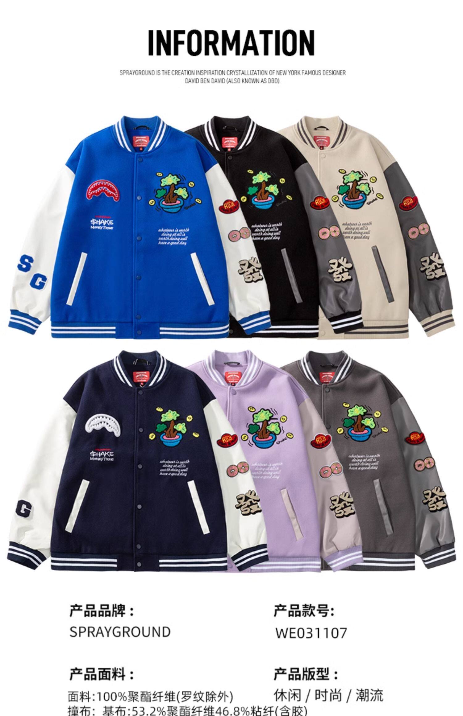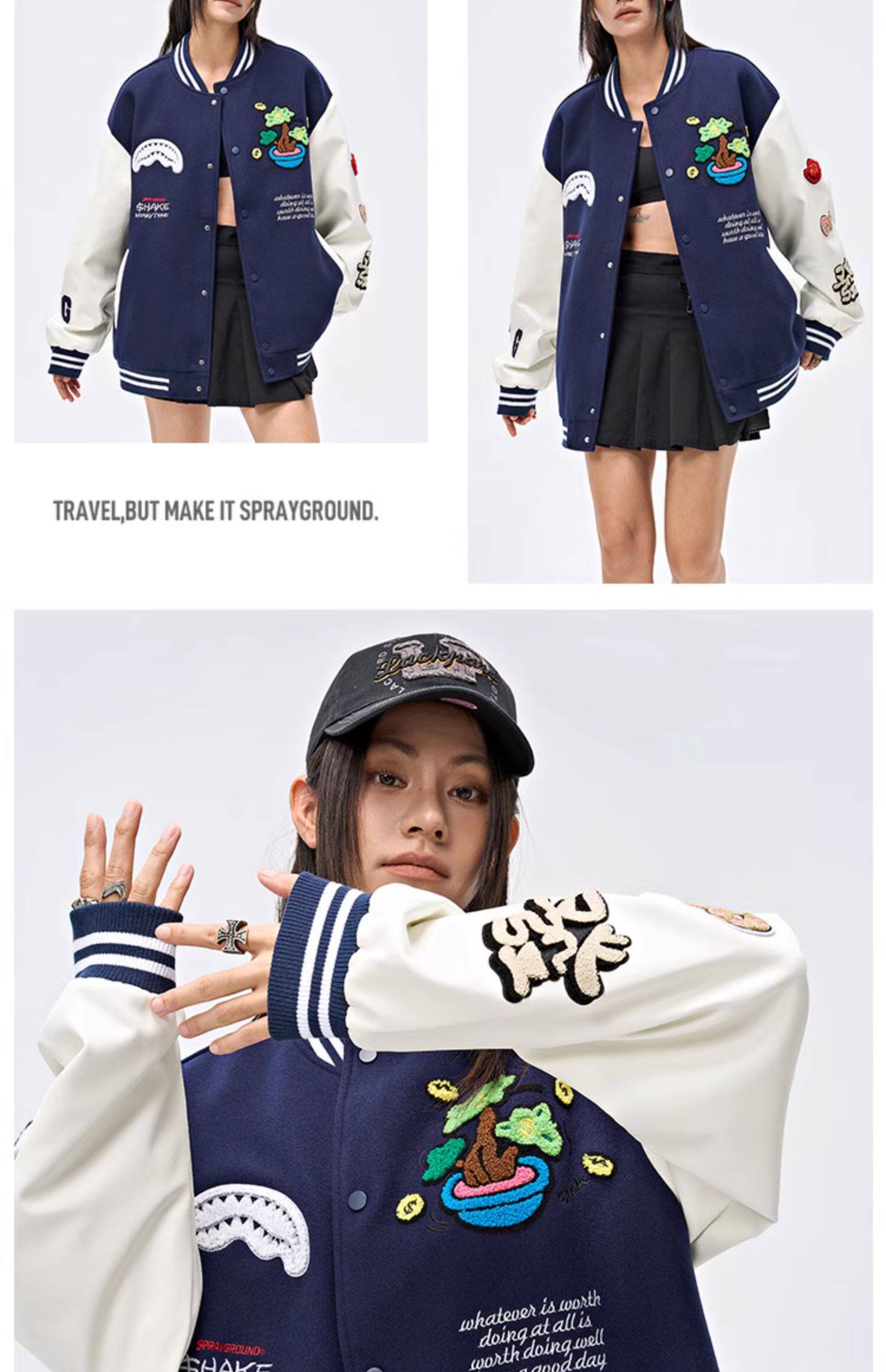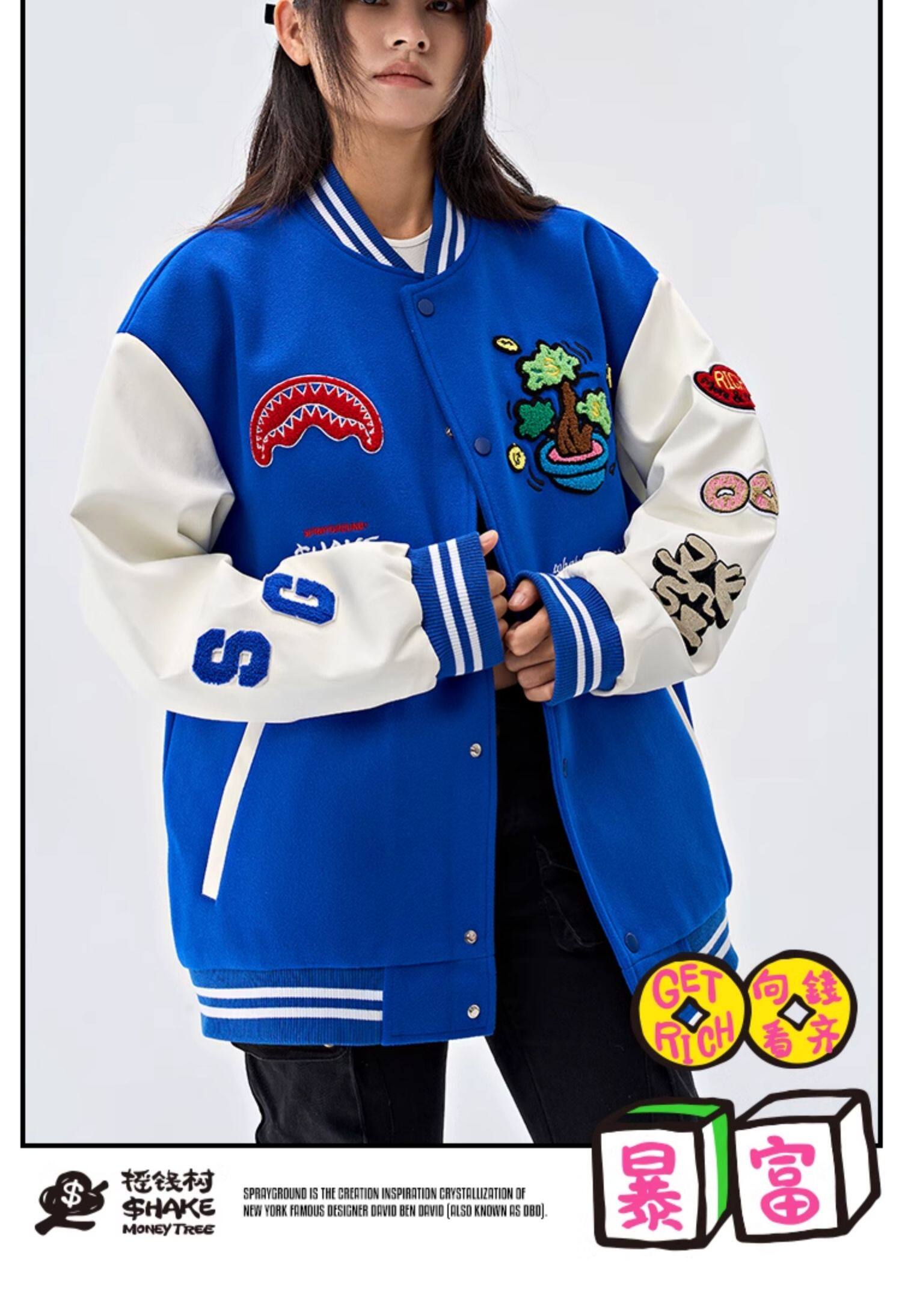 SprayGround25 Spring Shark's Mouth Baseball 세트 Jacket Money Tree Joint Loose 커플의 American Style Jacket스토어 가기