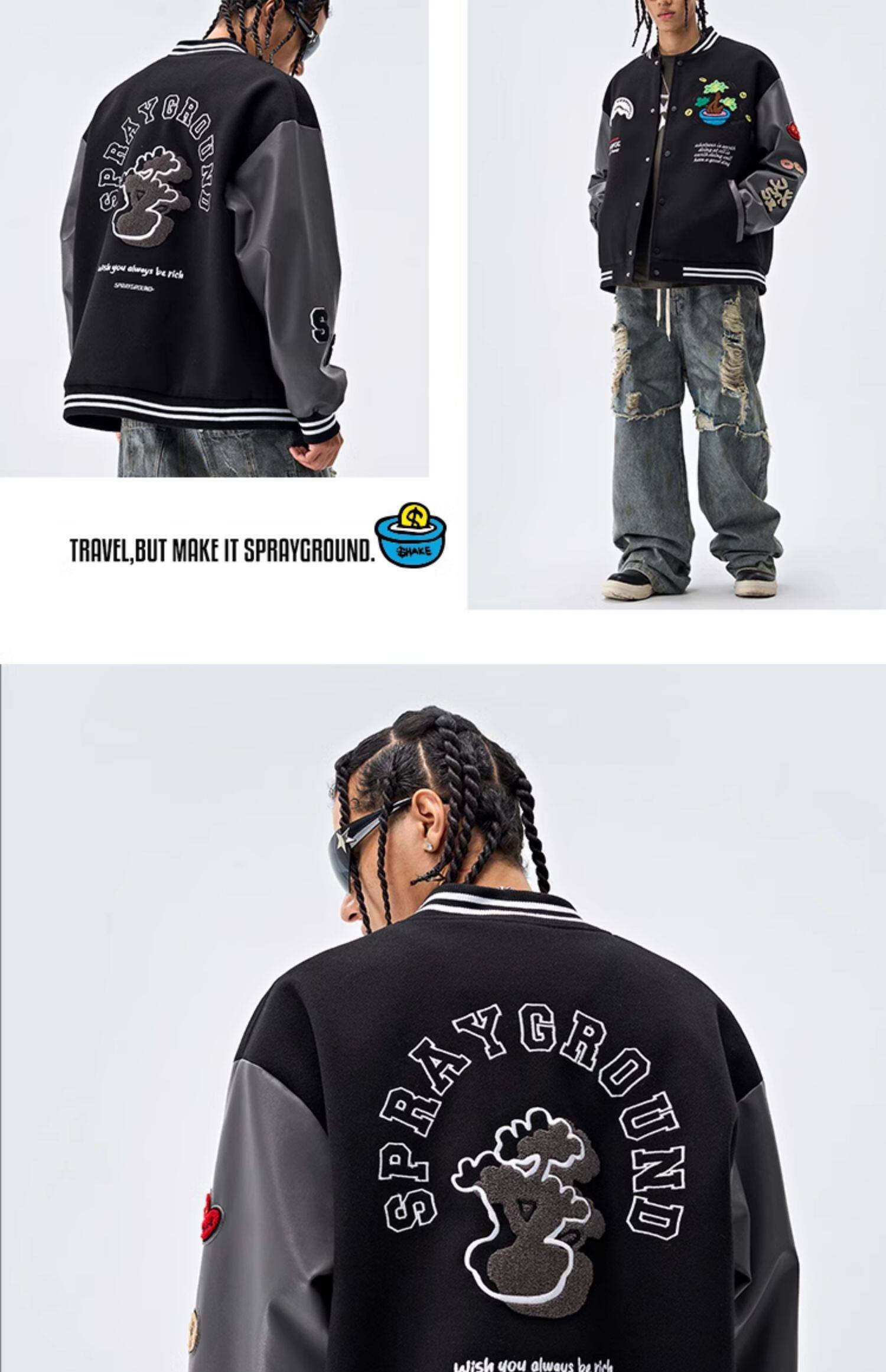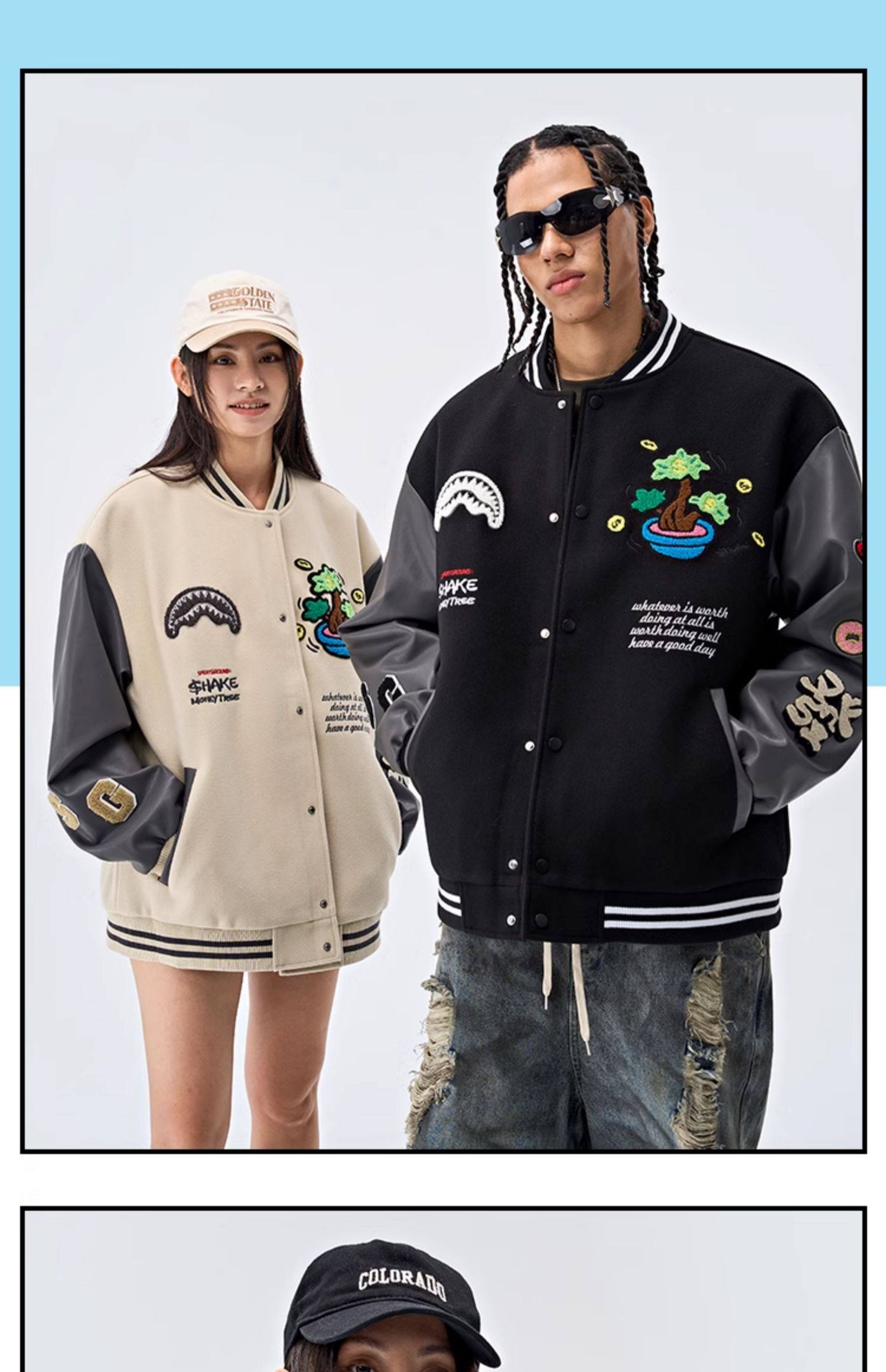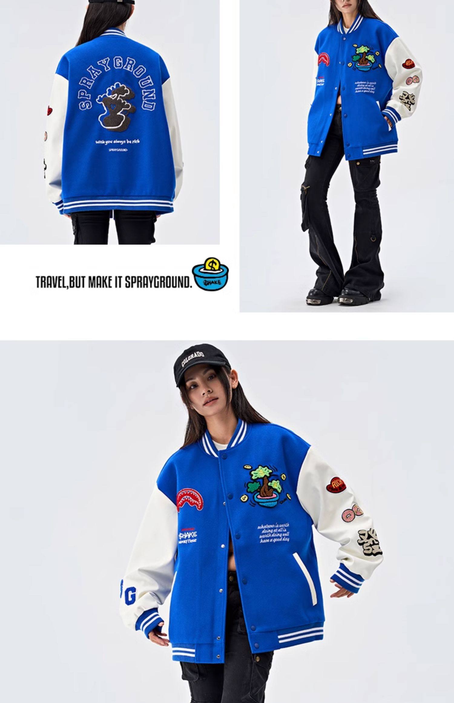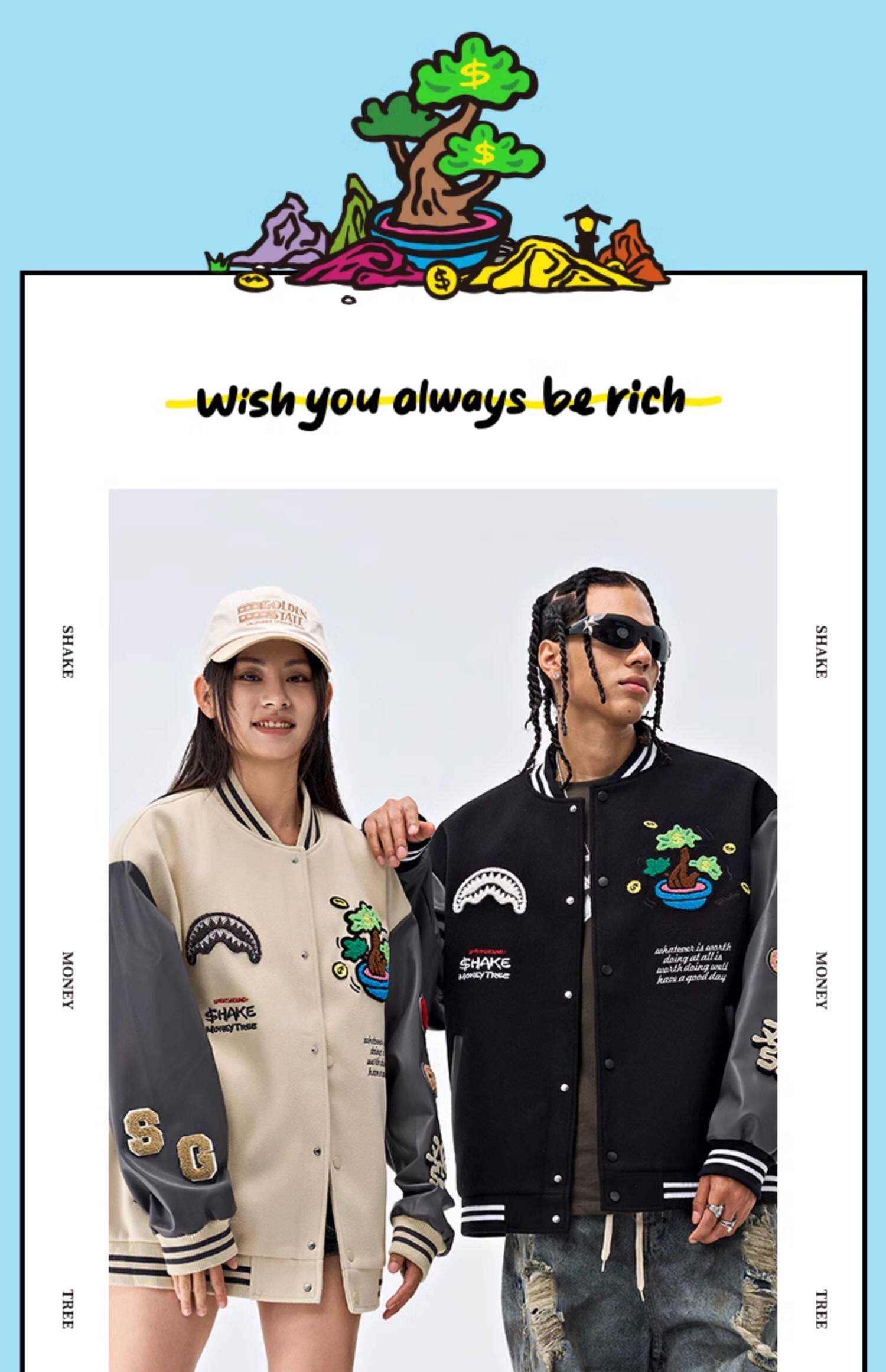 SprayGround25 Spring Shark's Mouth Baseball 세트 Jacket Money Tree Joint Loose 커플의 American Style Jacket스토어 가기
