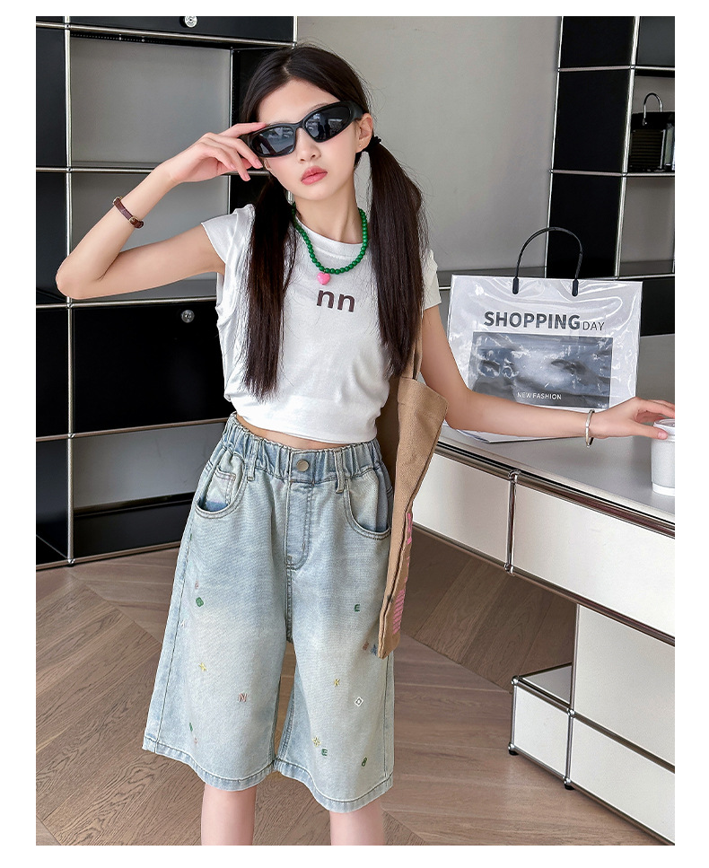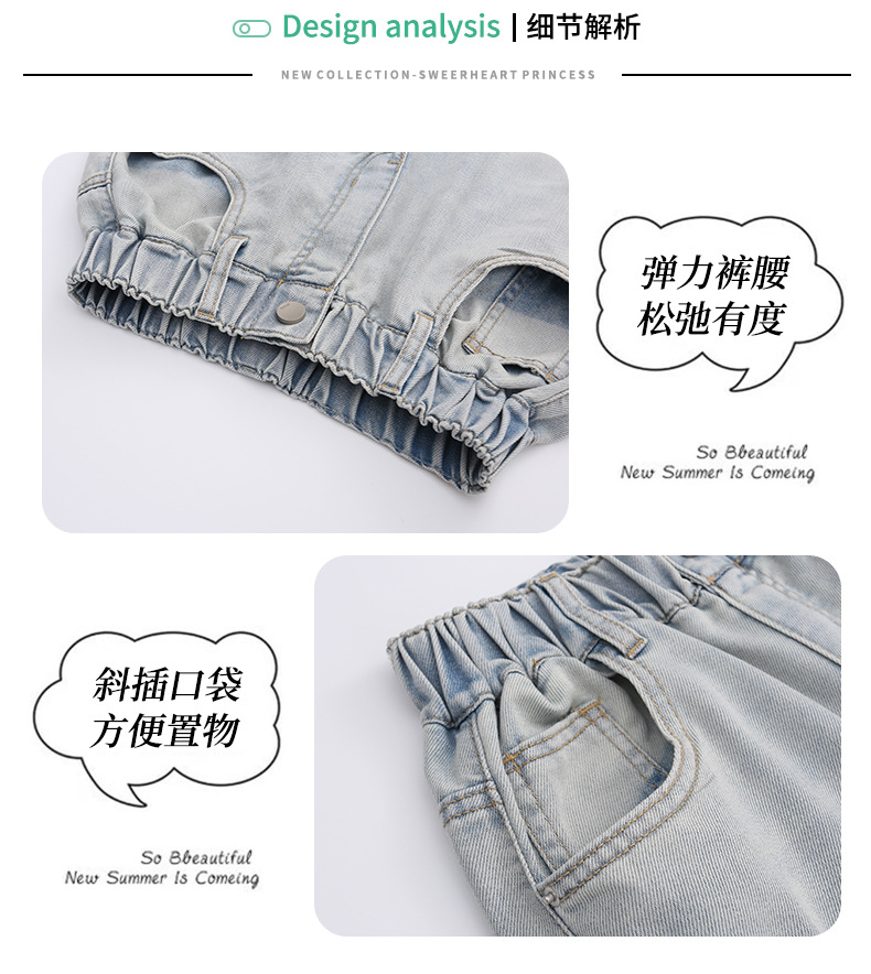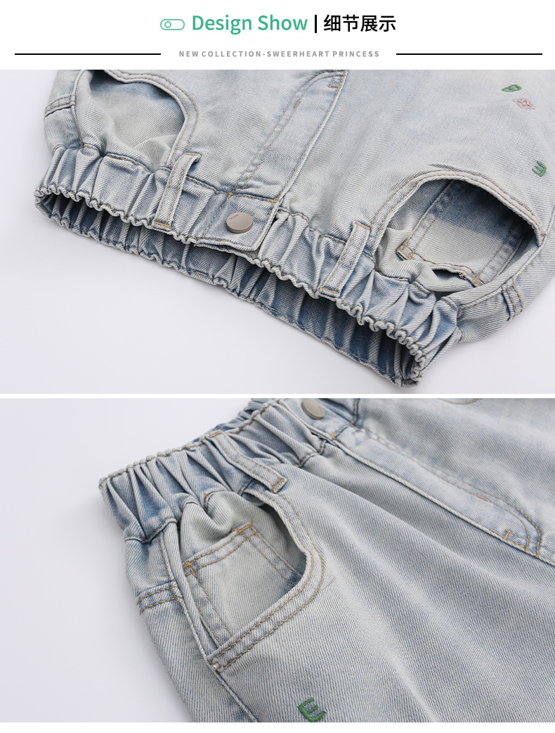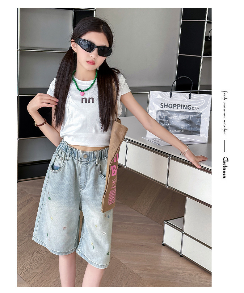 여아 패션 데님 반바지 여름 2025 새로운 아동 바지 중대형 아동 자수 꽃무늬 여름 5부 바지스토어 가기