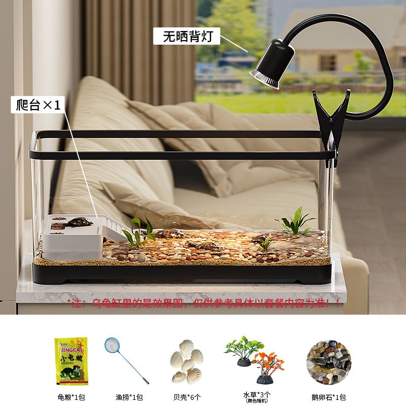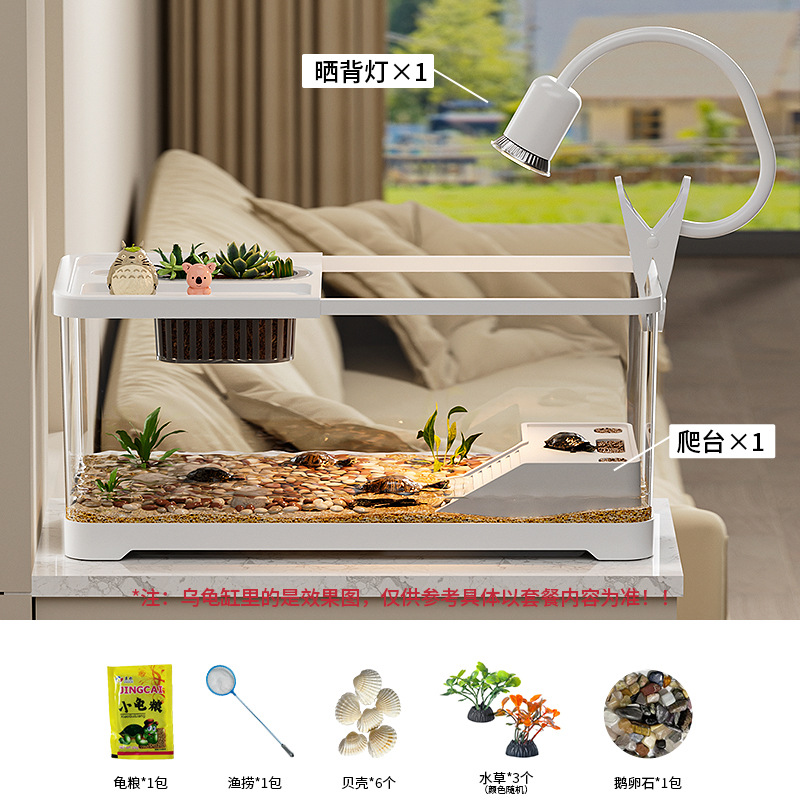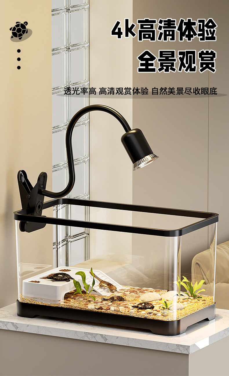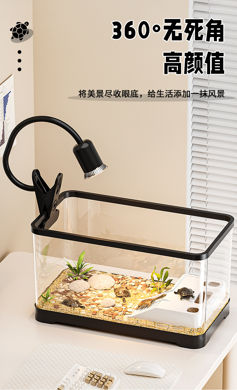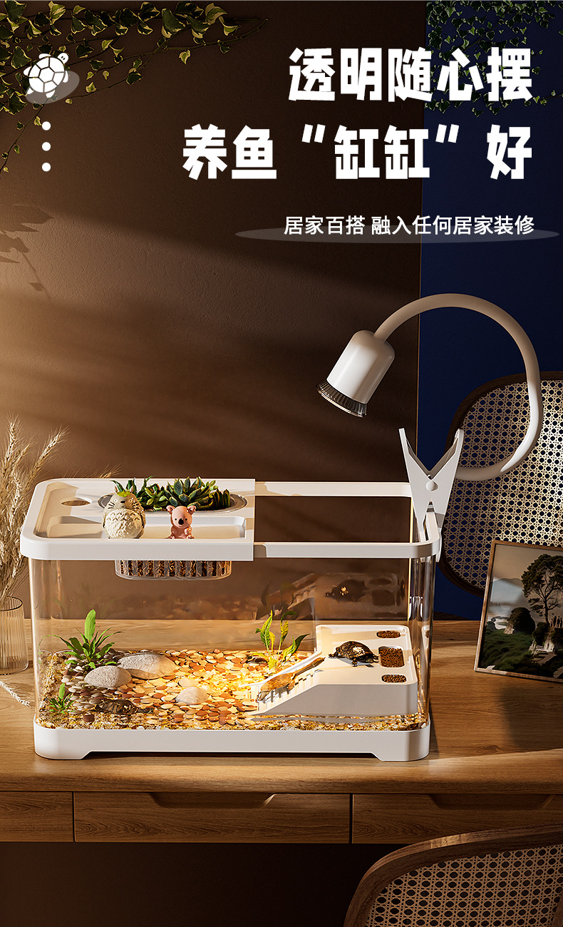 거북이 탱크 가정용 등반 테이블 태양 테이블 생태 풍경 거북 키우기 전문 탱크 거실 데스크탑 투명 금붕어 탱크 뚜껑스토어 가기