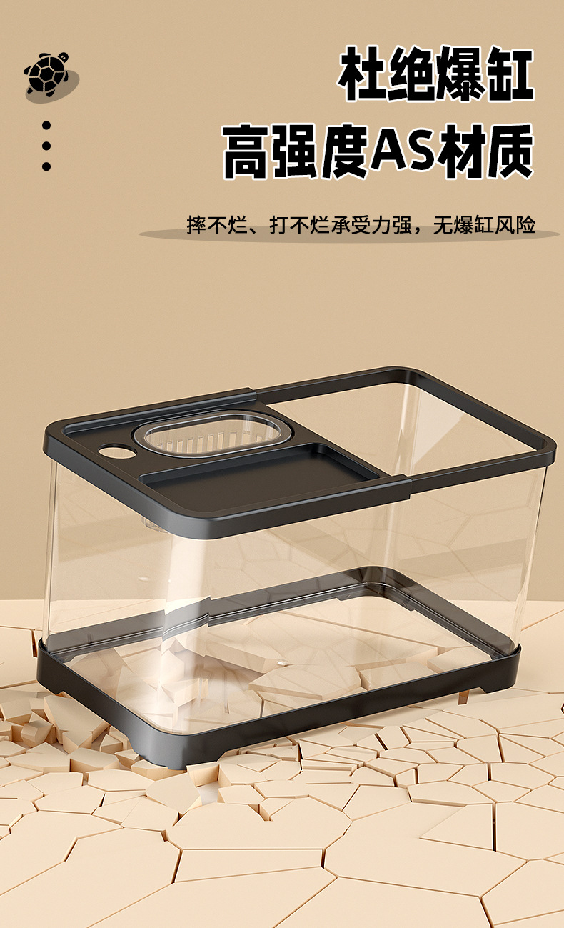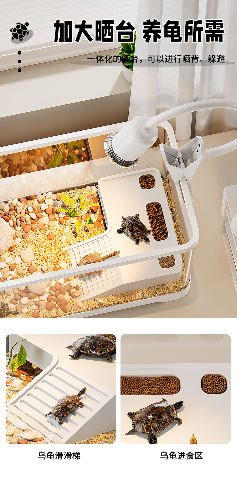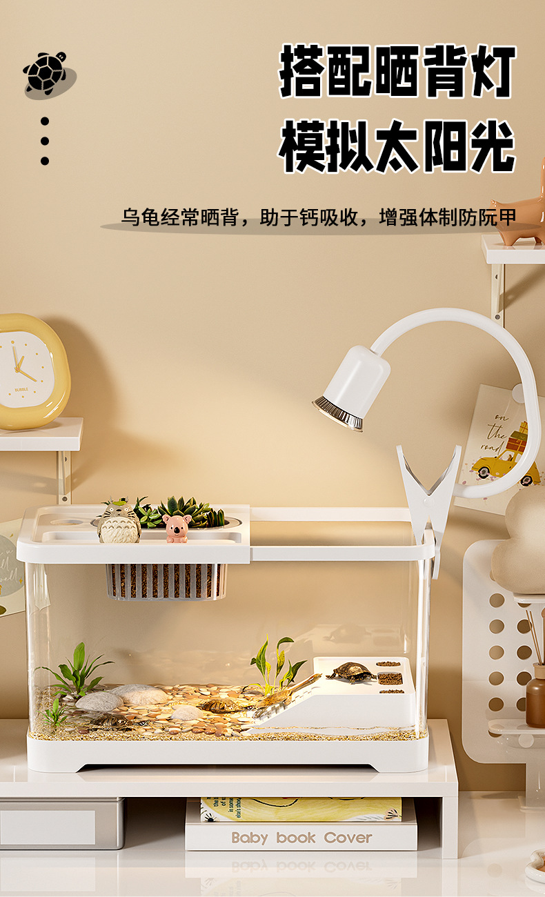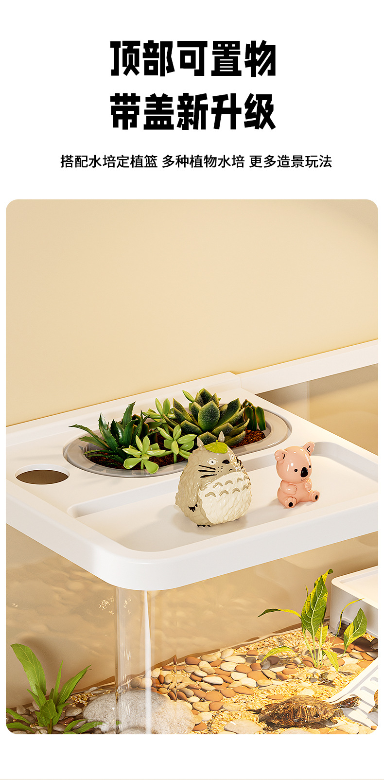 거북이 탱크 가정용 등반 테이블 태양 테이블 생태 풍경 거북 키우기 전문 탱크 거실 데스크탑 투명 금붕어 탱크 뚜껑스토어 가기