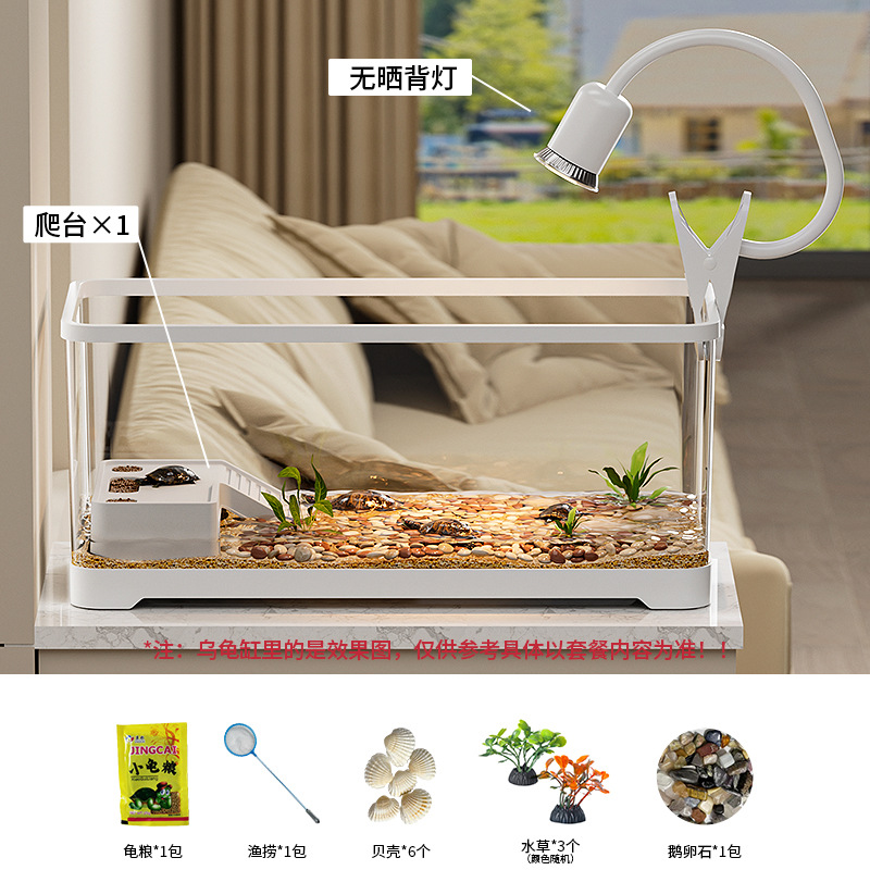 • 흰색 거북 수조 7종 세트(뚜껑 포함) [등받이등+등반+조경]