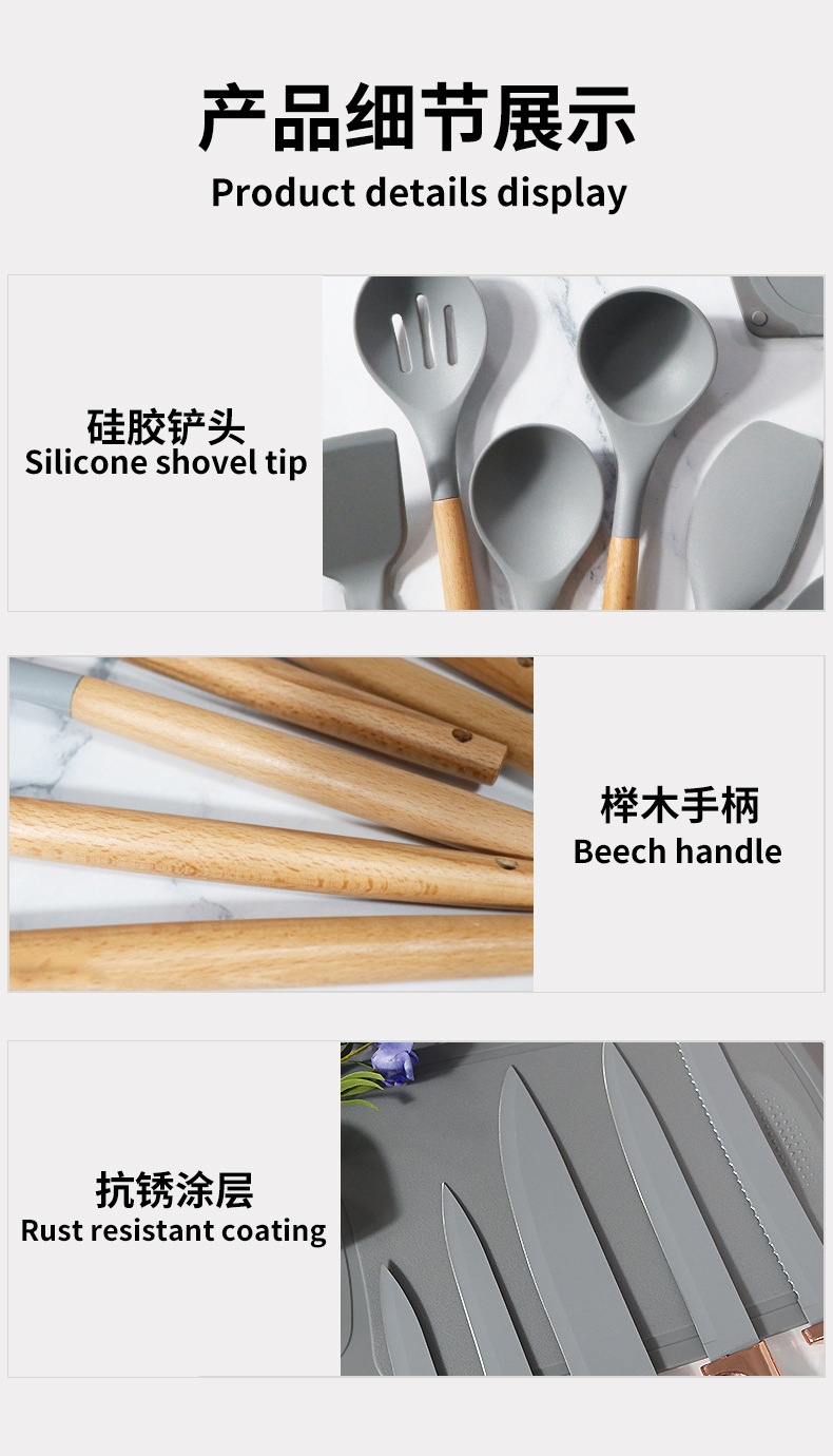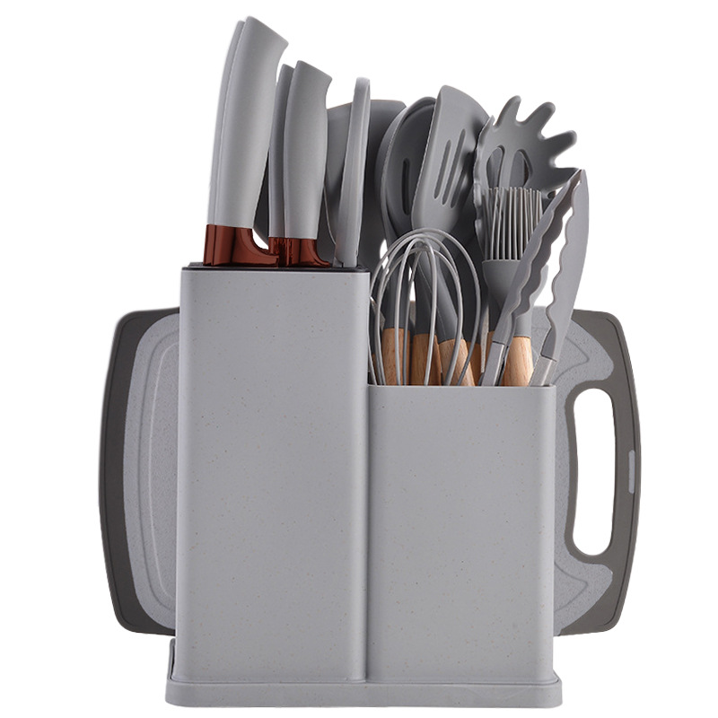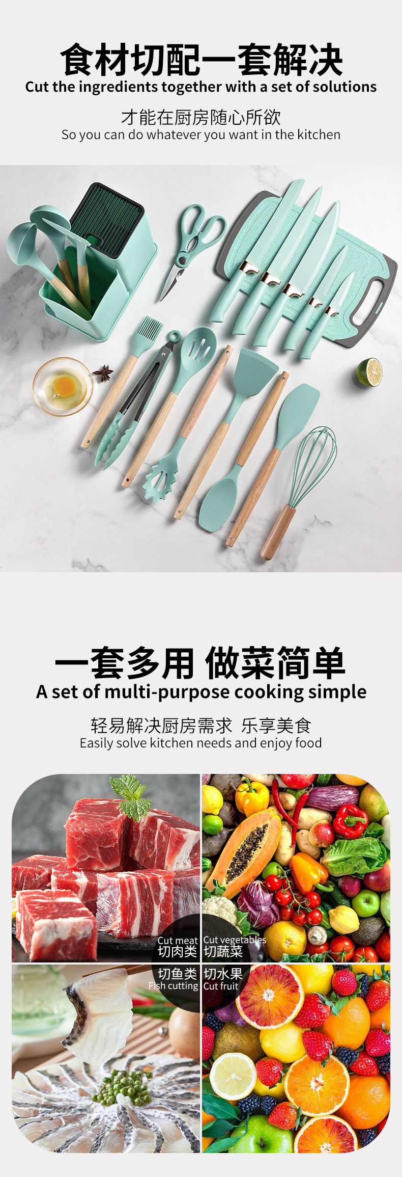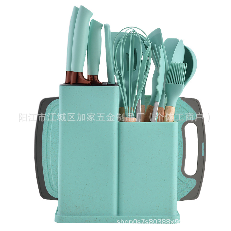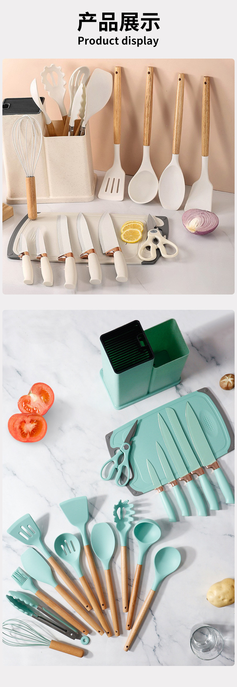 국경 간 실리콘 주방 용품 19 조각 세트 붙지 않는 요리 주걱과 저장 버킷 조합 나이프 세트 재고 숟가락 주방 용품스토어 가기