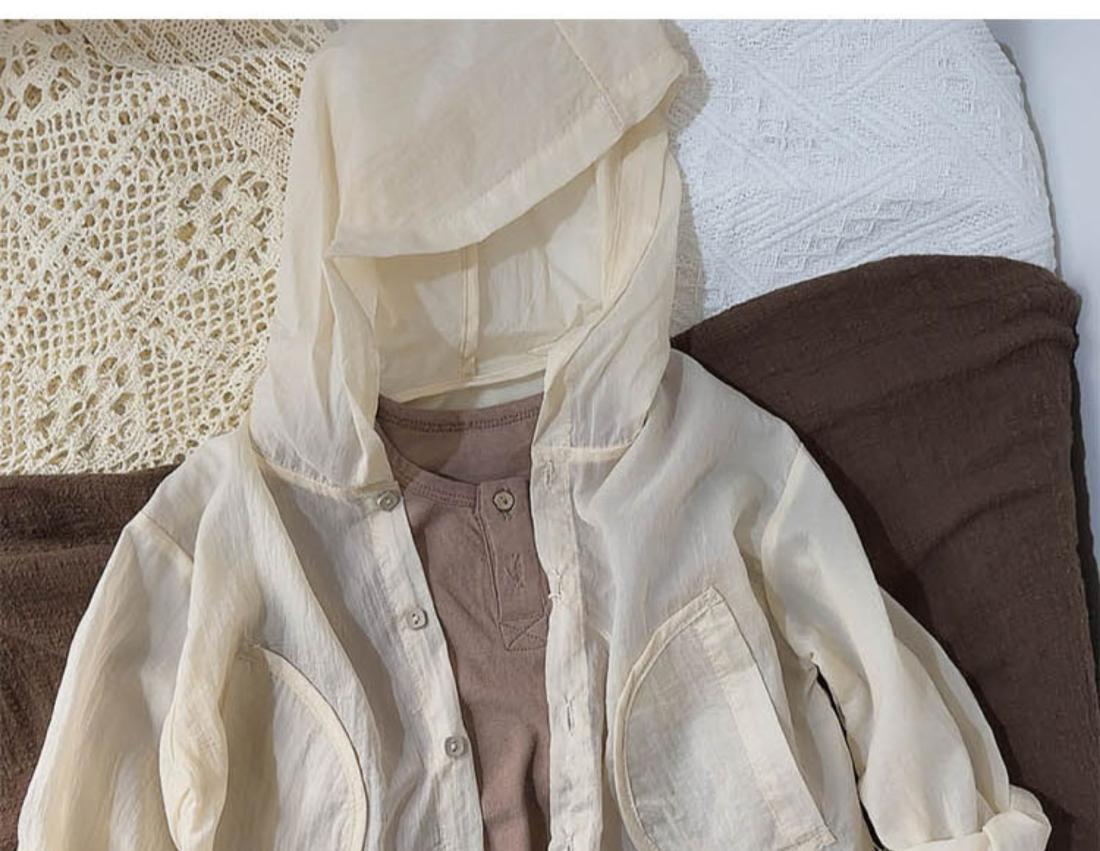 소년과 소녀를위한 얇고 가벼운 한국식 어린이 자외선 차단 의류 새로운 후드 여름 카디건 재킷 아기 에어컨 셔츠