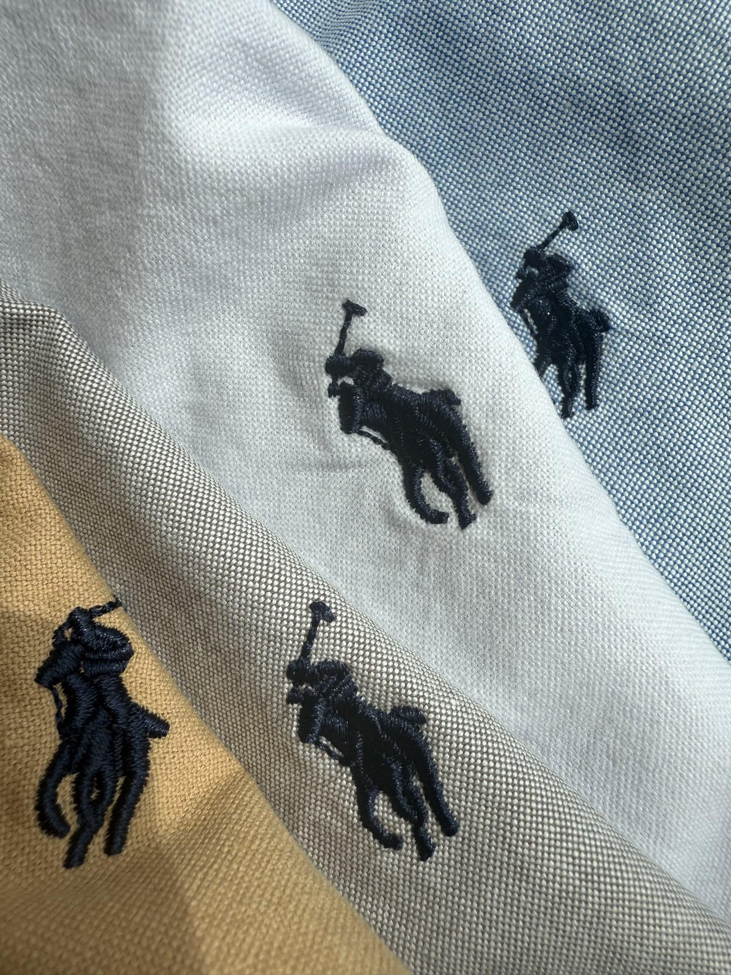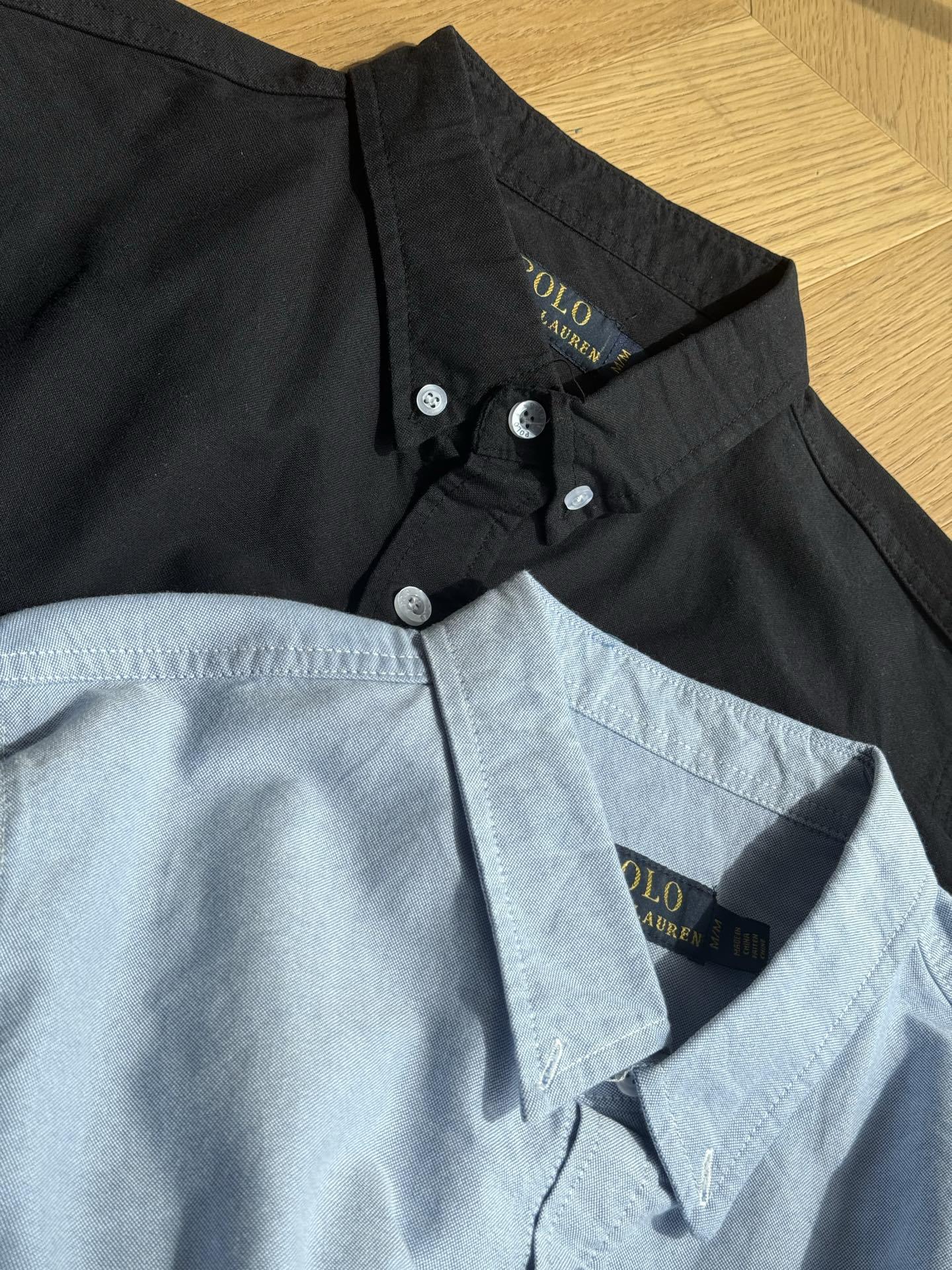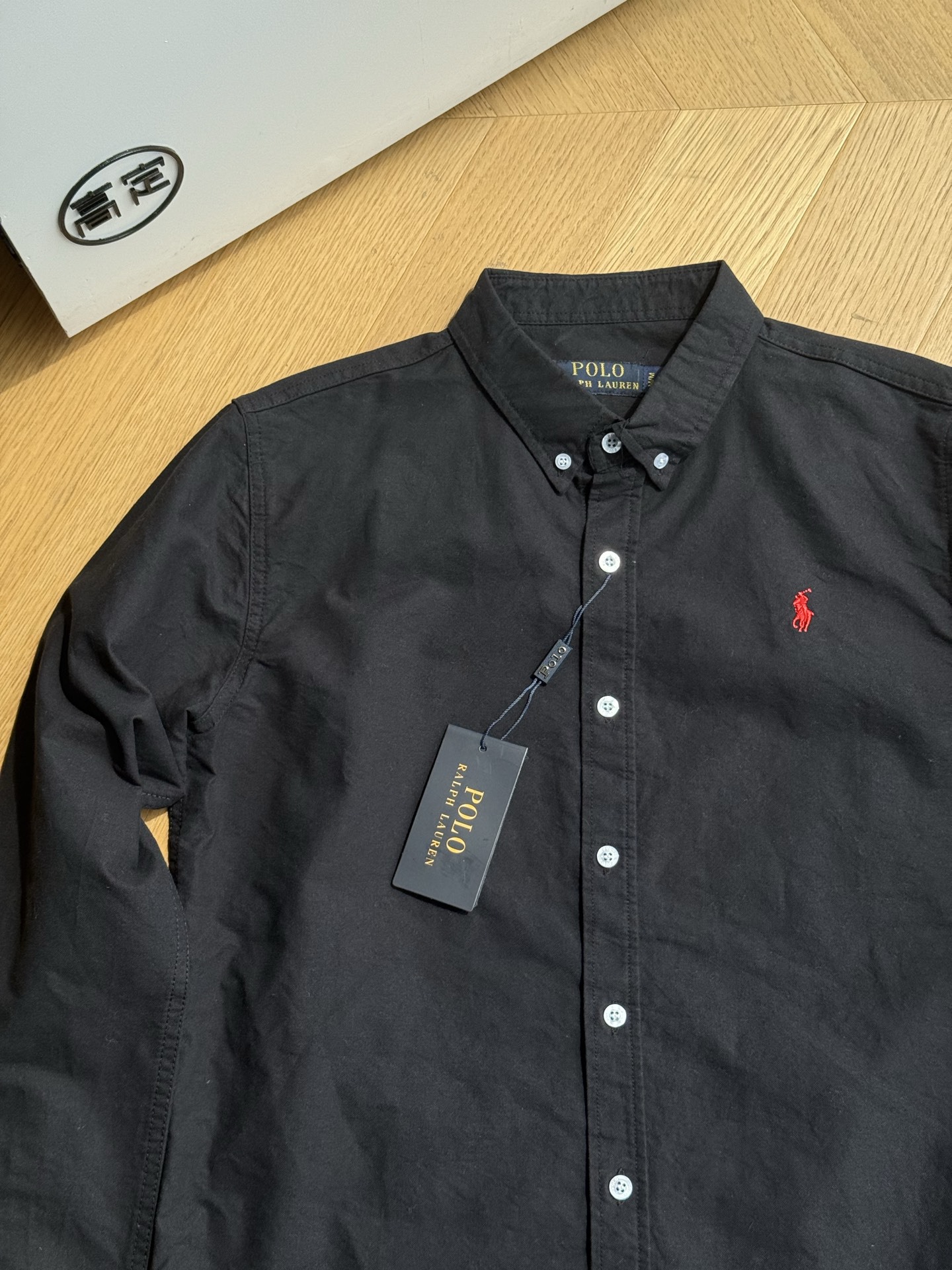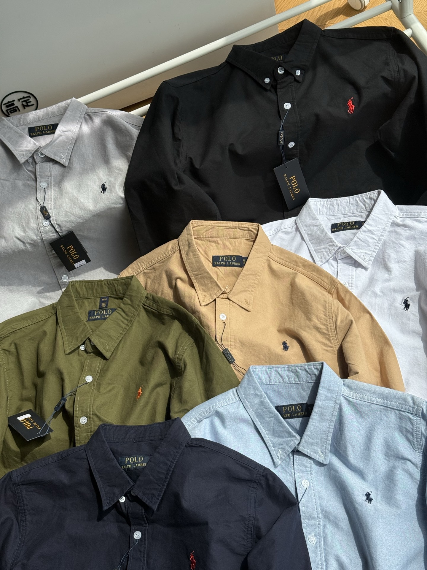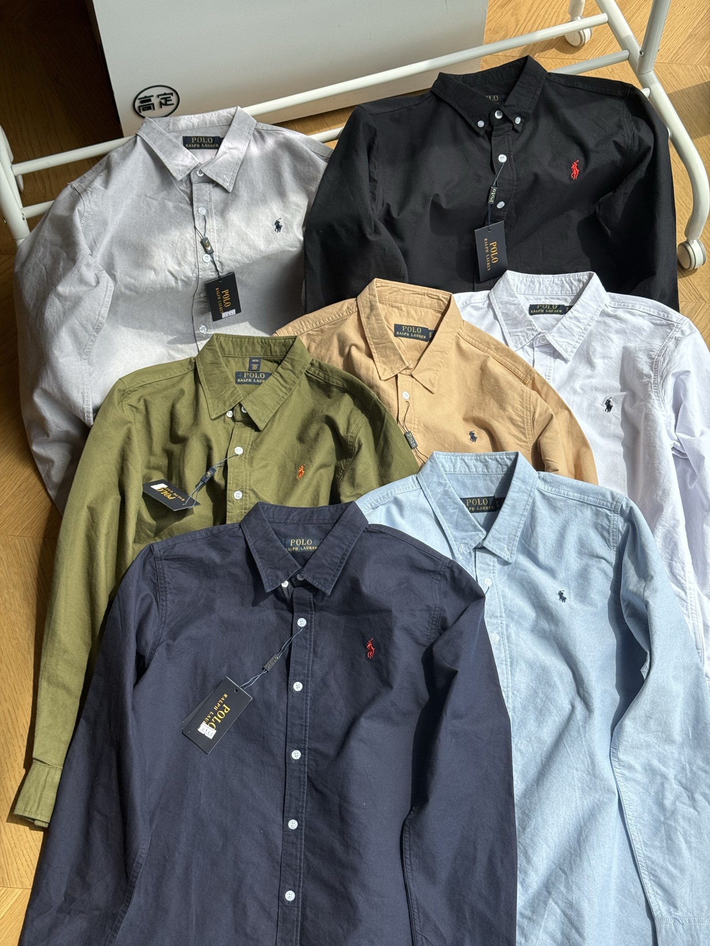 국경 간 소스 RL 라프 솔리드 컬러 로고 자수 라벨 클래식 긴 소매 캐주얼 셔츠 봄과 가을 남성 솔리드 컬러 셔츠스토어 가기