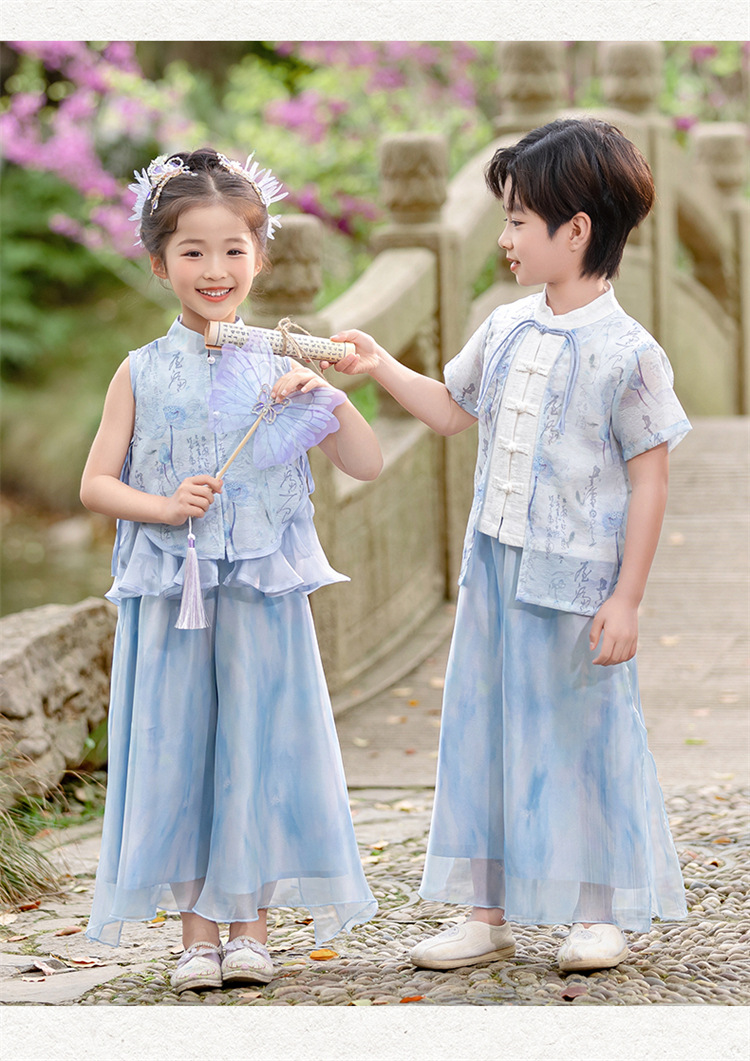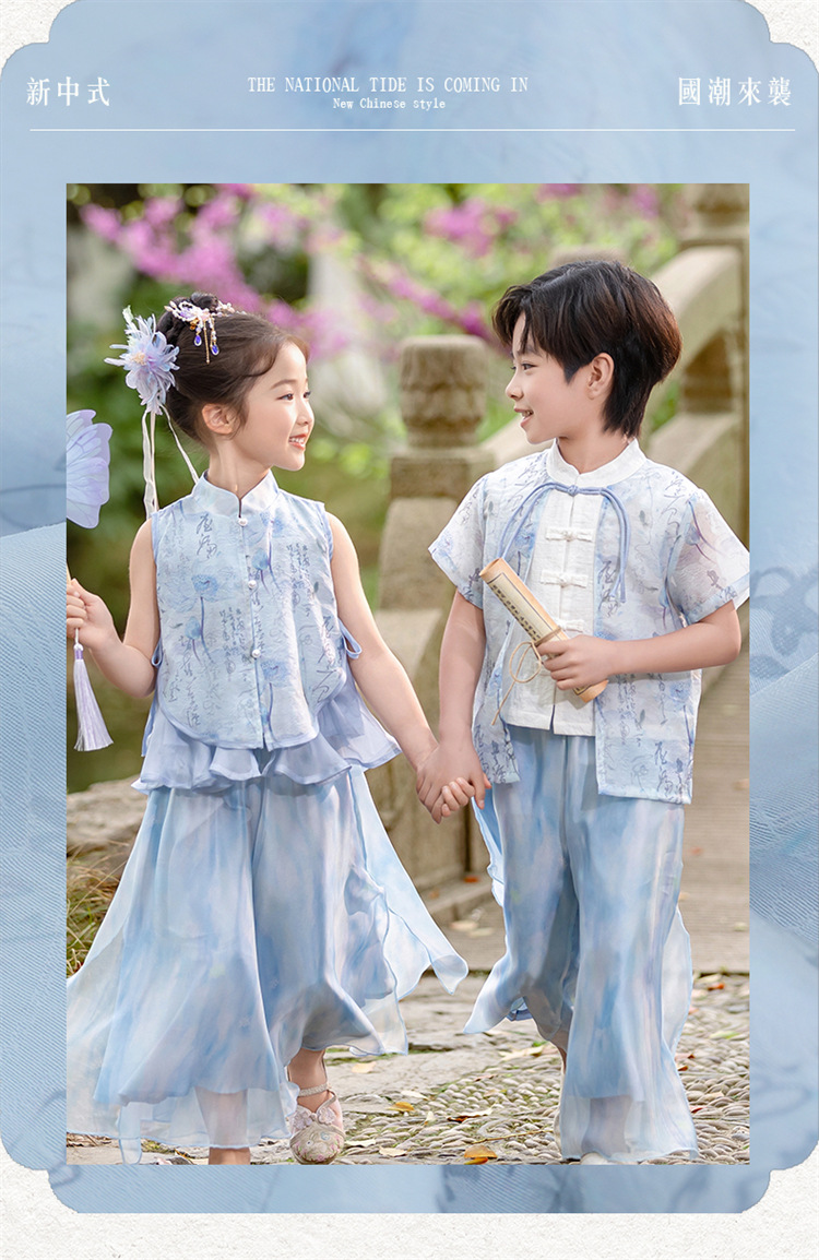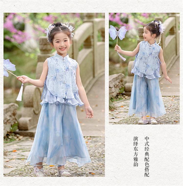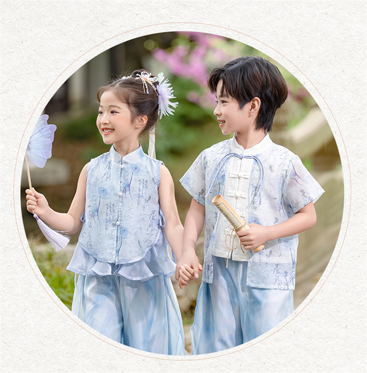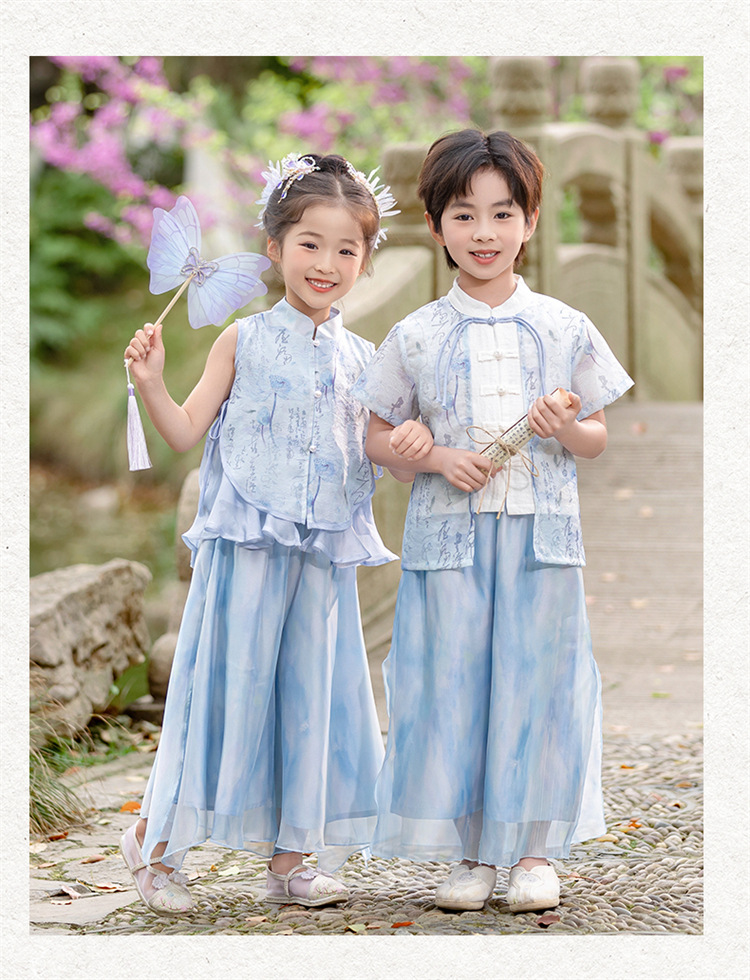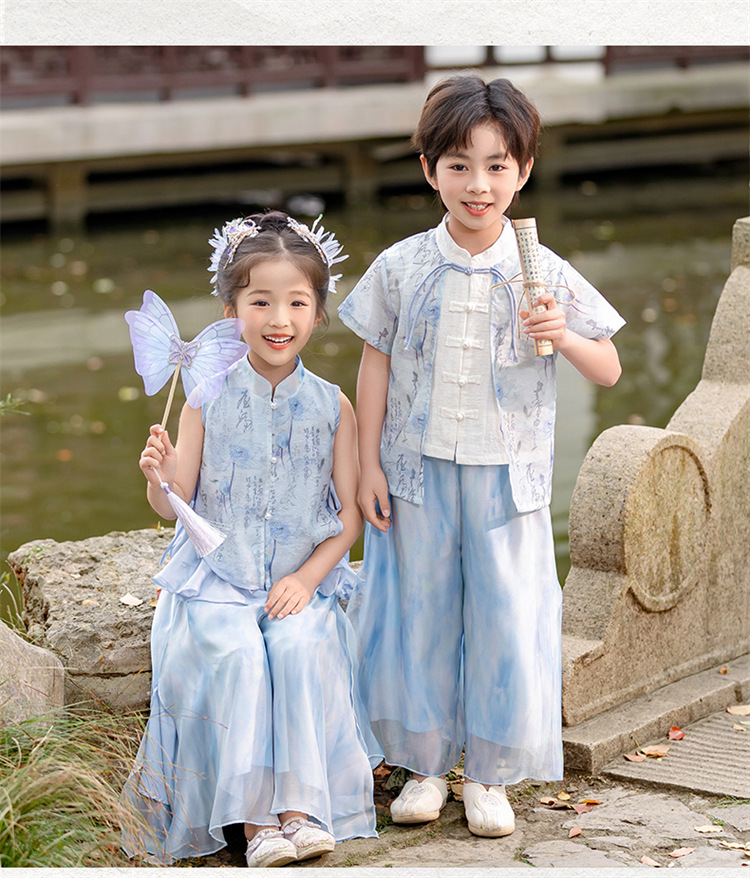 어린이 골동품 한푸 세트 2025 여름 새로운 중국 공연 세트 투피스 유치원 국가 스타일 클래스 세트