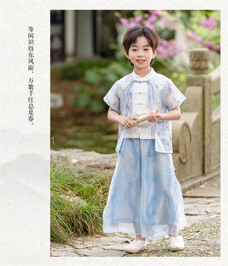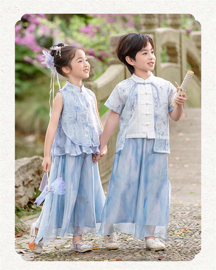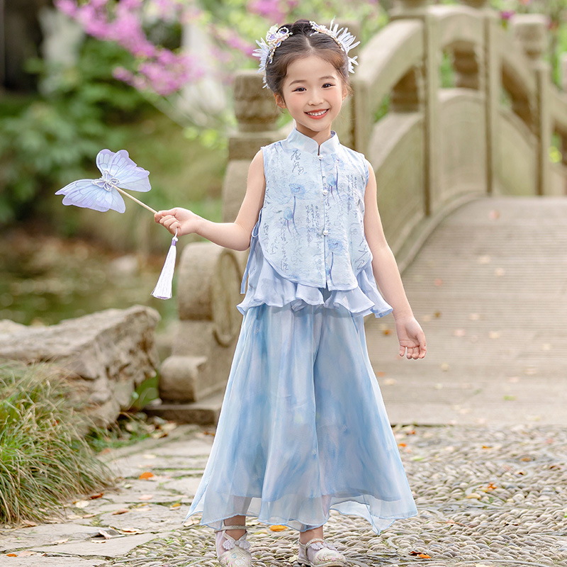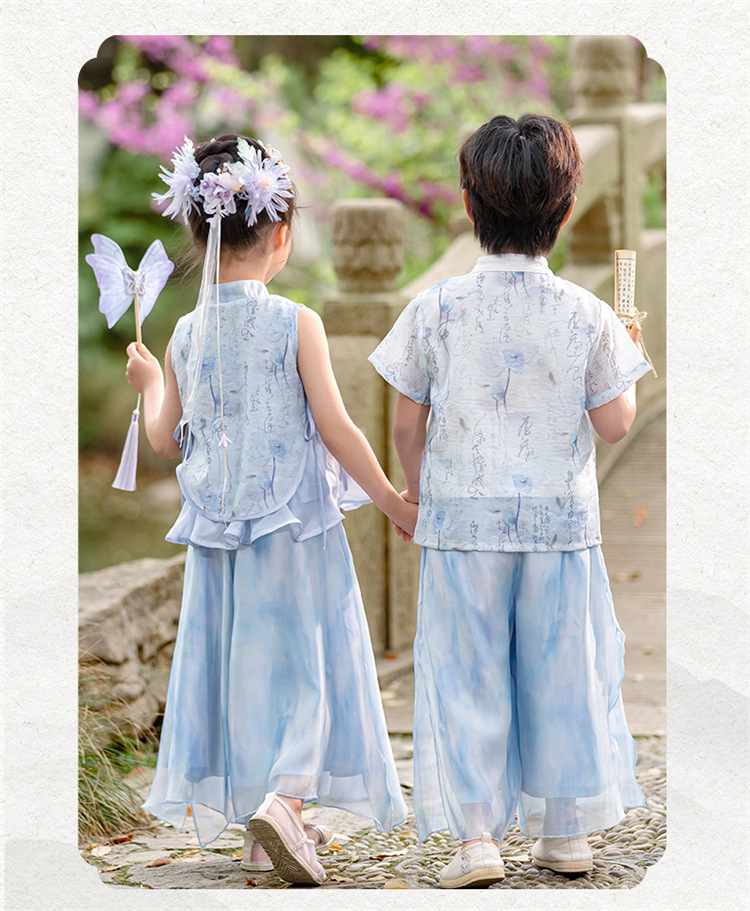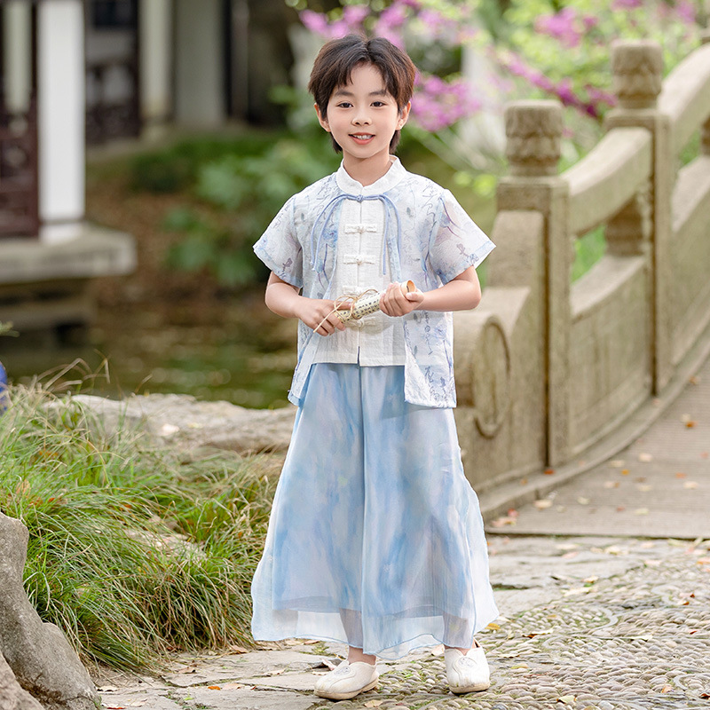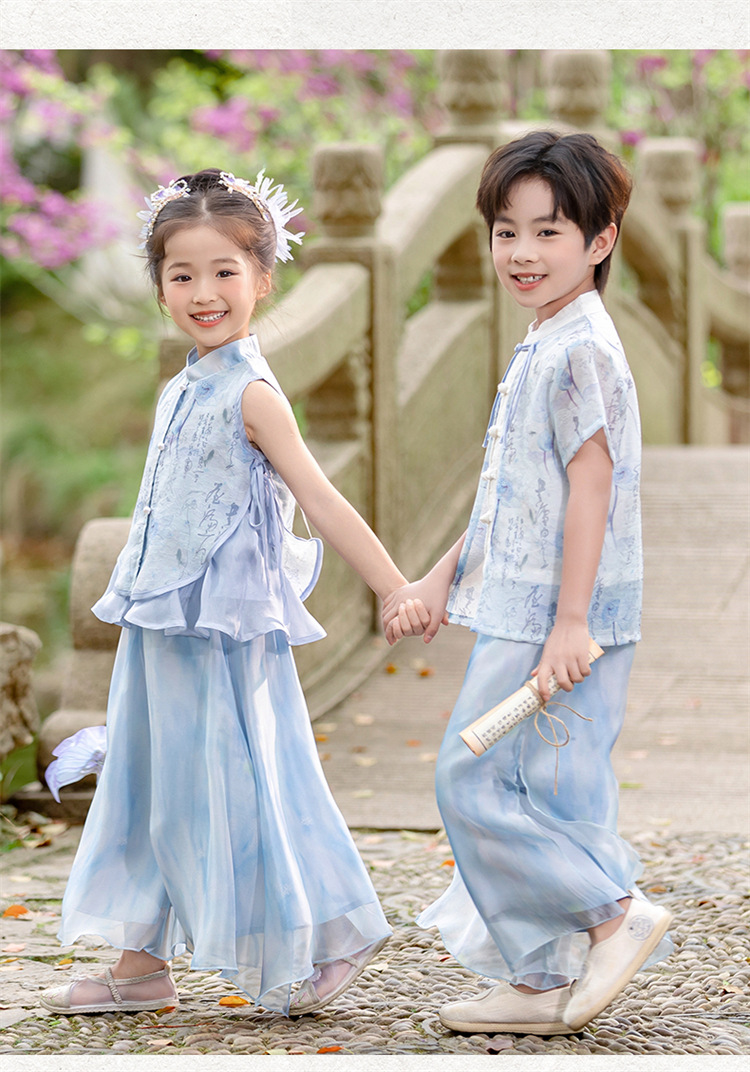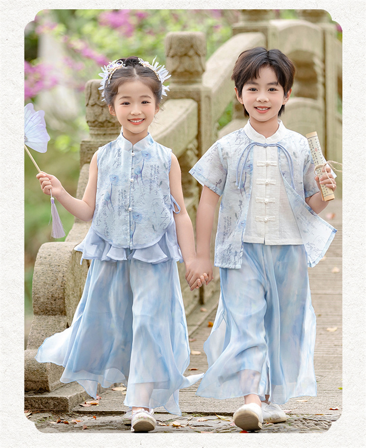 어린이 골동품 한푸 세트 2025 여름 새로운 중국 공연 세트 투피스 유치원 국가 스타일 클래스 세트