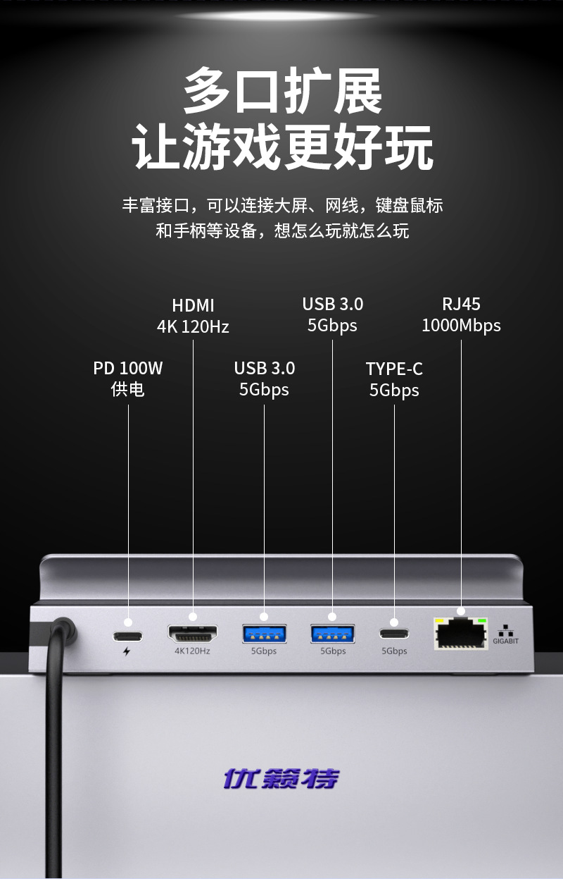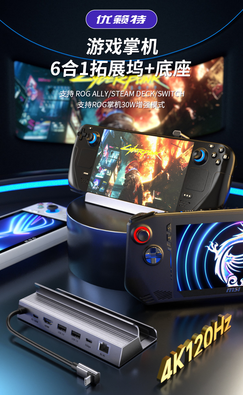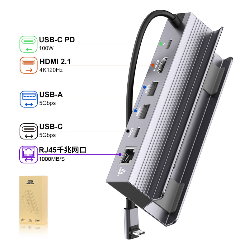 새로운 맞춤형 6-in-1 휴대용 확장 도크 알루미늄 합금 쉘 HDMI 4K120Hz 다양한 호환 확장