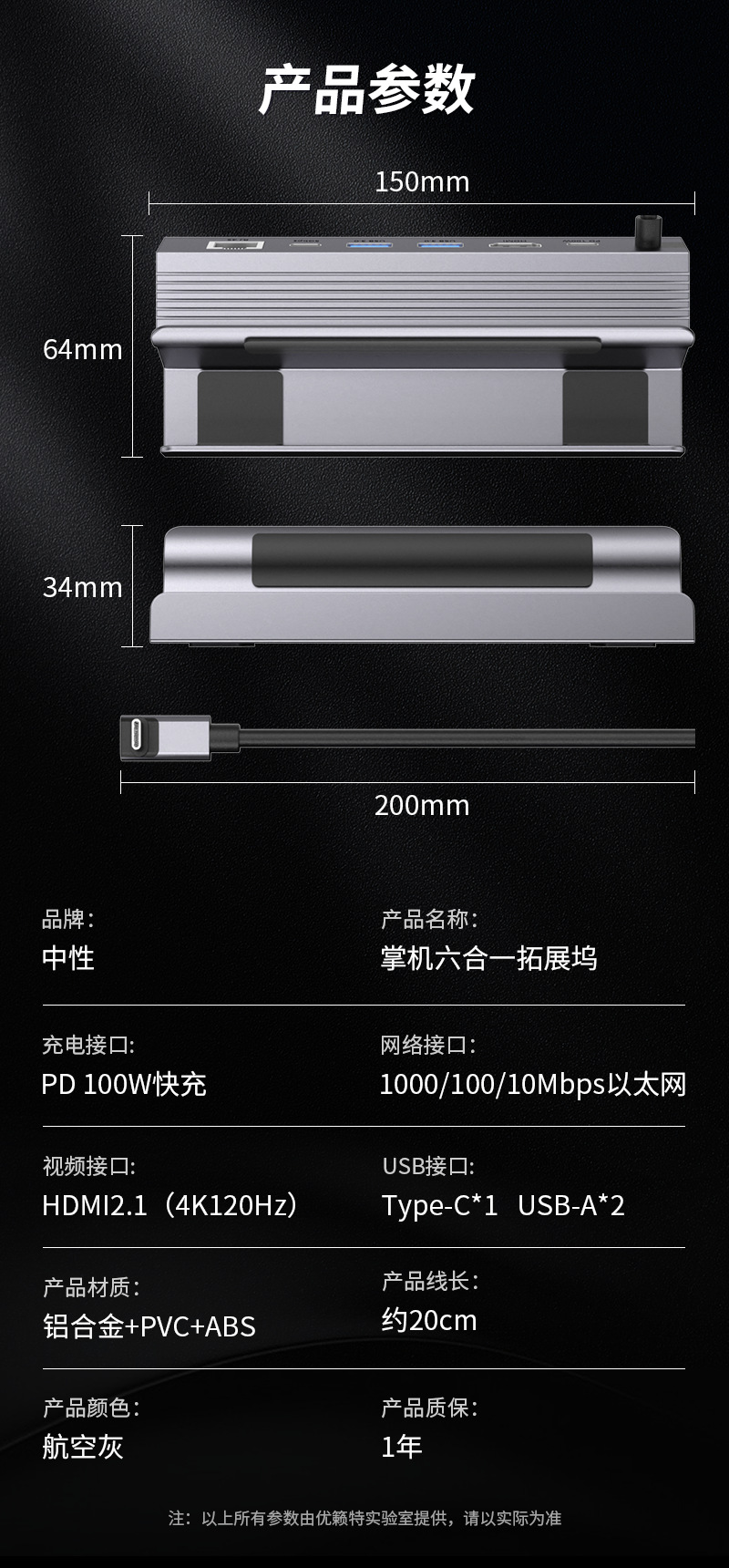 새로운 맞춤형 6-in-1 휴대용 확장 도크 알루미늄 합금 쉘 HDMI 4K120Hz 다양한 호환 확장스토어 가기