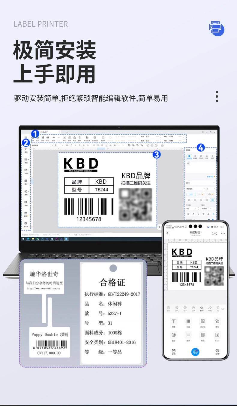 • 300포인트 고화질 KBD-934t 컴퓨터 버전 + 선물 패키지 (100*100MM 코팅지 + 110* 50m 왁스 기반 리본)