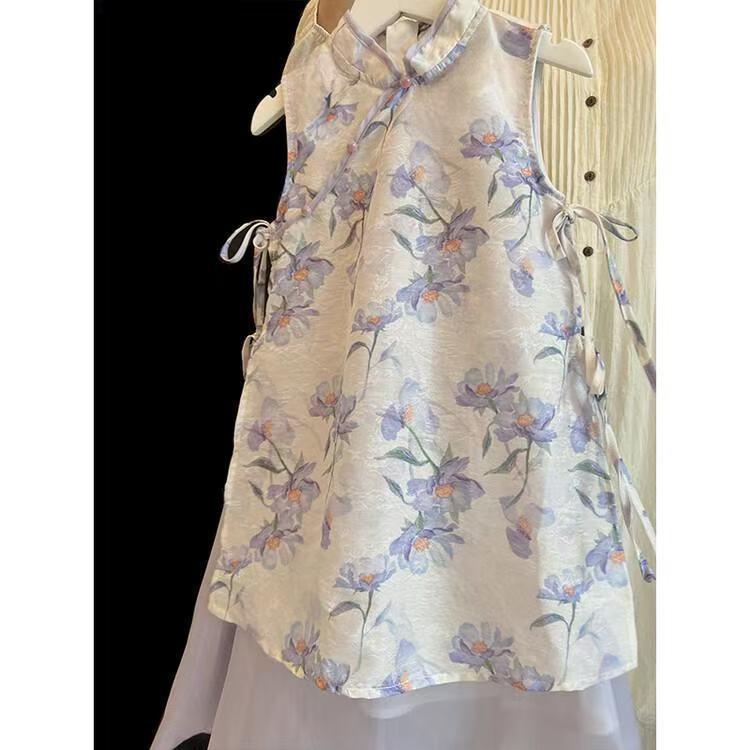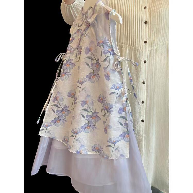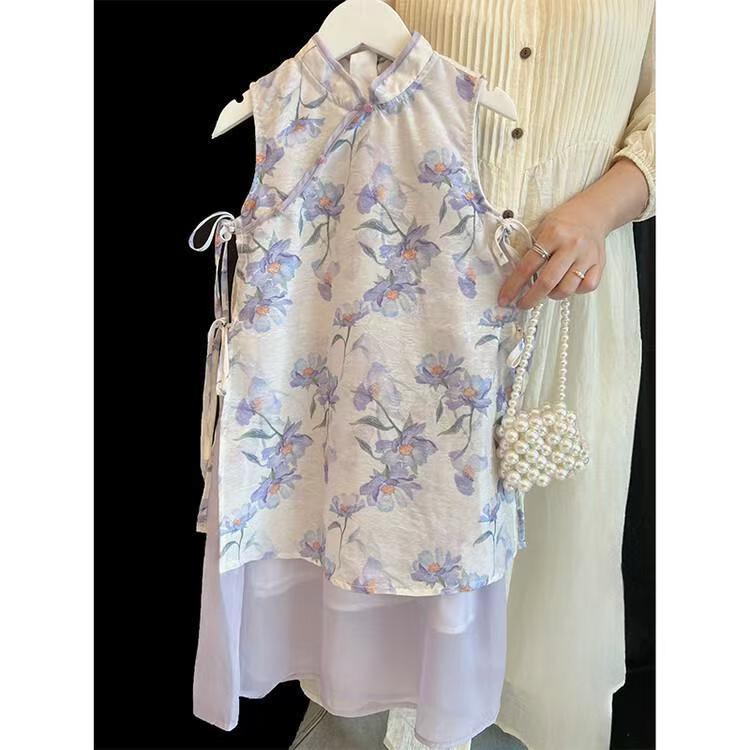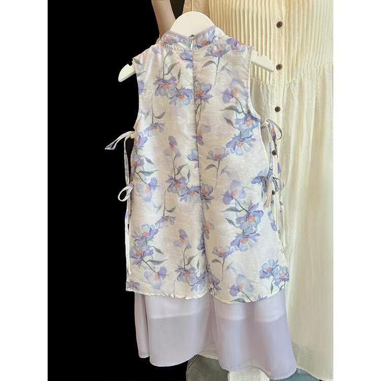 소녀 국가 스타일 원피스 여름 원피스 2025 새로운 새로운 중국 스타일 꽃 청삼 원피스 어린이 골동품 스타일 슈퍼 요정 원피스 트렌디