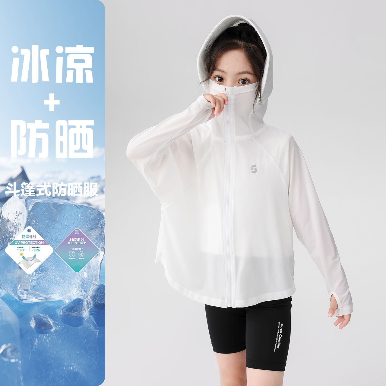 어린이 태양 보호 의류 여름 새로운 얼음 실크 통기성 차가운 피부 의류 캐주얼 야외 UV 보호 얇은 코트스토어 가기