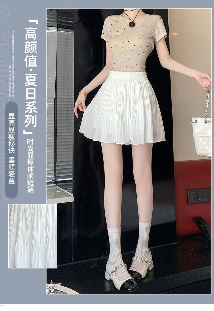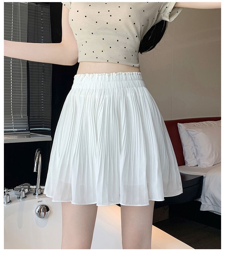 노출 방지를 위한 크로스보더 신축성 있는 허리 쉬폰 플리츠 스커트 2025 여름 루즈 슬리밍 연령 감소 다용도 캐주얼 스커트스토어 가기
