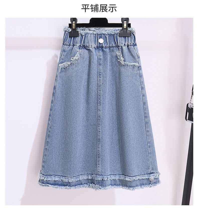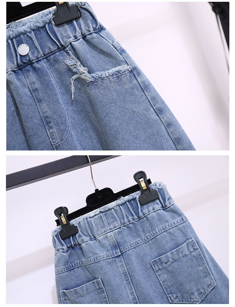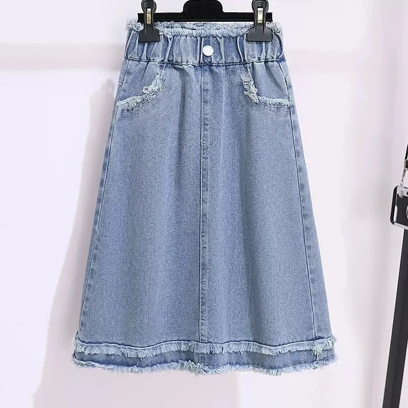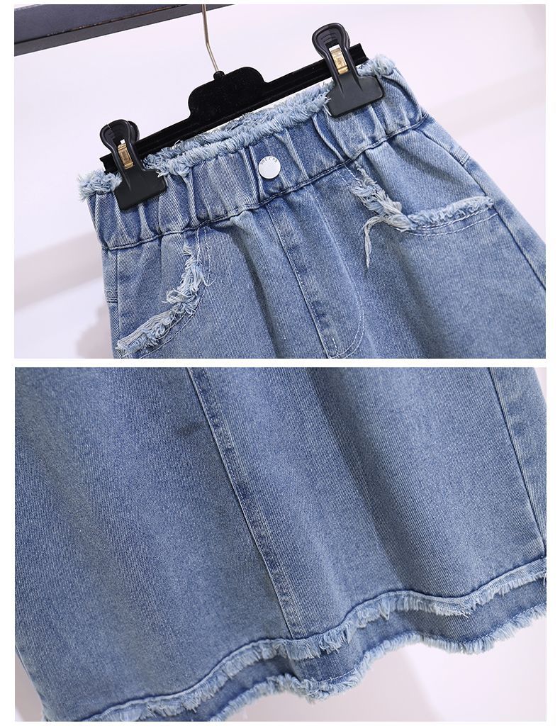 여자 데님 스커트 여름 새로운 스타일 한국 스타일 다목적 어린 소녀 중간 길이 스커트 어린이 캐주얼 로우 에지 스커트