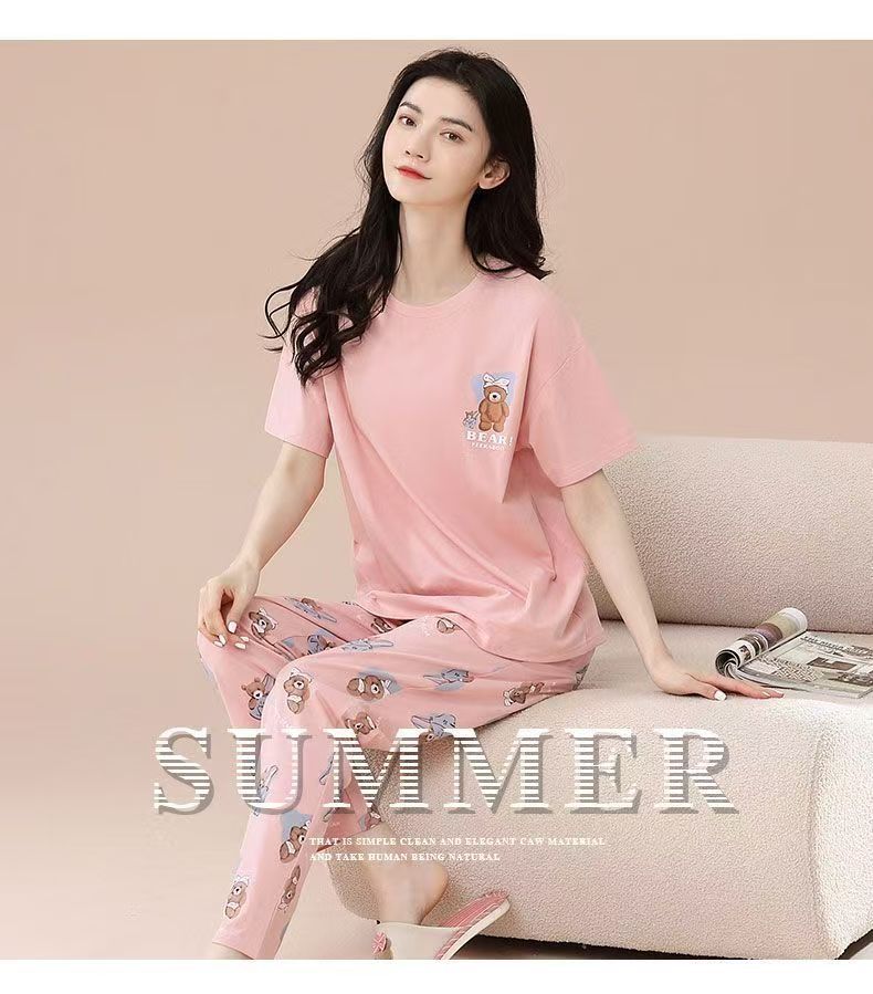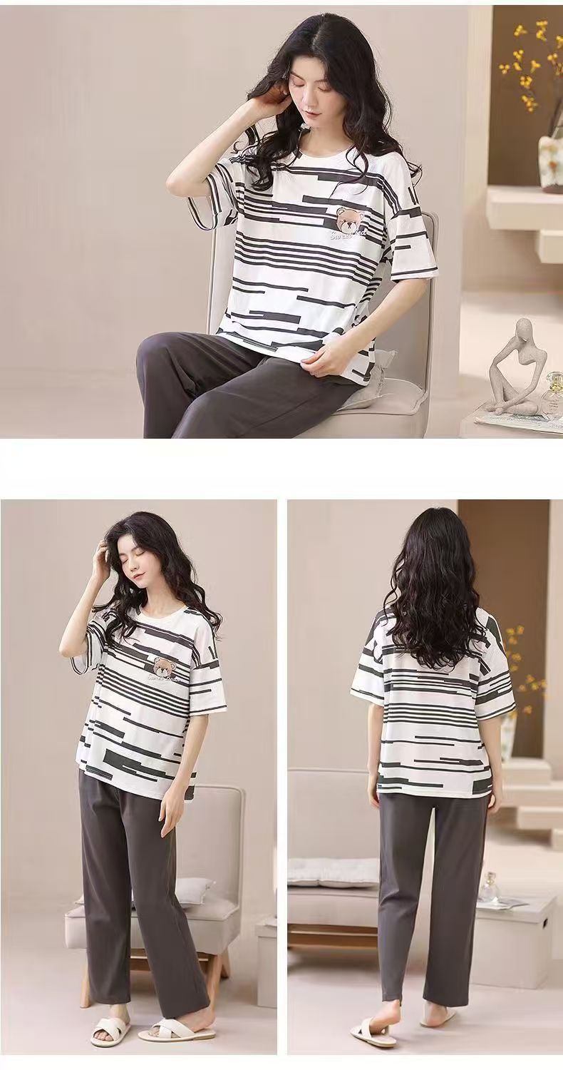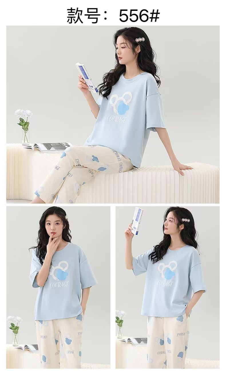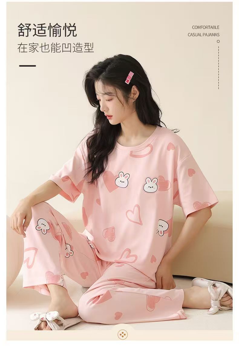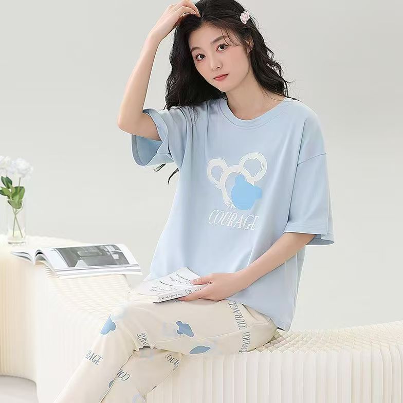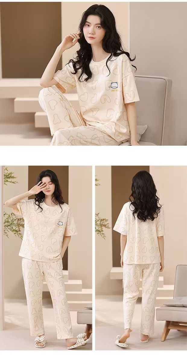 대외 무역 국경 파자마 여성의 새로운 여름 얇은 반팔 바지 라운드 넥 여름 겉옷 여성 세트스토어 가기