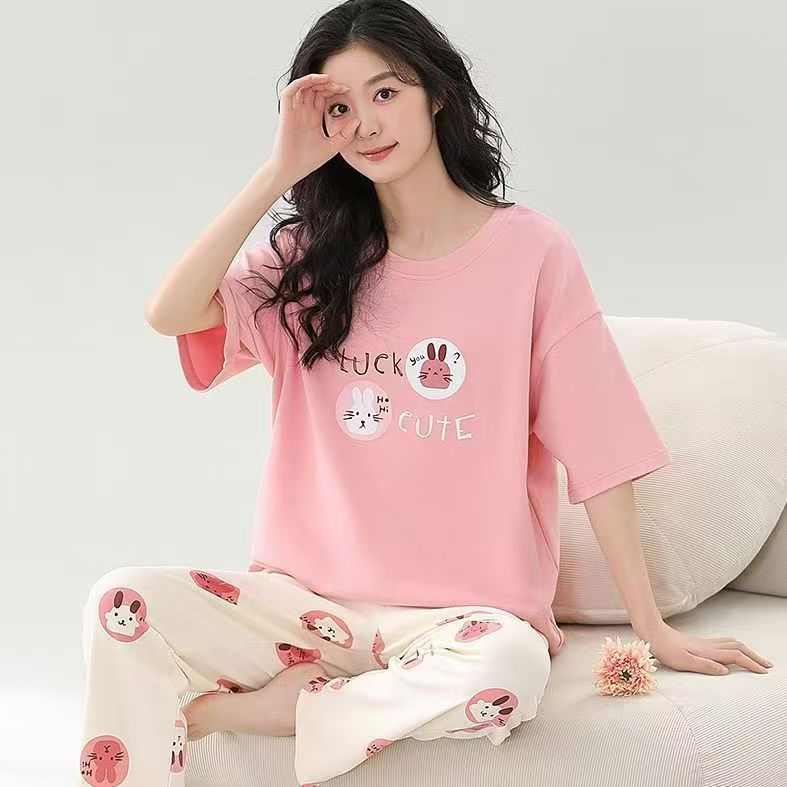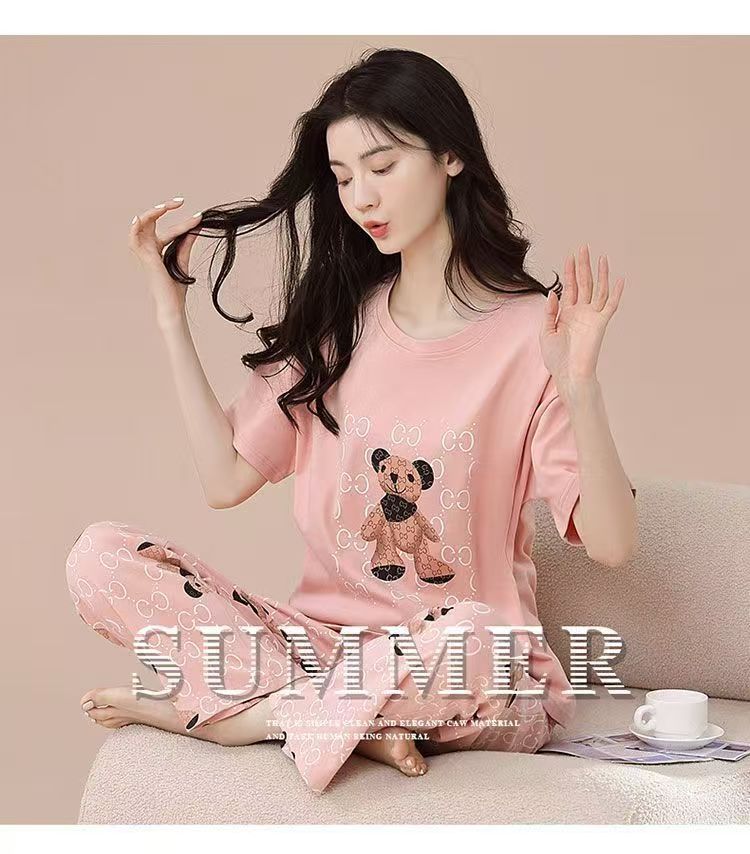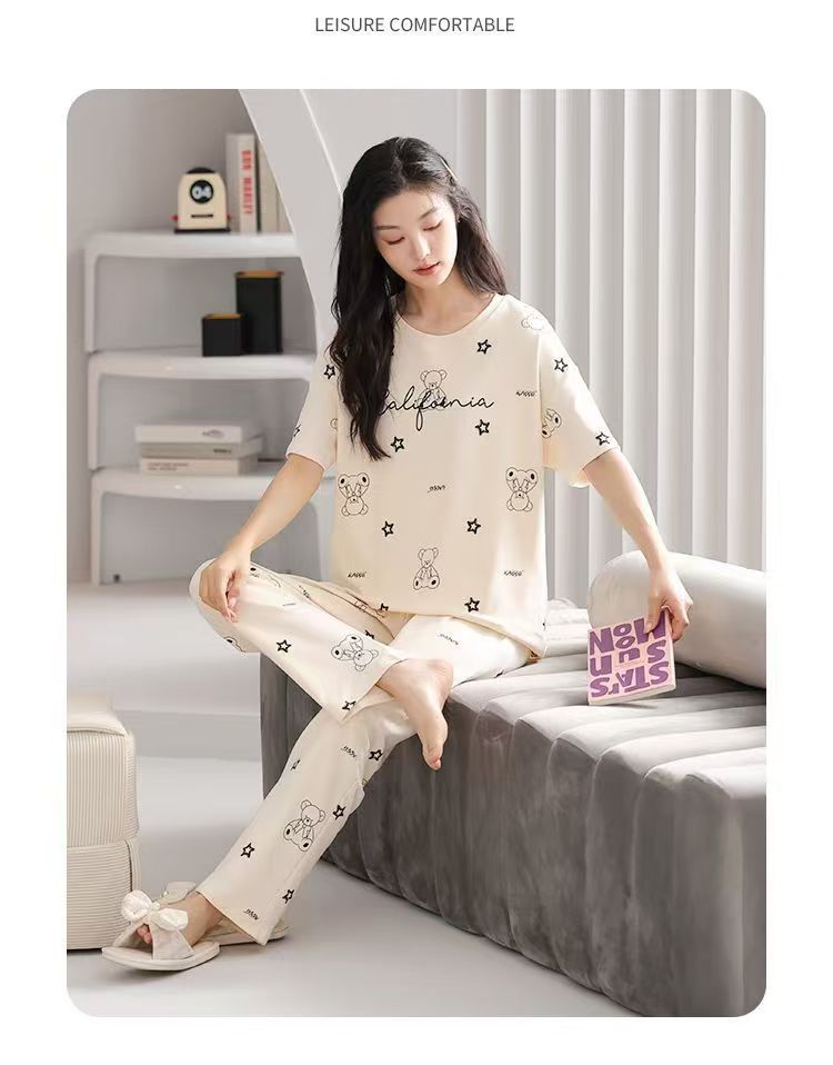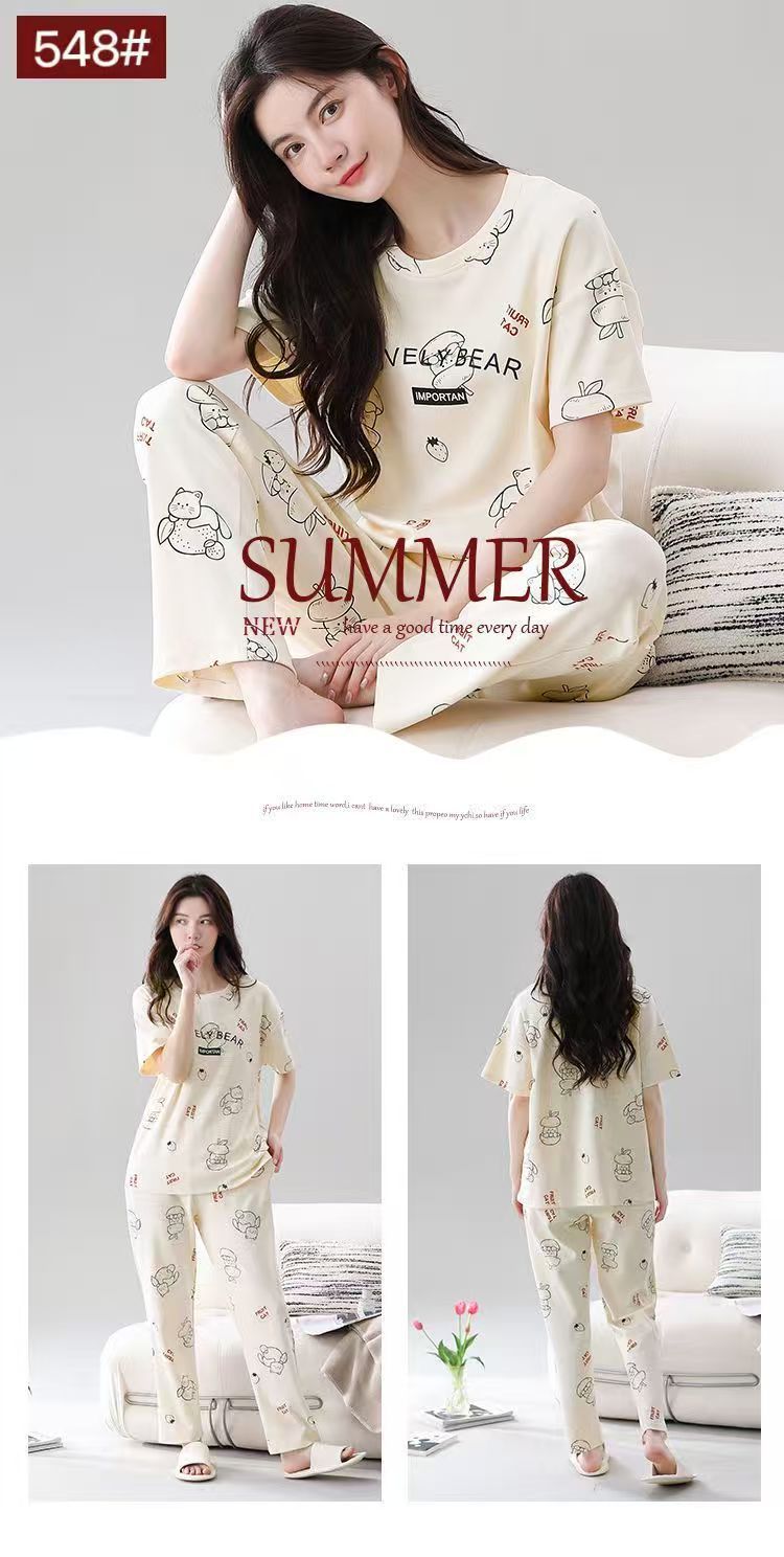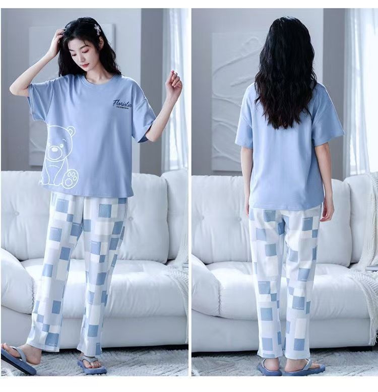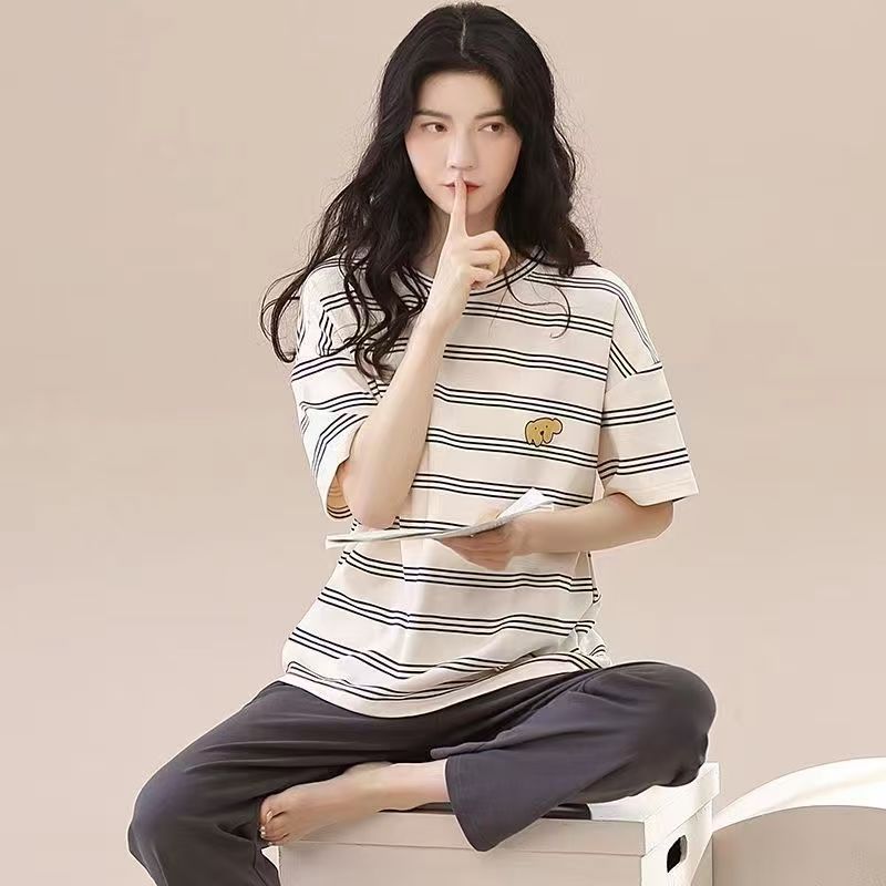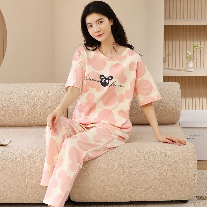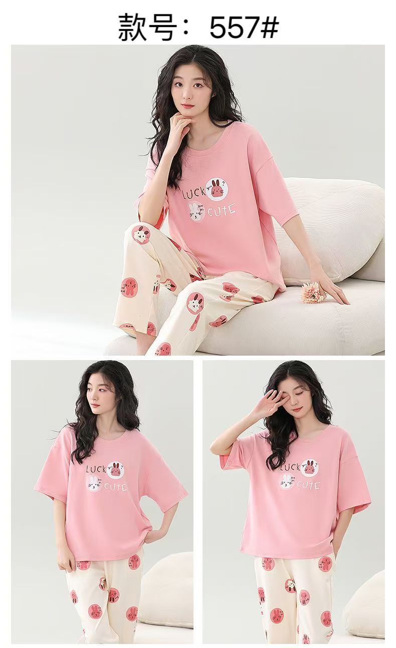 대외 무역 국경 파자마 여성의 새로운 여름 얇은 반팔 바지 라운드 넥 여름 겉옷 여성 세트스토어 가기