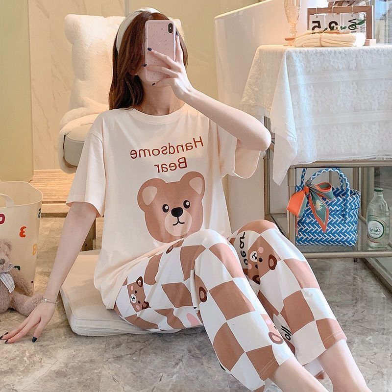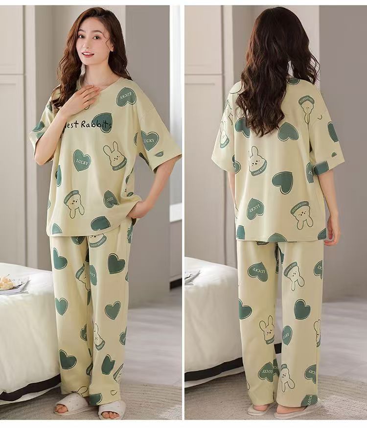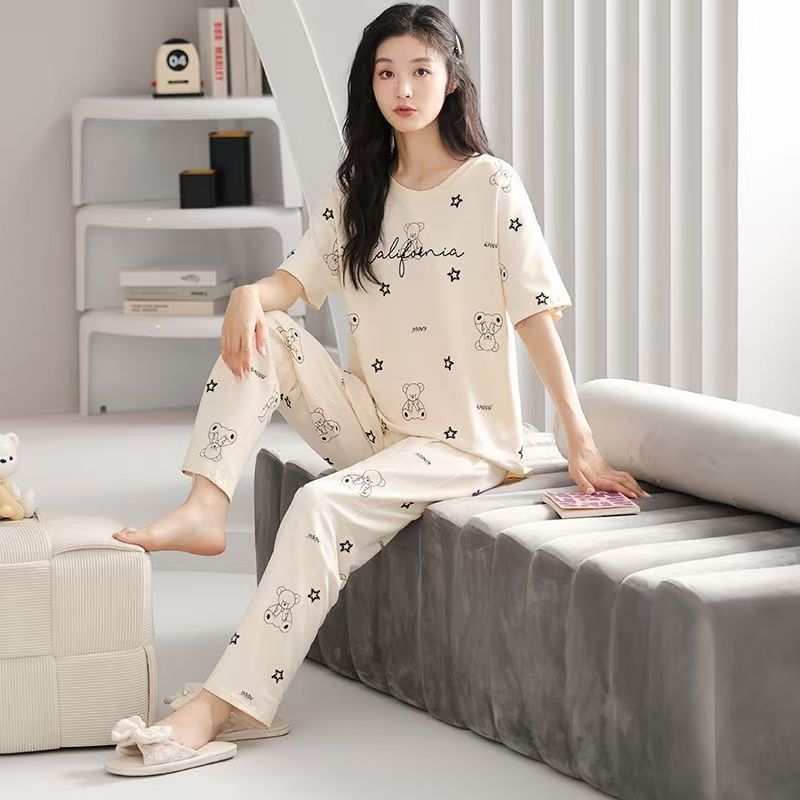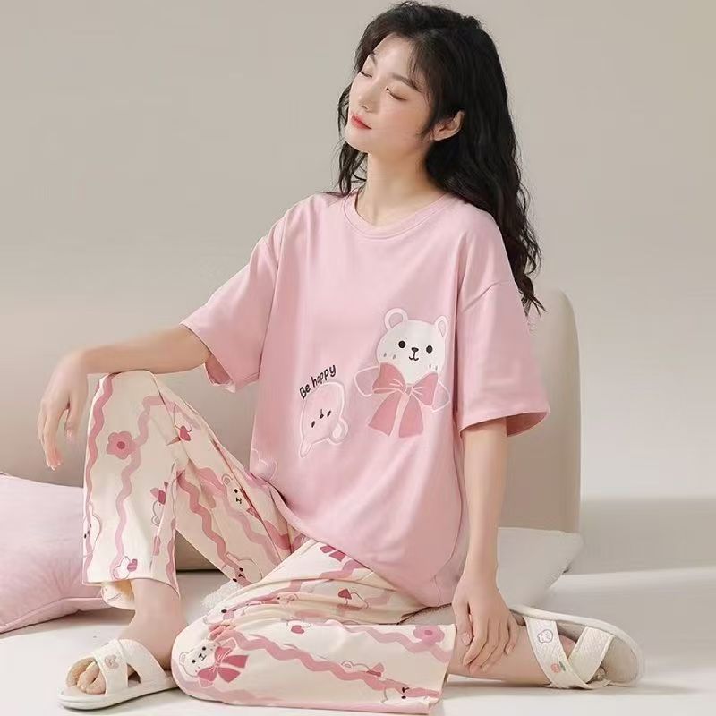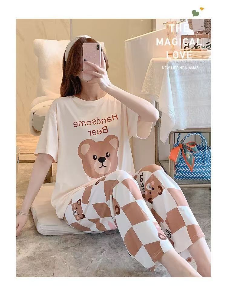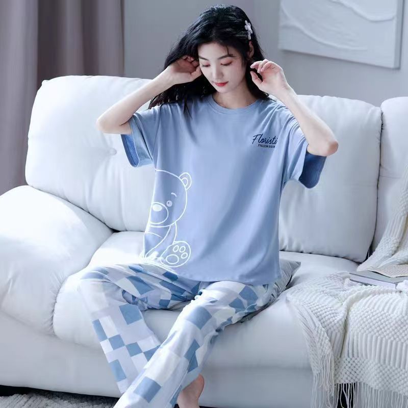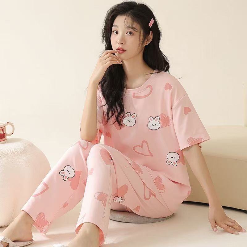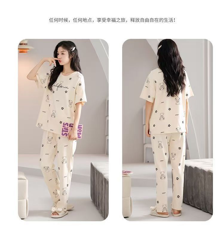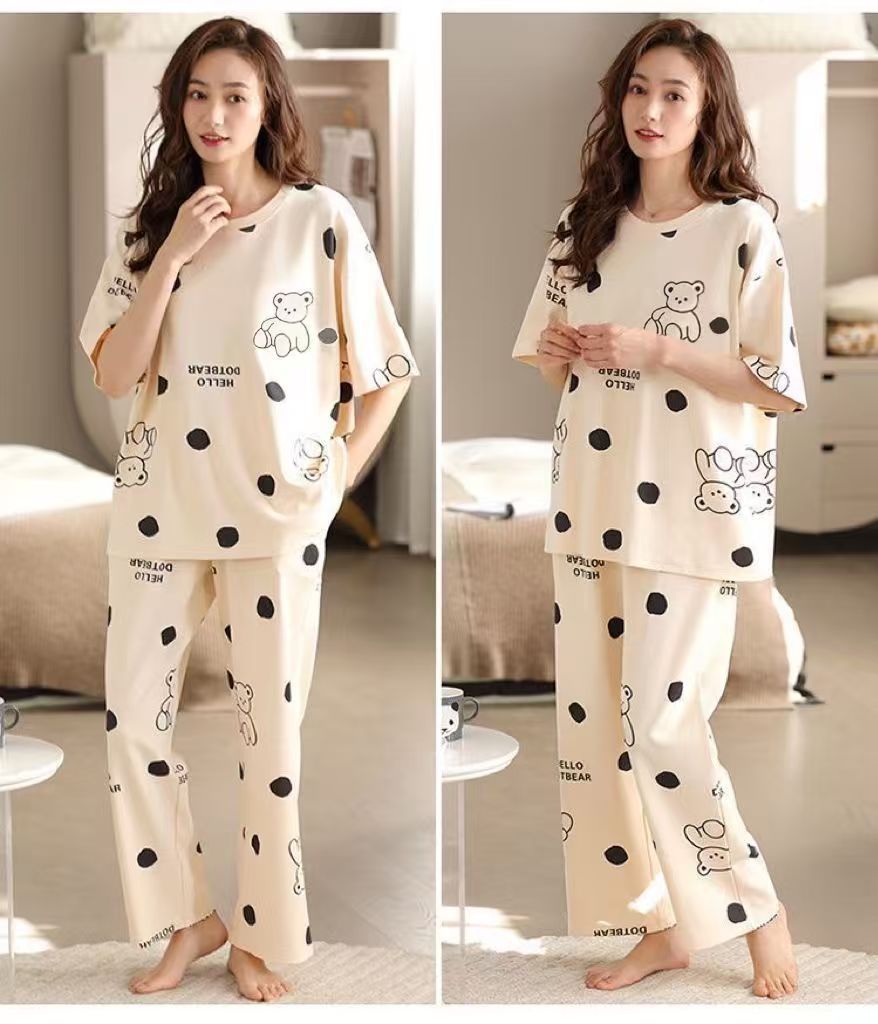 대외 무역 국경 파자마 여성의 새로운 여름 얇은 반팔 바지 라운드 넥 여름 겉옷 여성 세트스토어 가기