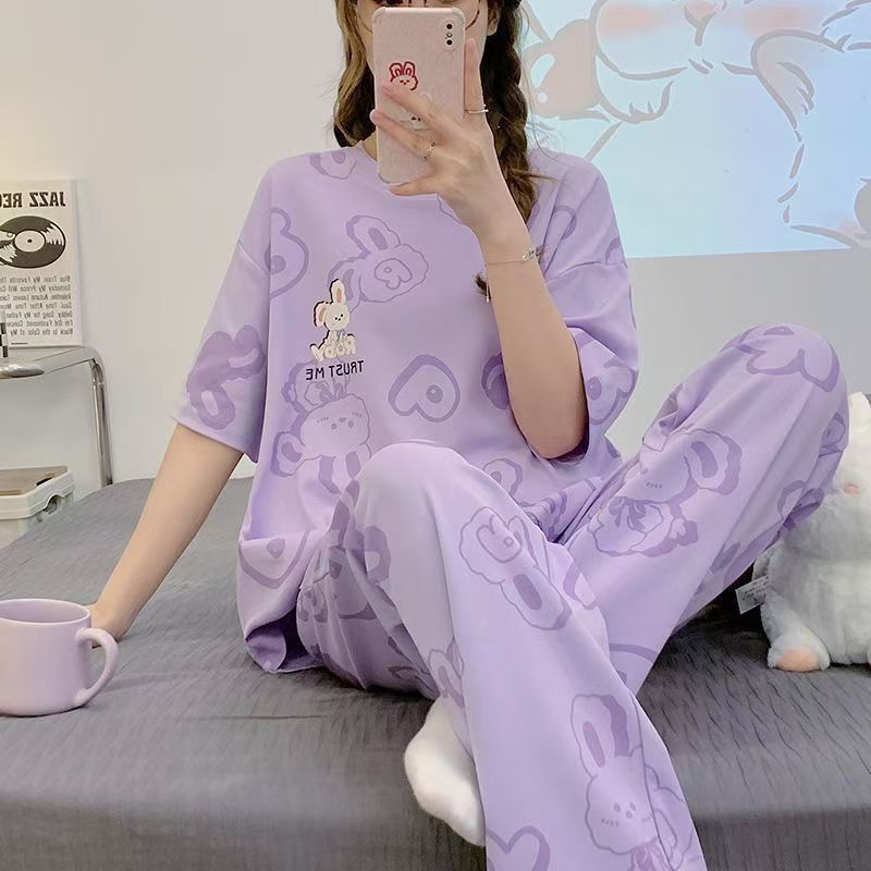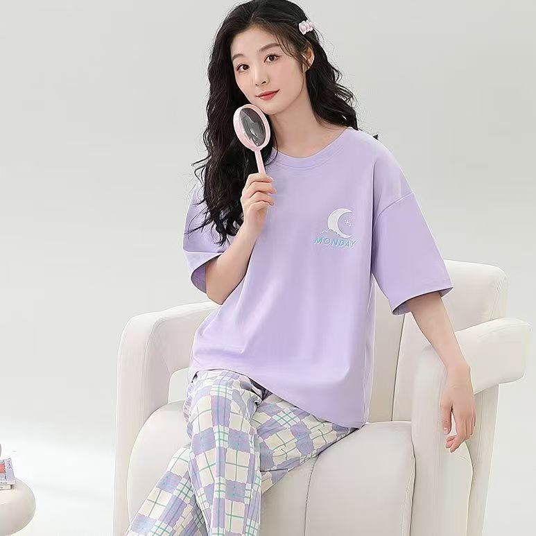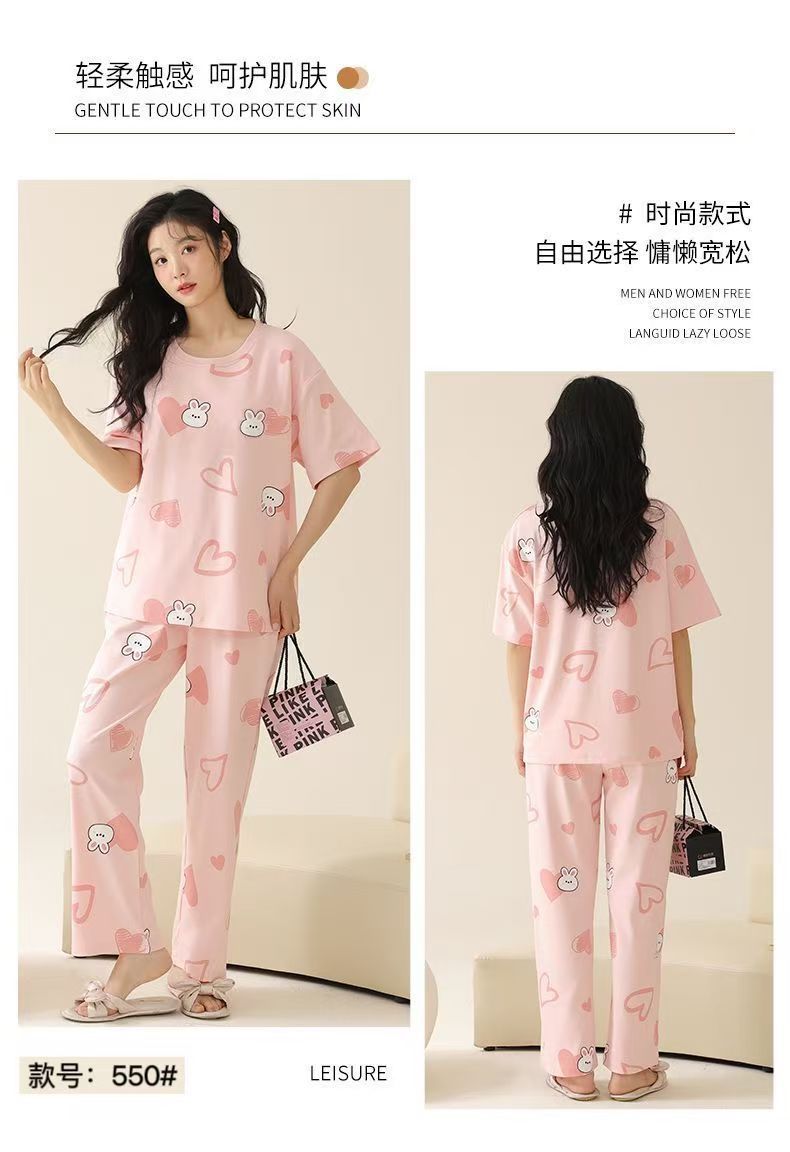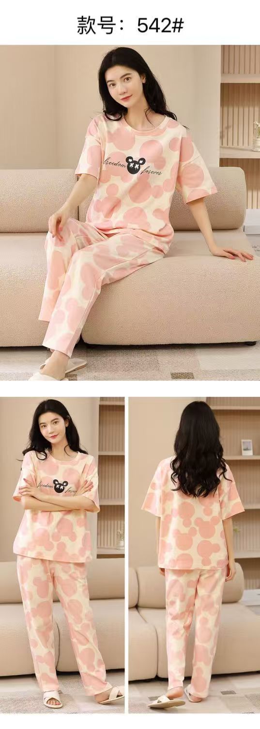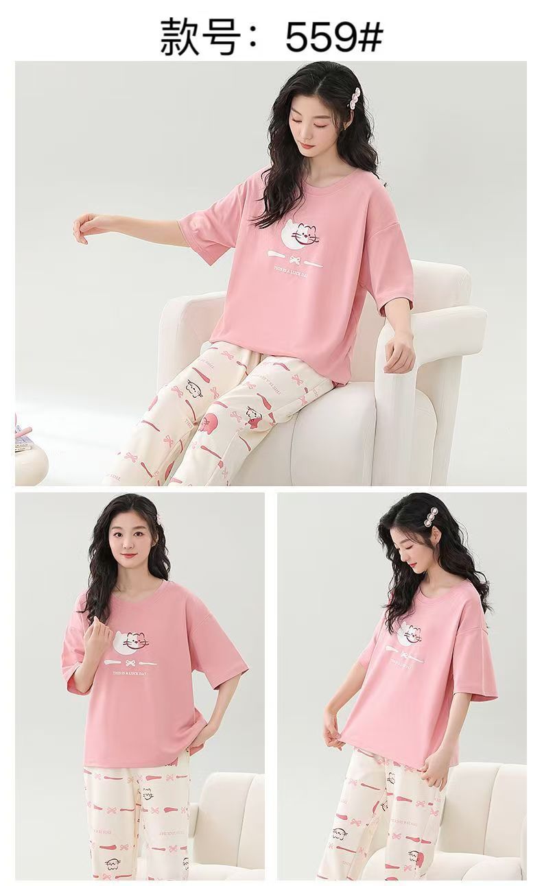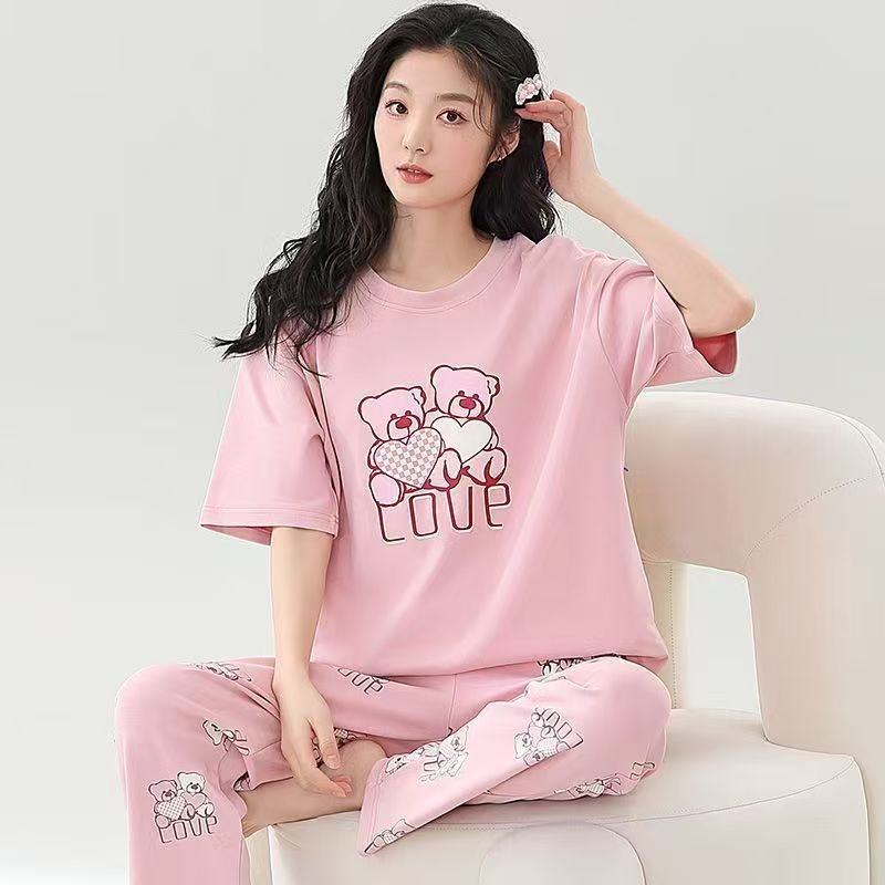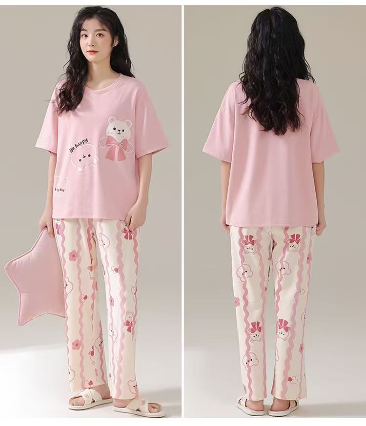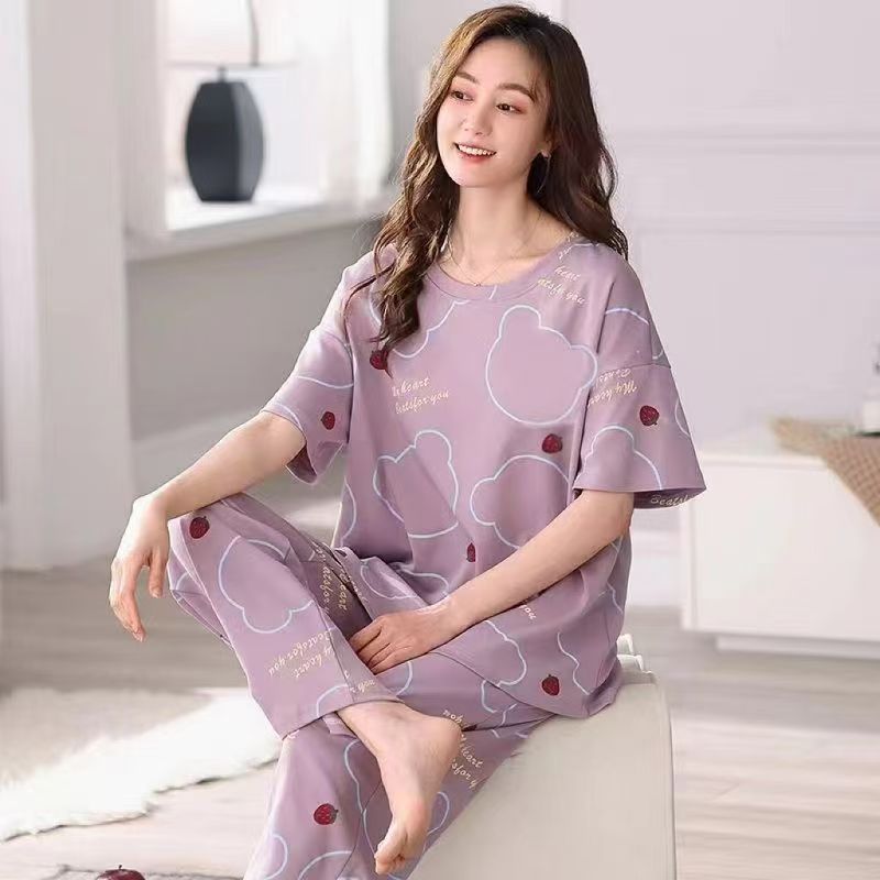 대외 무역 국경 파자마 여성의 새로운 여름 얇은 반팔 바지 라운드 넥 여름 겉옷 여성 세트스토어 가기