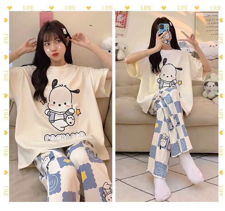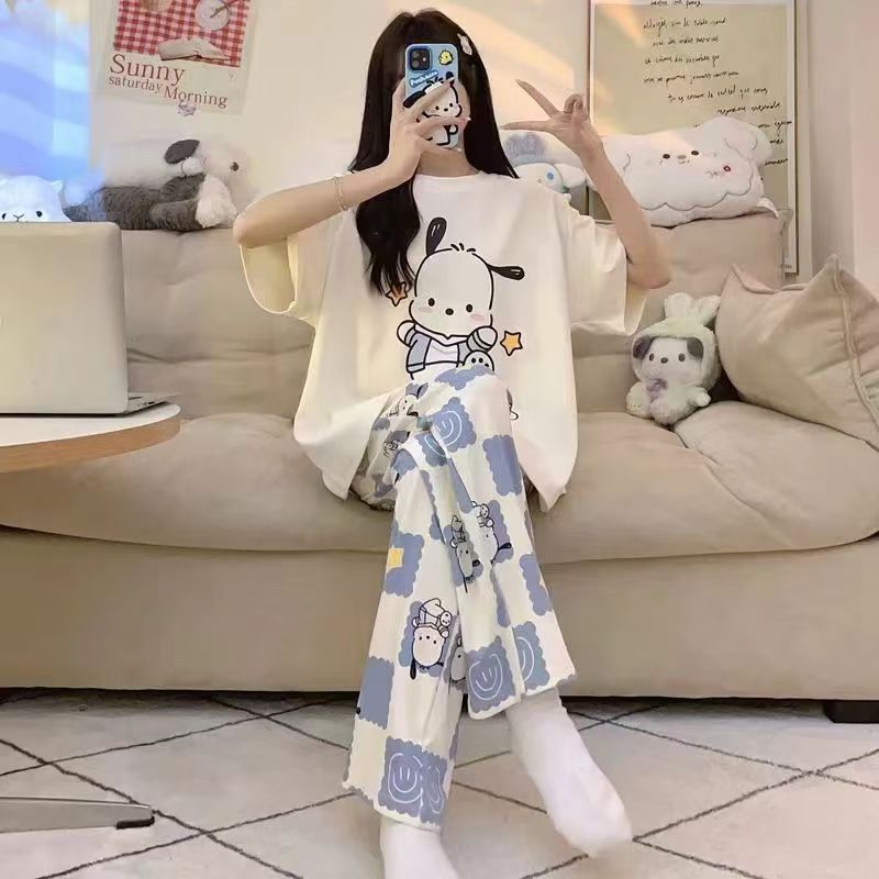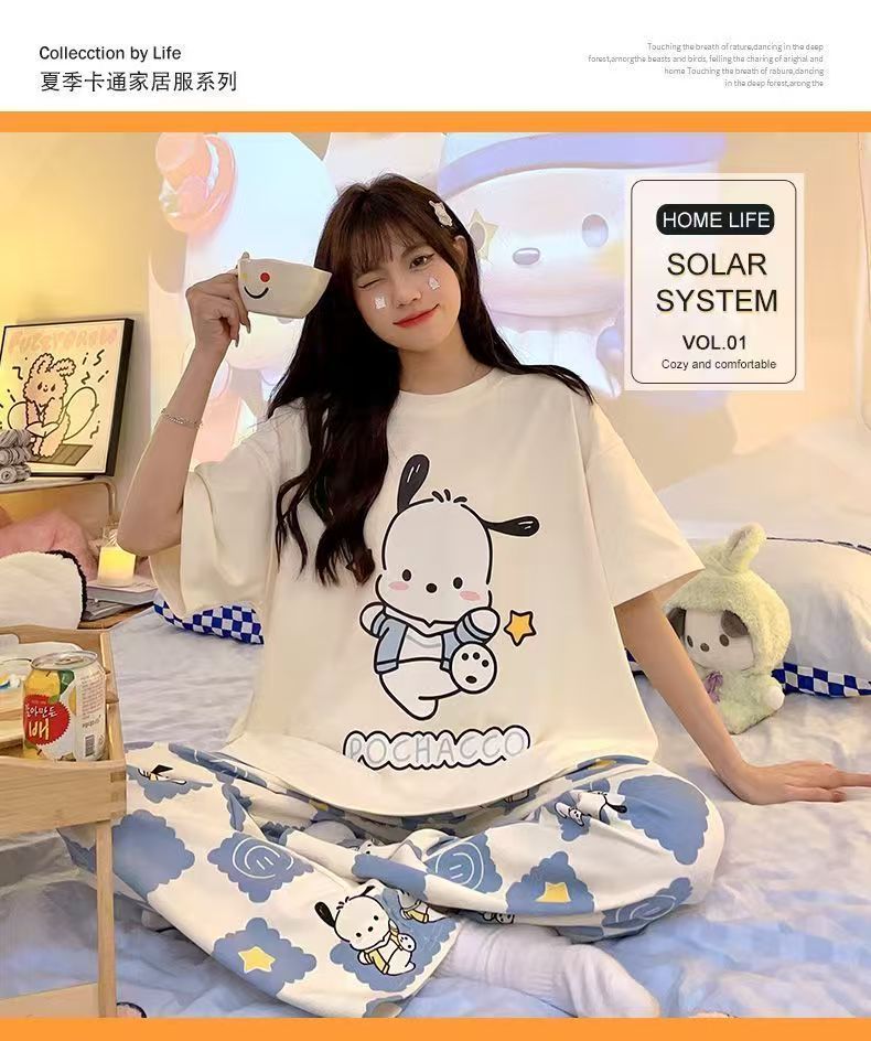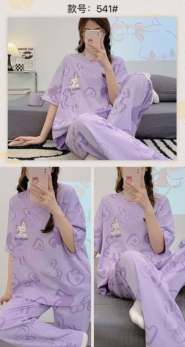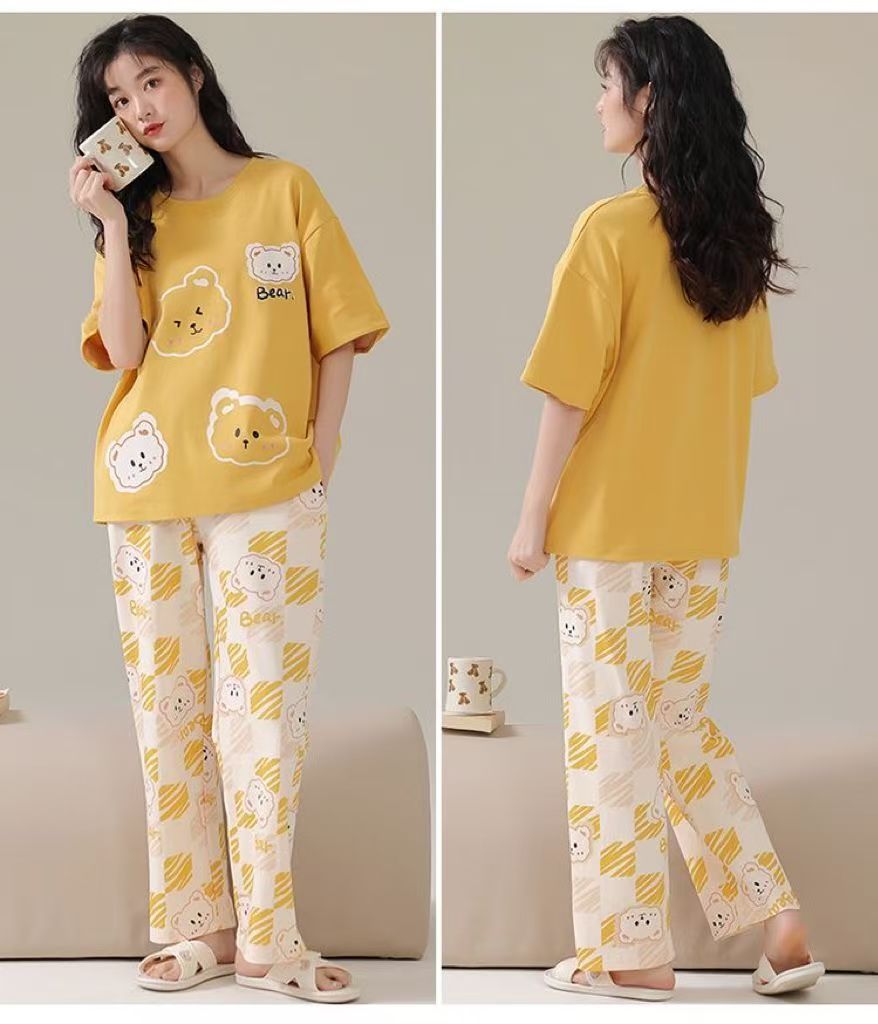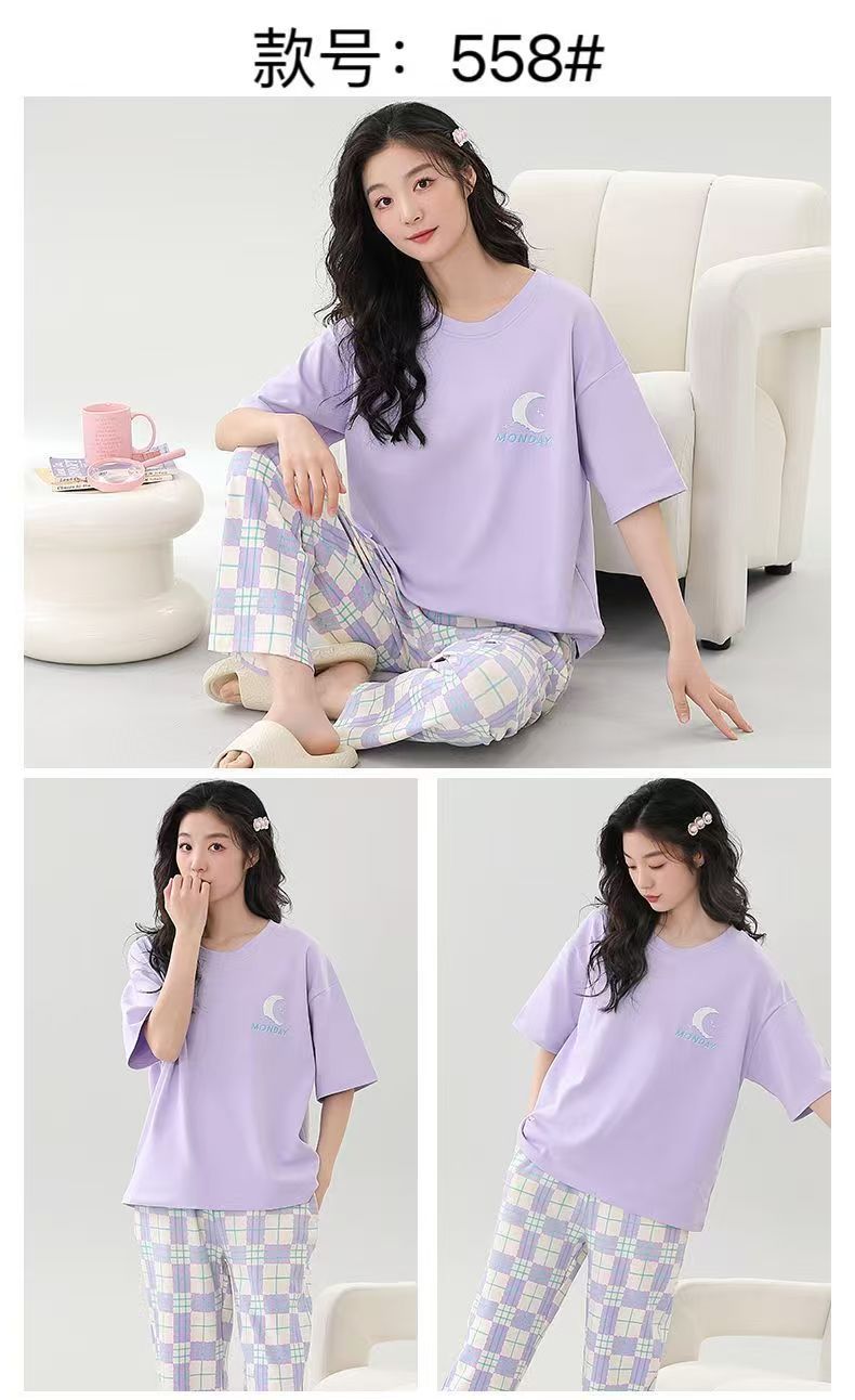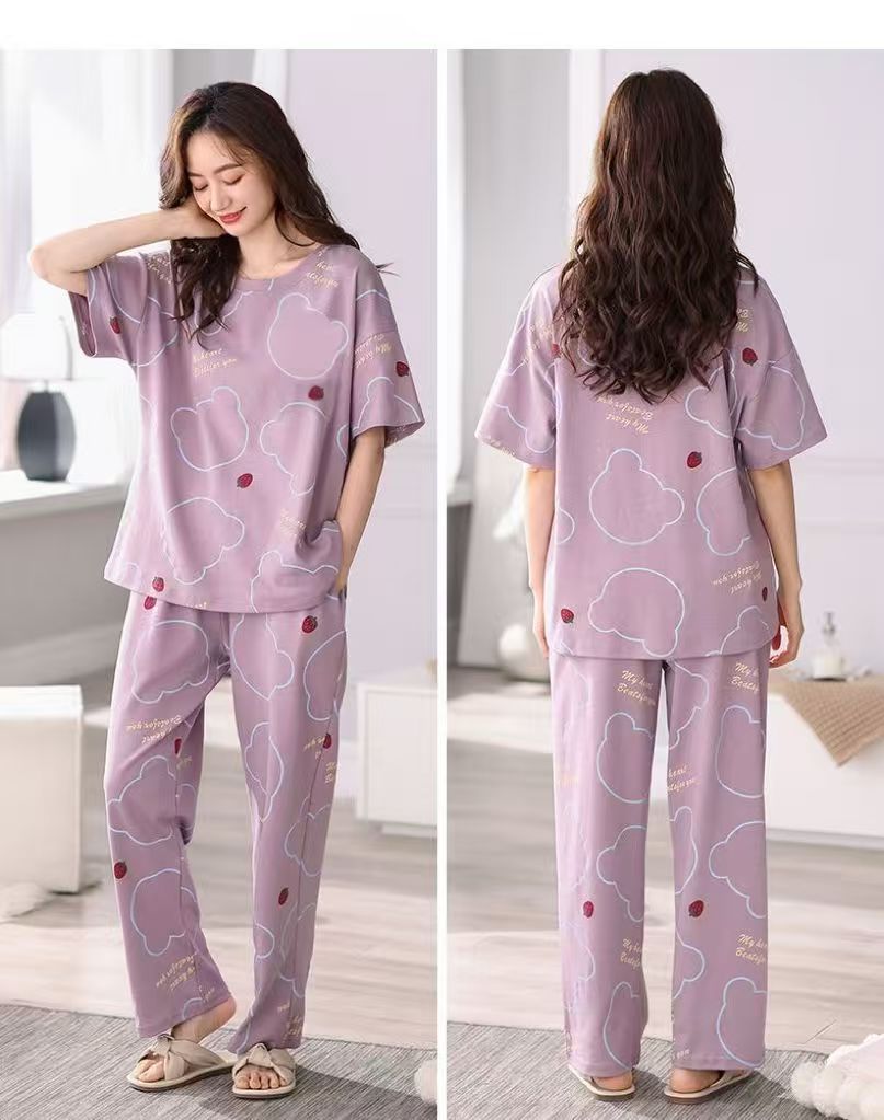 대외 무역 국경 파자마 여성의 새로운 여름 얇은 반팔 바지 라운드 넥 여름 겉옷 여성 세트스토어 가기