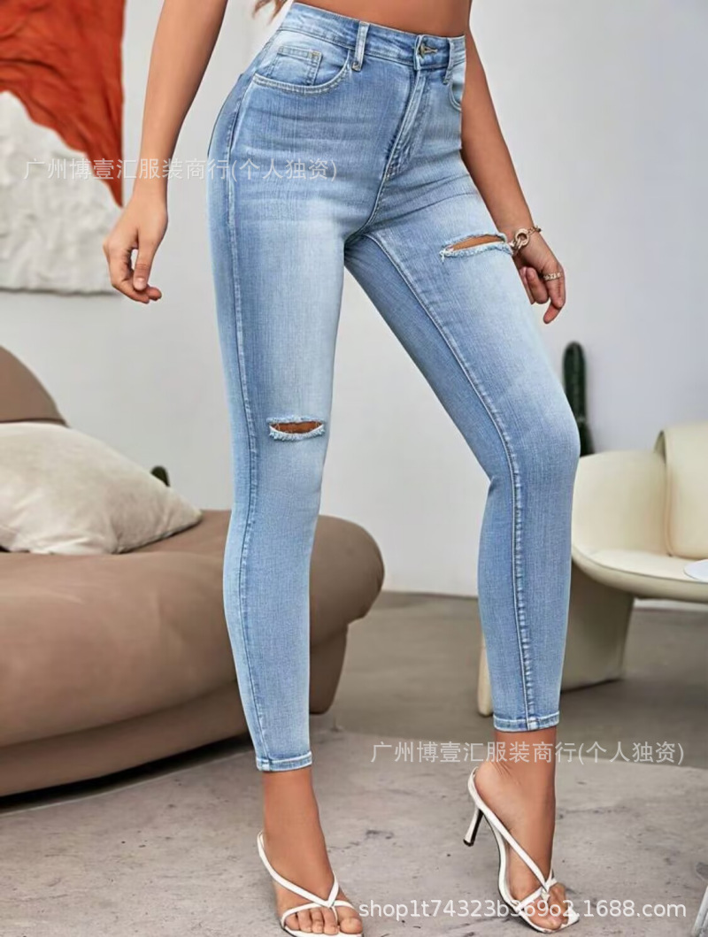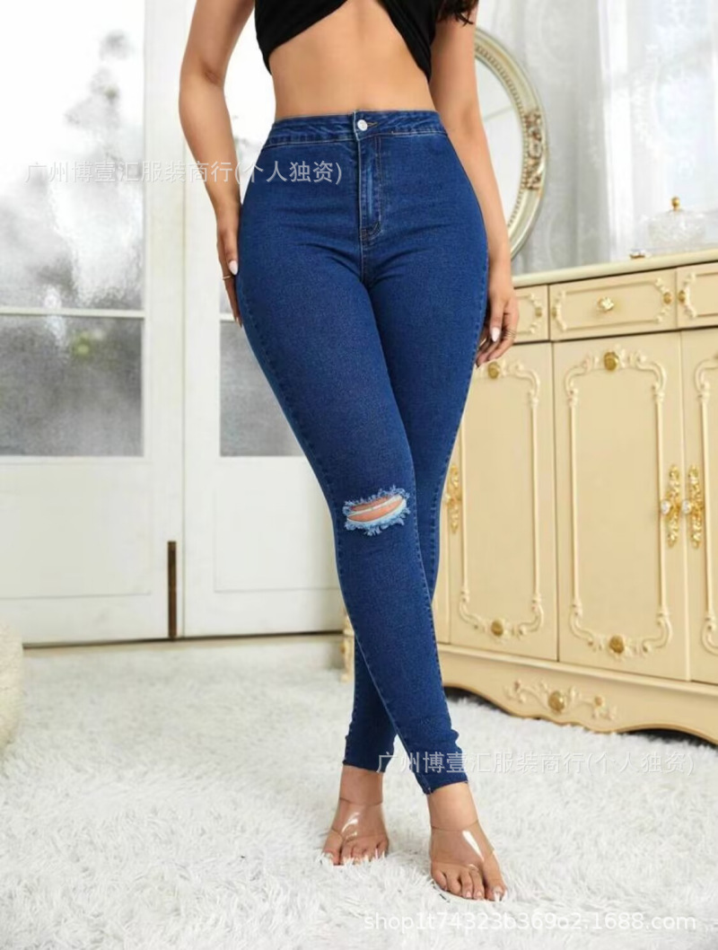 여성용 스키니 진 크로스보더 유럽 및 미국 여성용 플러스 사이즈 스트레치 타이트 청바지 이용 가능스토어 가기