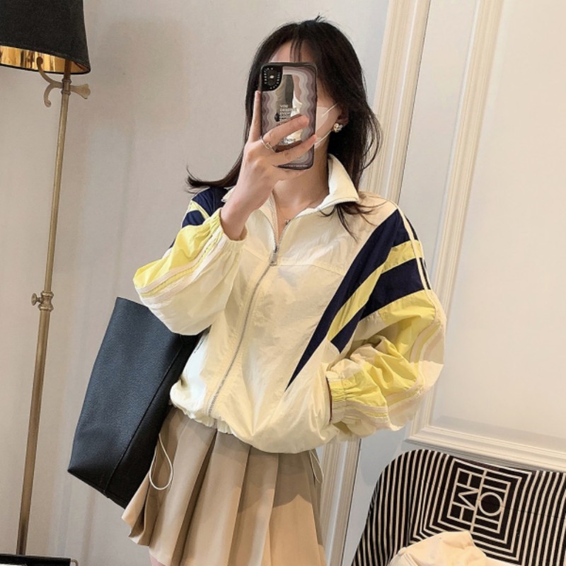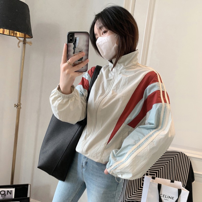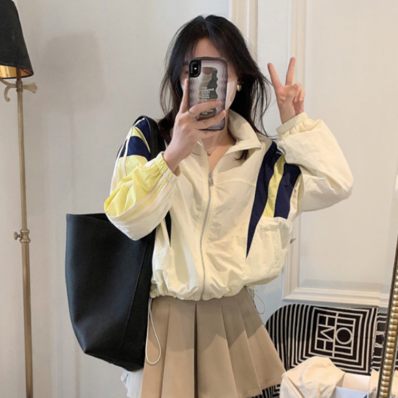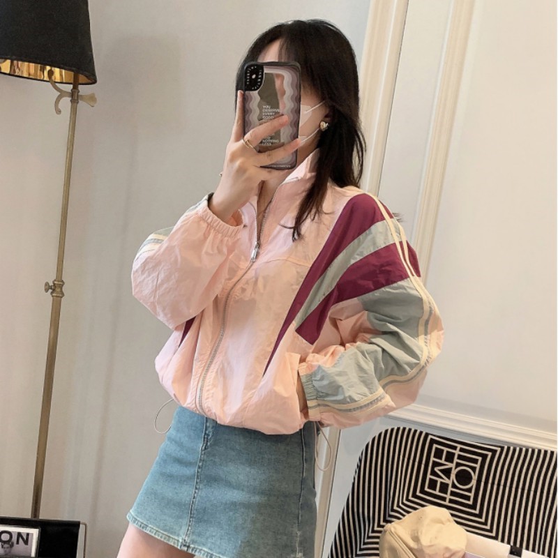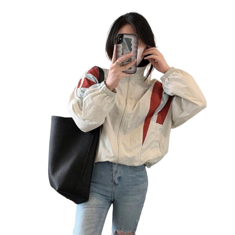 여성 선 스크린 의류 2025 여름 한국 스타일 패션 드로우 스트링 컬러 스티칭 자외선 방지 얇은 코트 탑스토어 가기