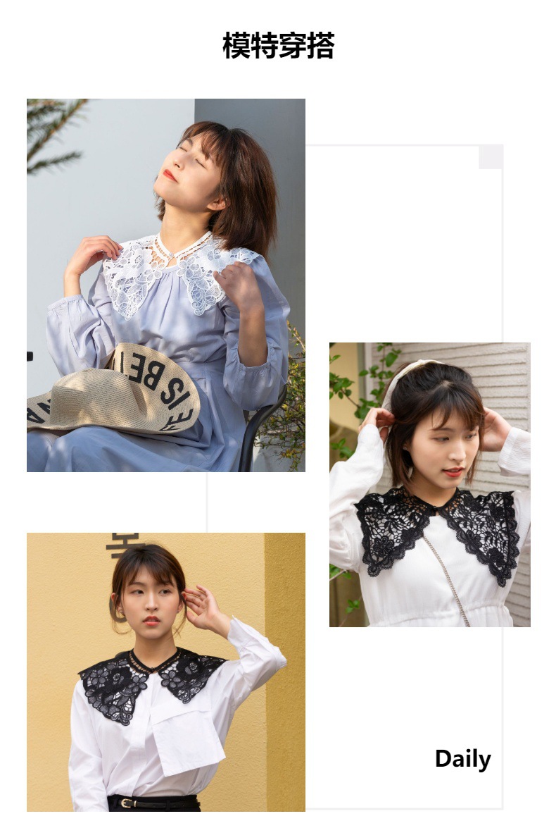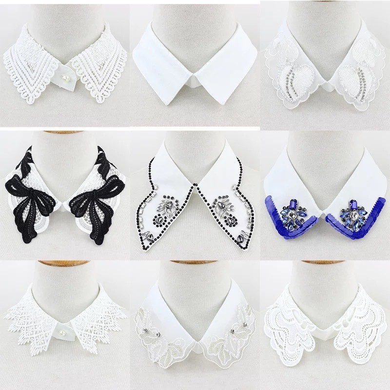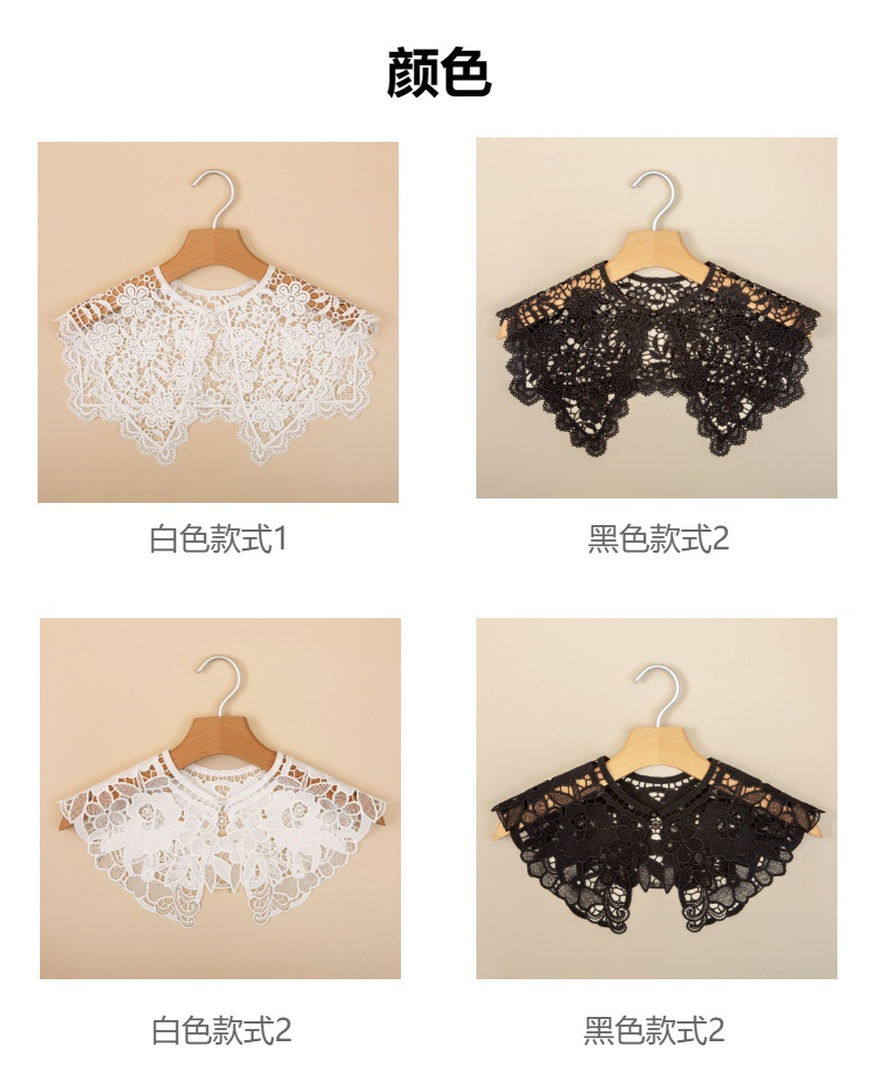 여성용 달콤한 숄 가짜 칼라, 속이 빈 수용성 자수 가짜 칼라, 장식 스커트, 티셔츠, 여성용 레이스 칼라 작은 숄