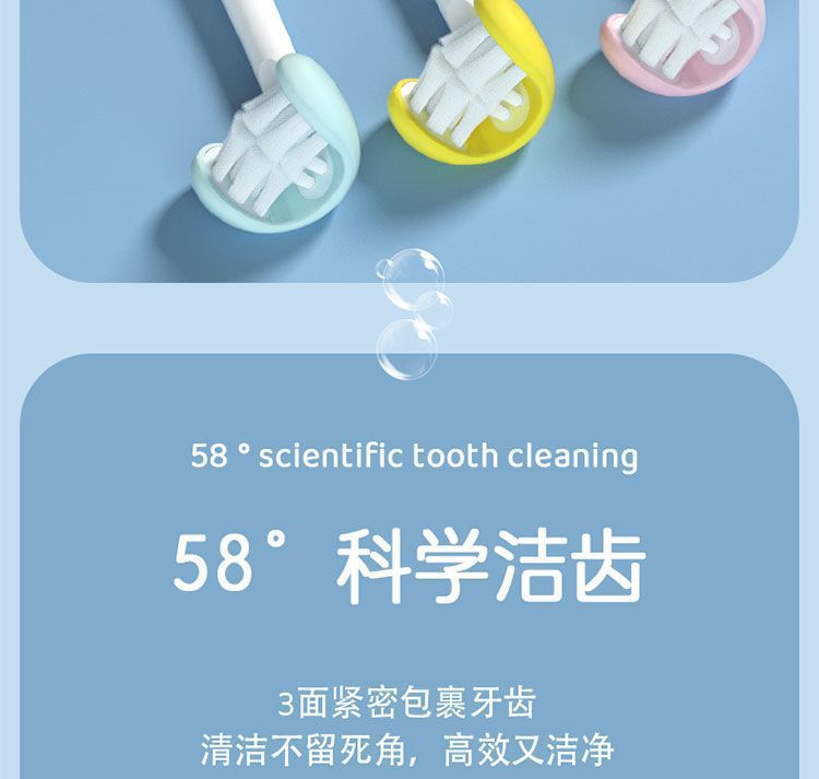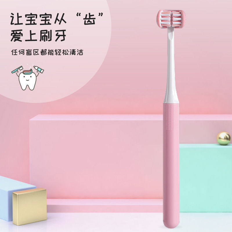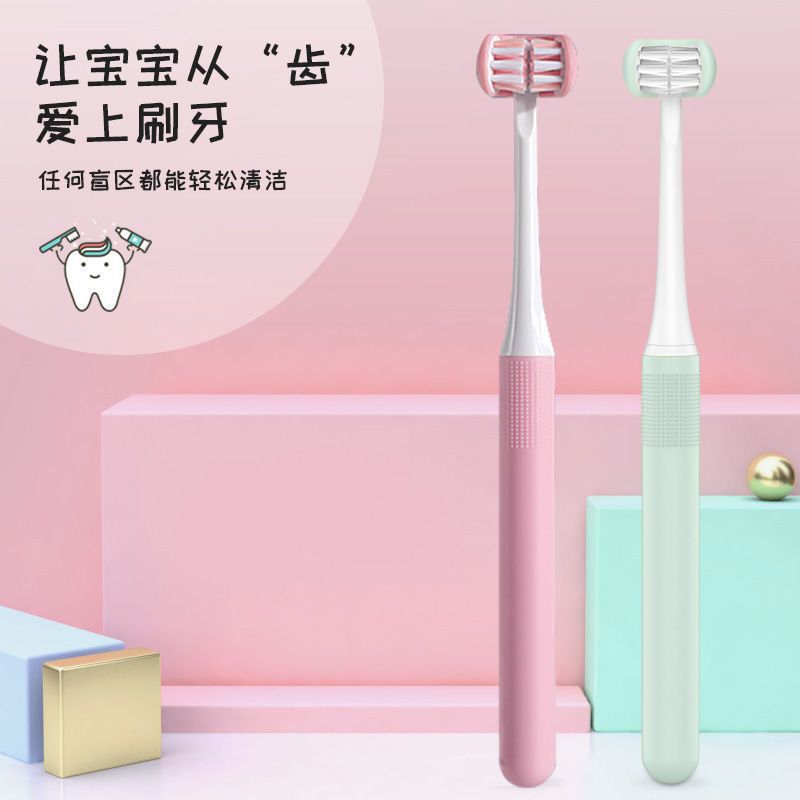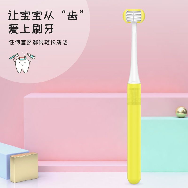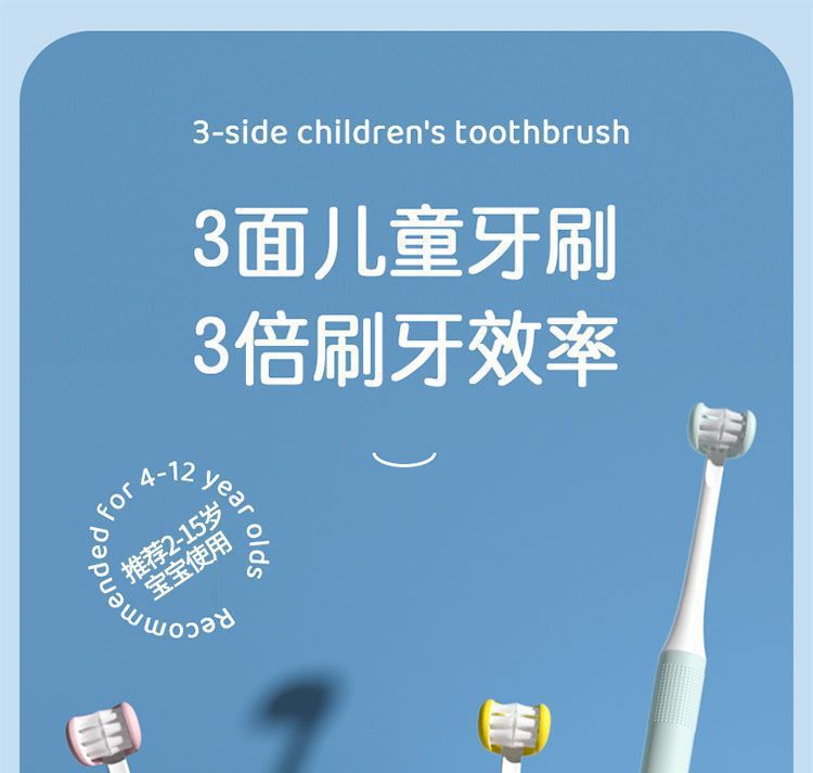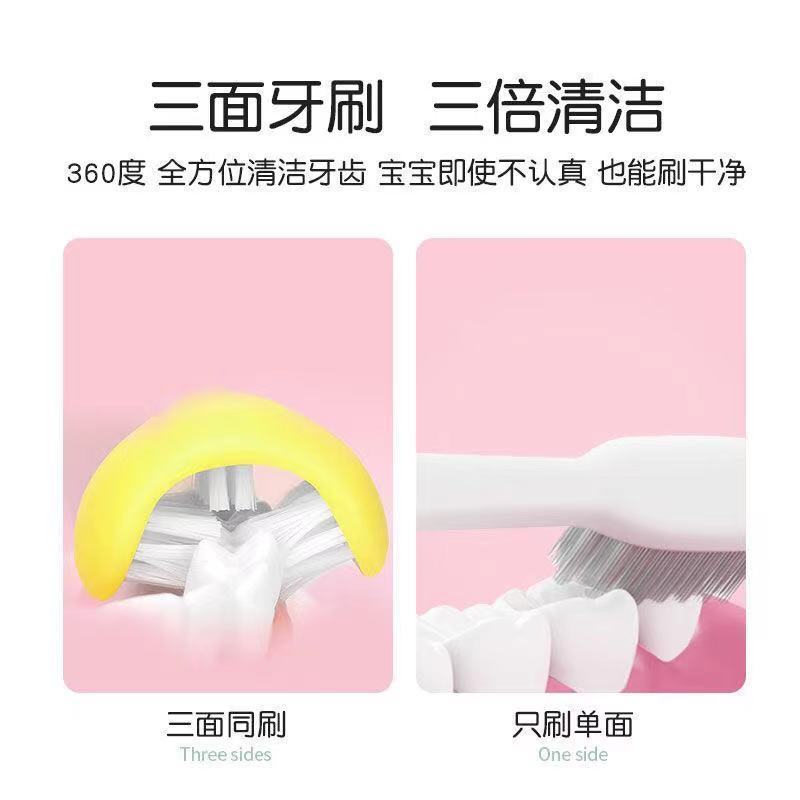 어린이용 삼면 어린이 칫솔 U자형으로 잇몸을 상하게 하지 않습니다. 3D 풀 랩 슈퍼 소프트 강모 2~15세에 적합합니다.