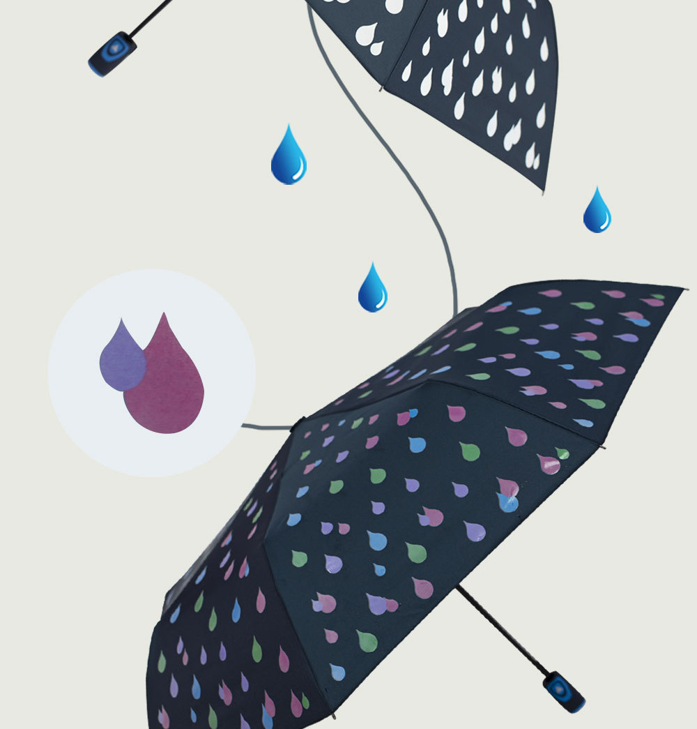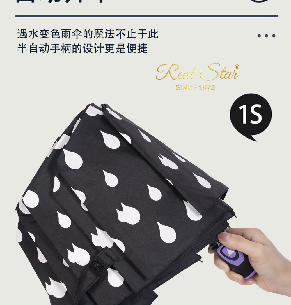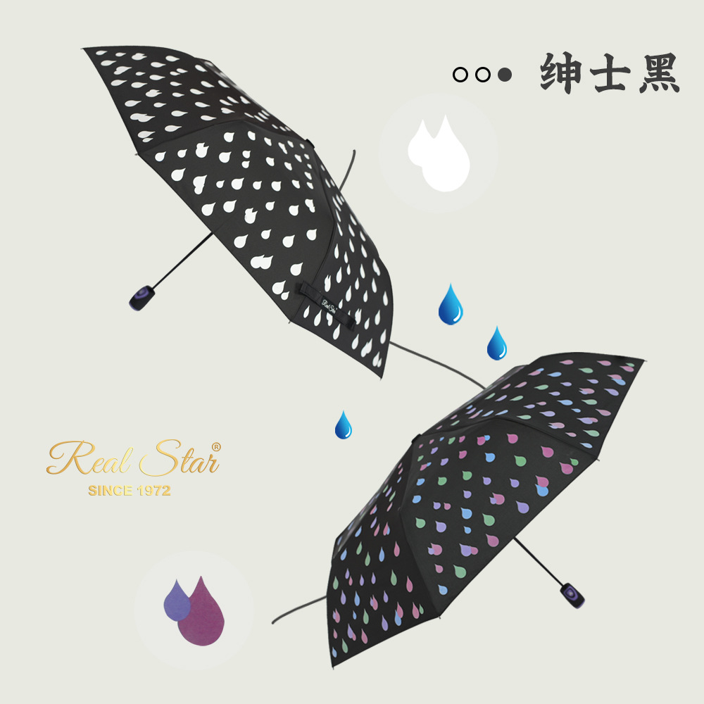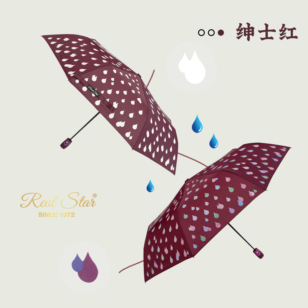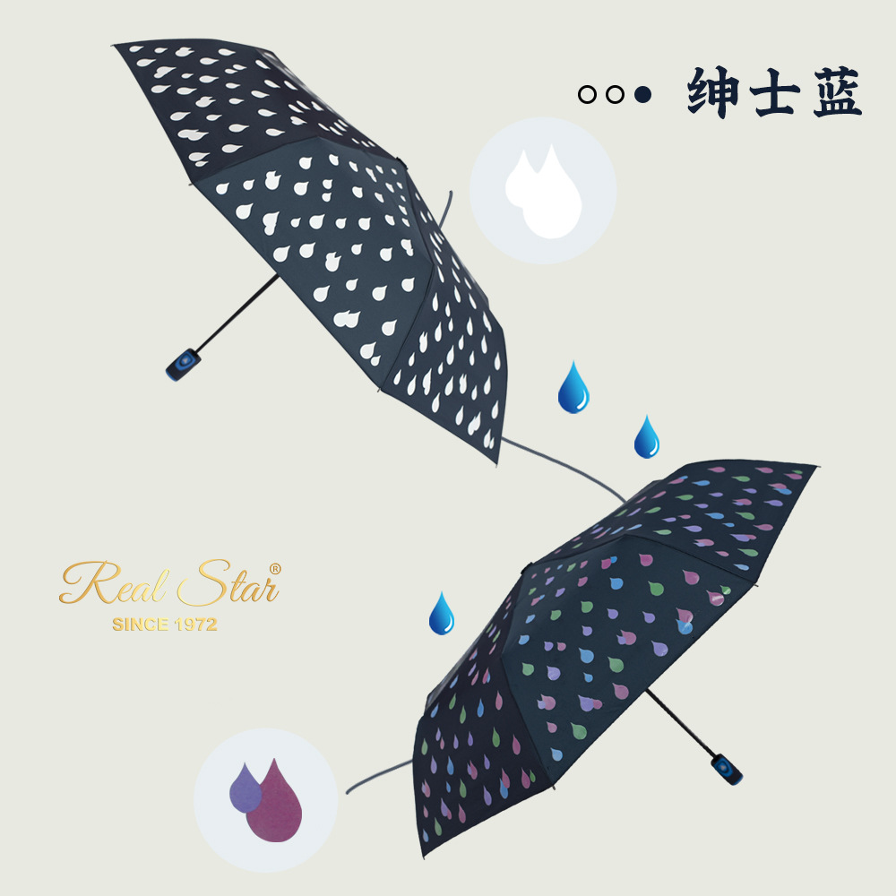 RST 창의적인 빗방울 무늬가 물에 닿으면 색이 변하는 70% off단 자동 개폐 우산, 수출용 방풍 방수 재미있는 우산