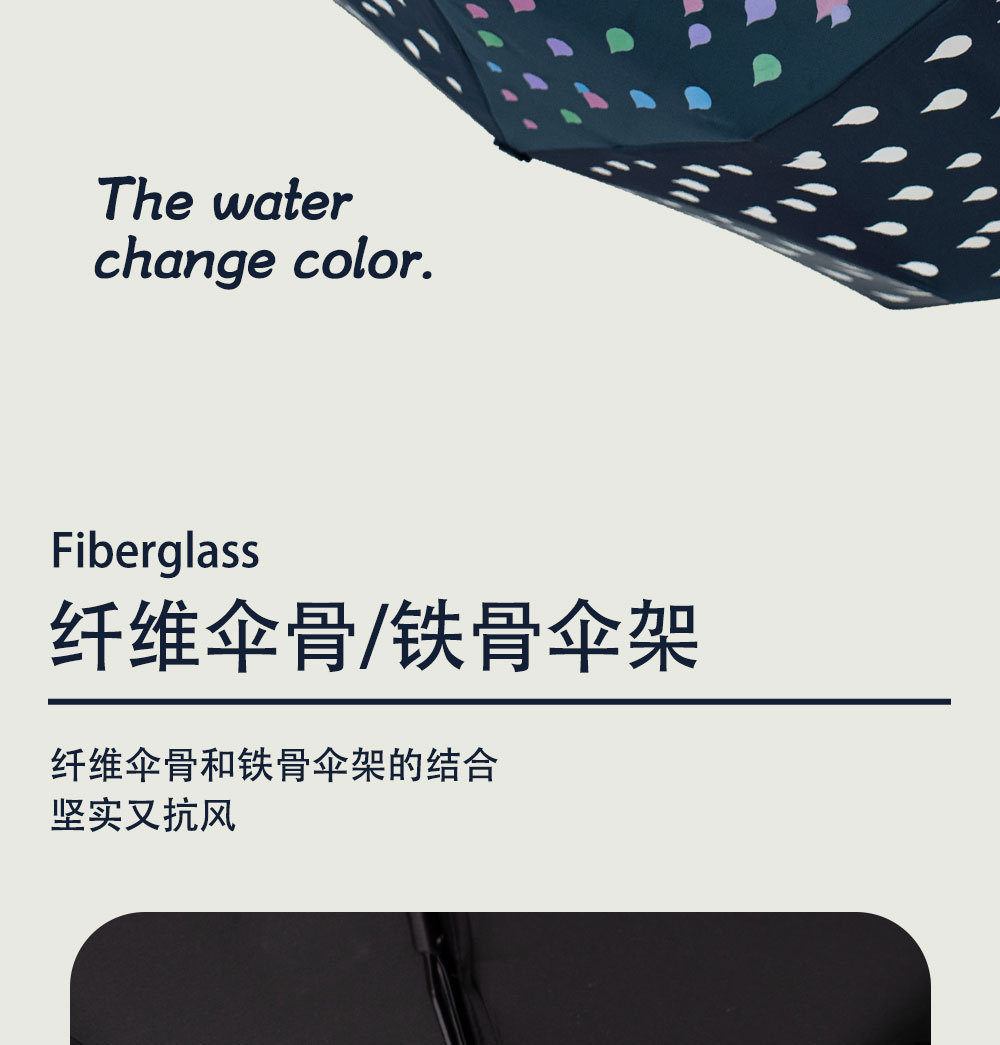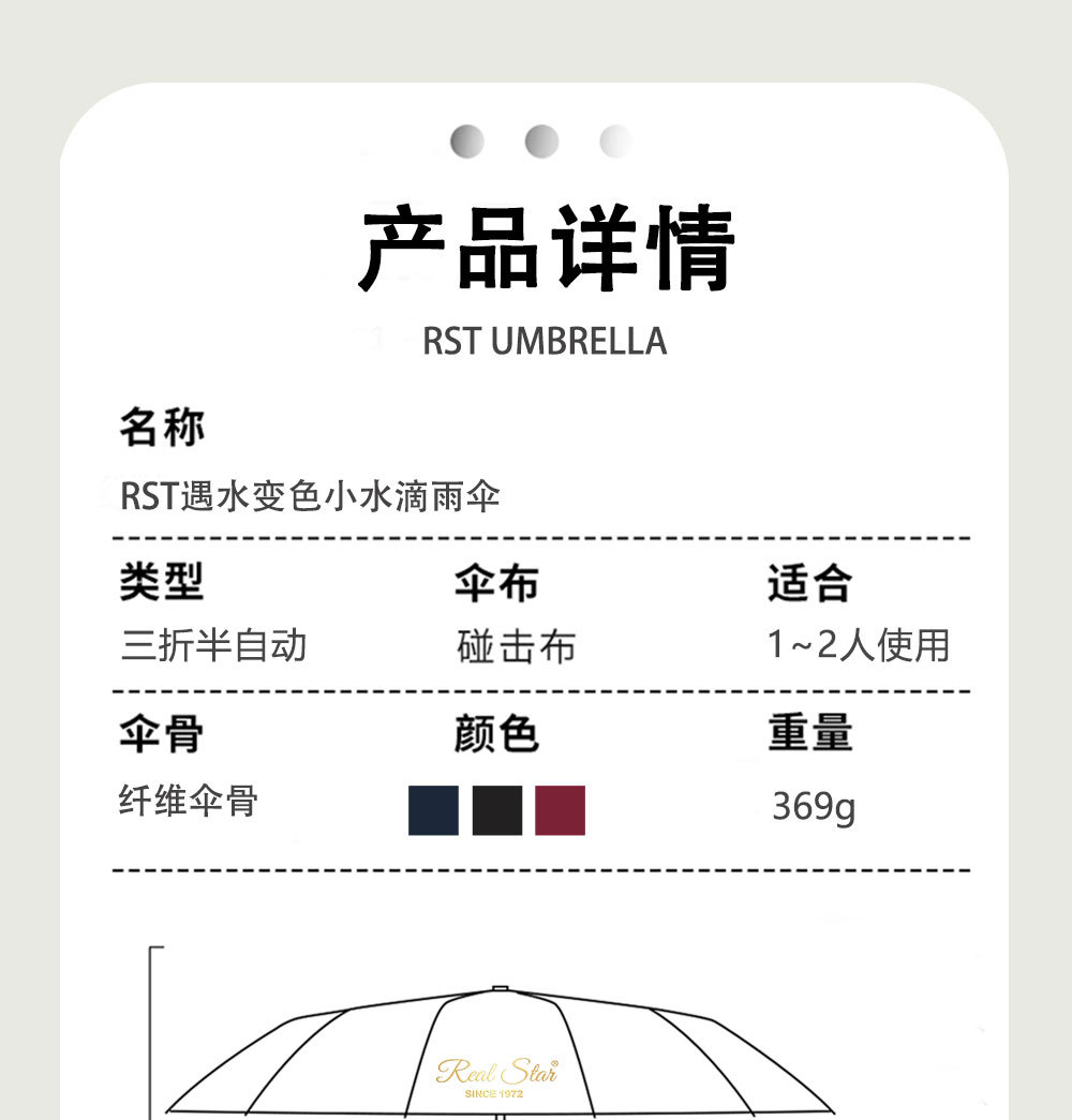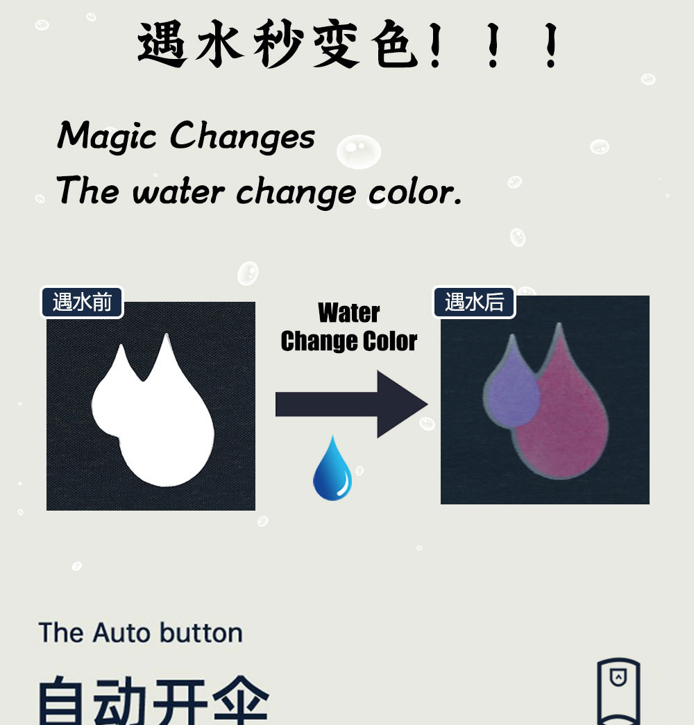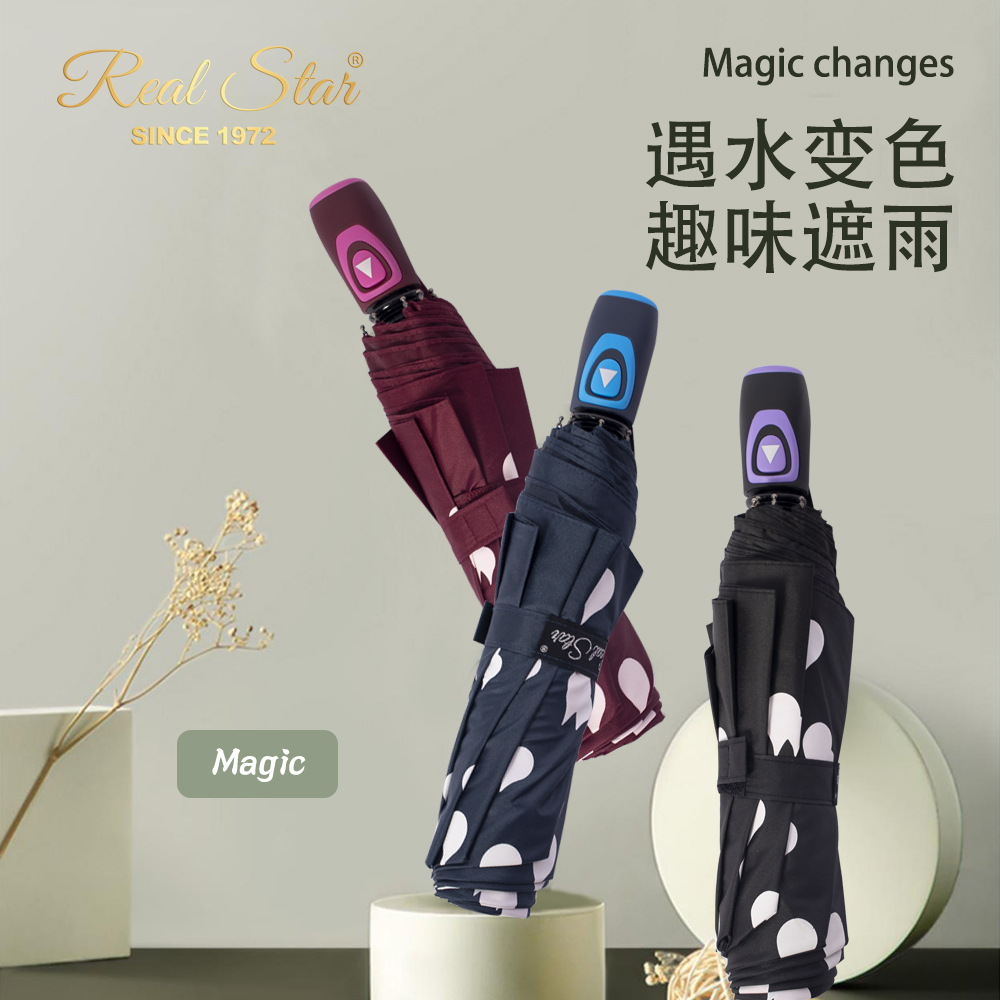 RST 창의적인 빗방울 무늬가 물에 닿으면 색이 변하는 70% off단 자동 개폐 우산, 수출용 방풍 방수 재미있는 우산