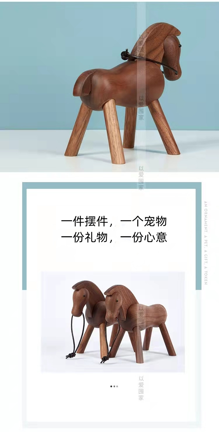 제조 업체 도매 크리 에이 티브 거실 장식 동물 검은 호두 단단한 나무 작은 목마 북유럽 덴마크 인형 장식품스토어 가기