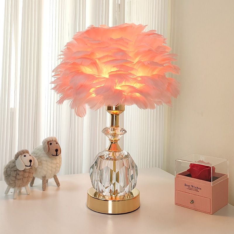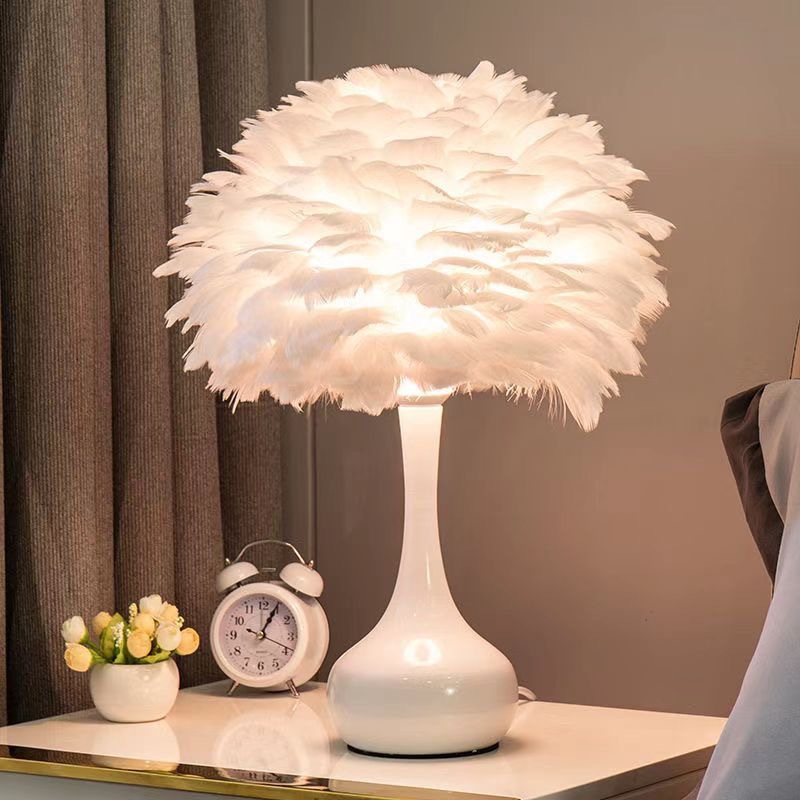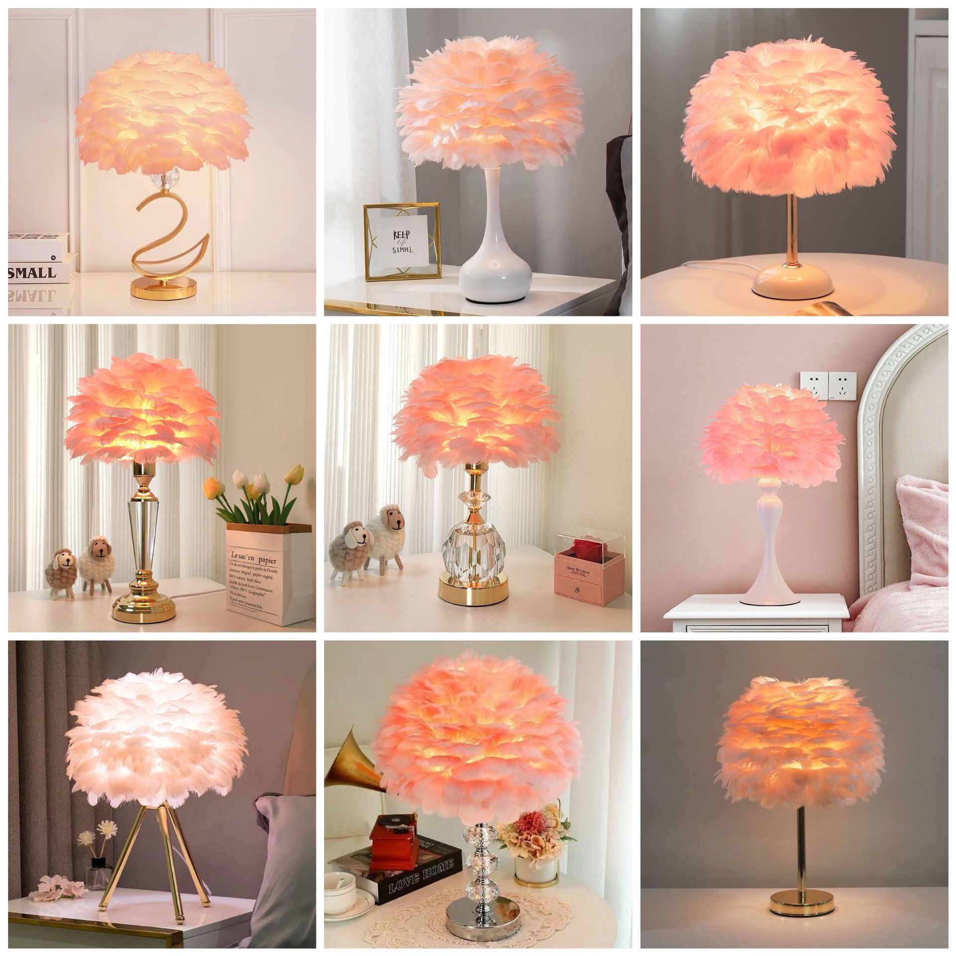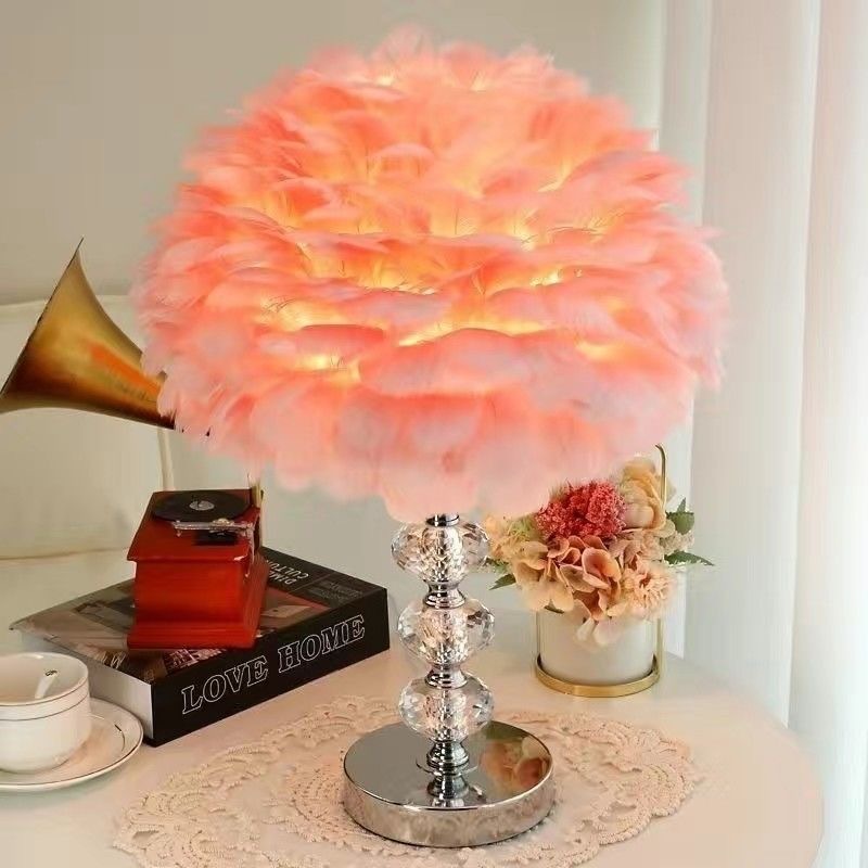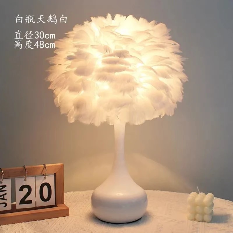 전체 스펙트럼 깃털 테이블 램프 소녀 침실 침대 램프 빛 고급 고급 하이 엔드 중산 장식 로맨틱 Led 조명 램프스토어 가기