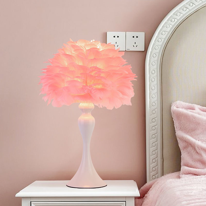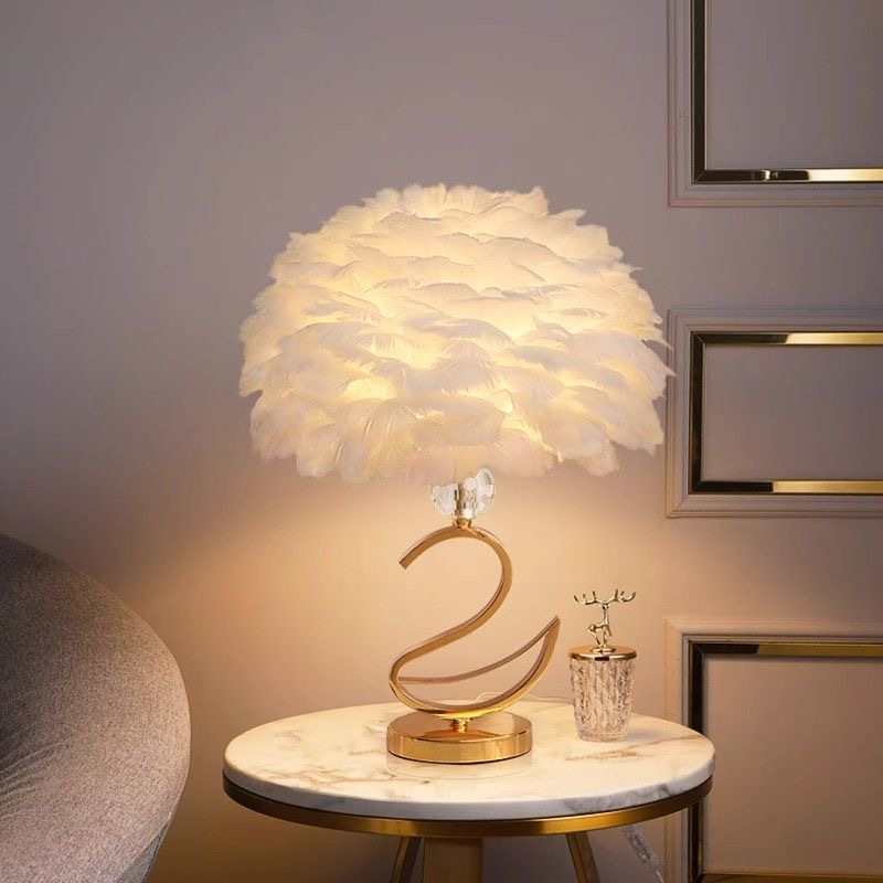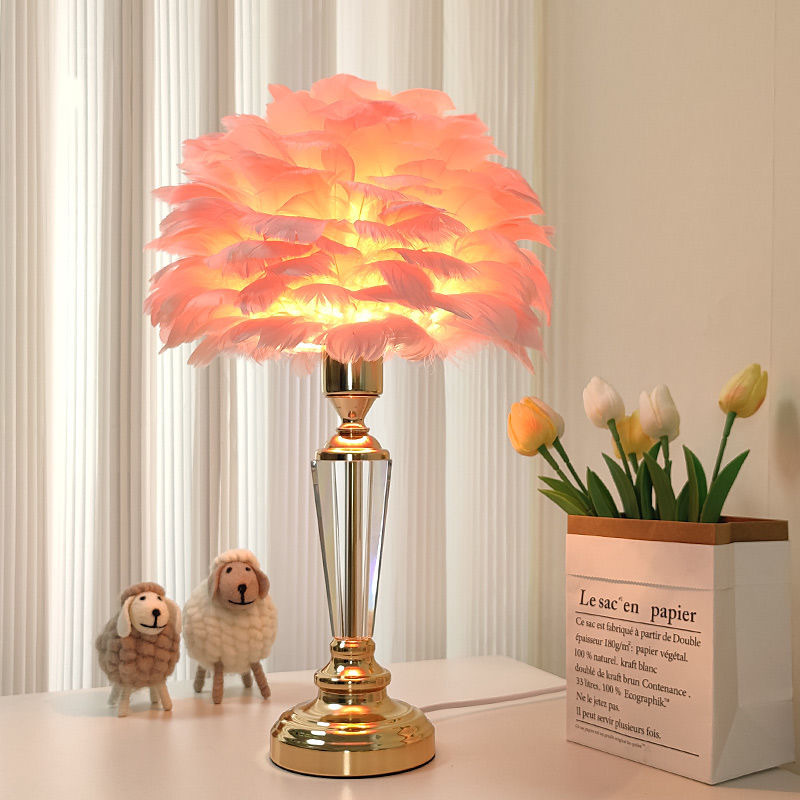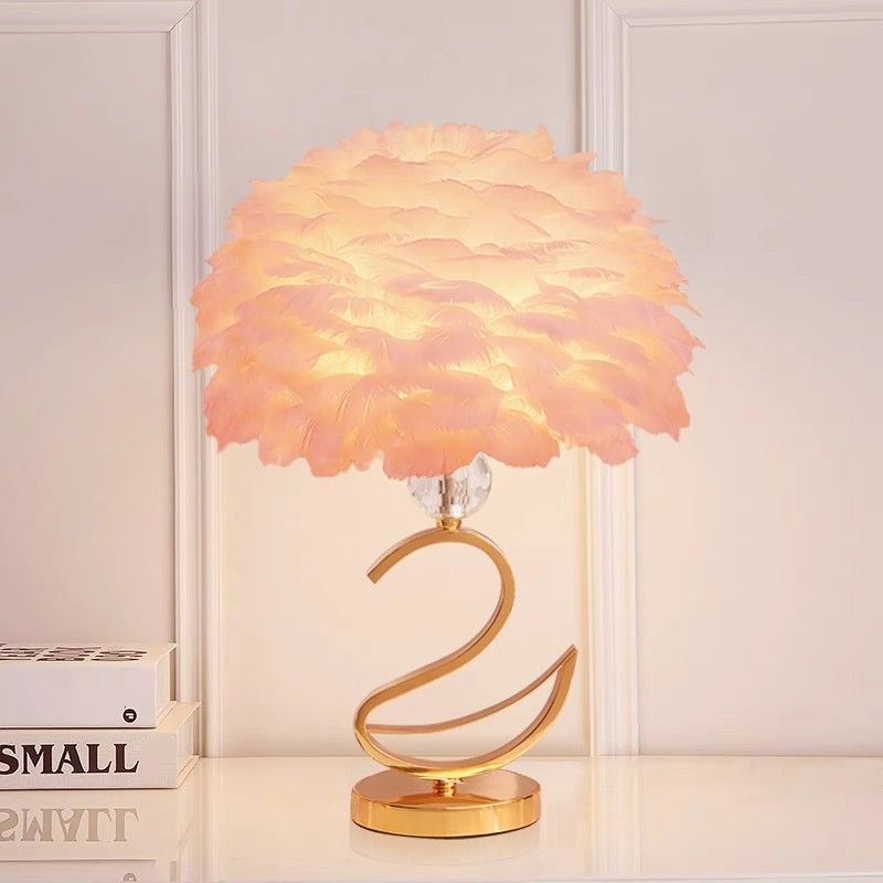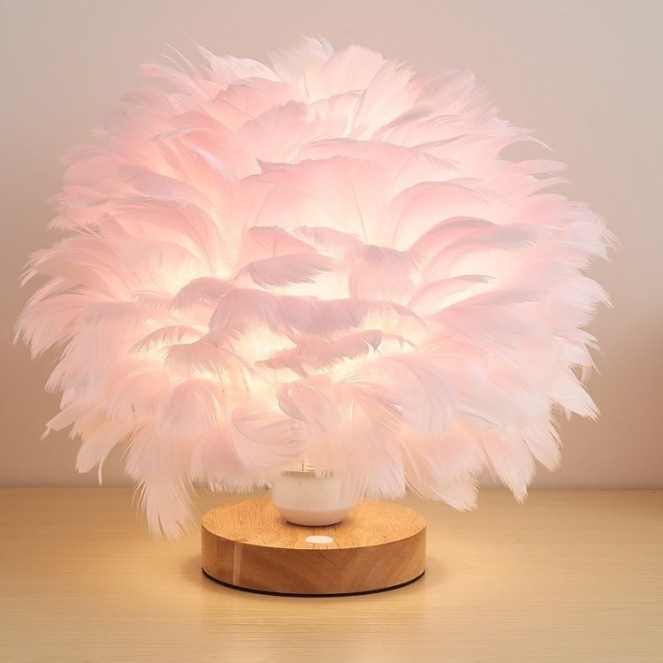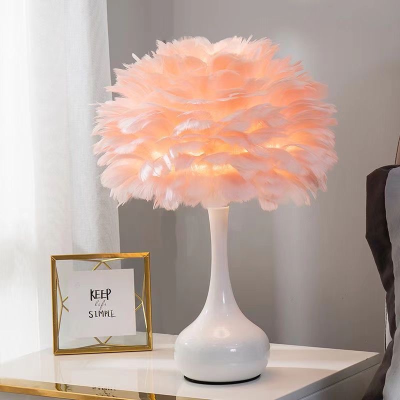 전체 스펙트럼 깃털 테이블 램프 소녀 침실 침대 램프 빛 고급 고급 하이 엔드 중산 장식 로맨틱 Led 조명 램프스토어 가기