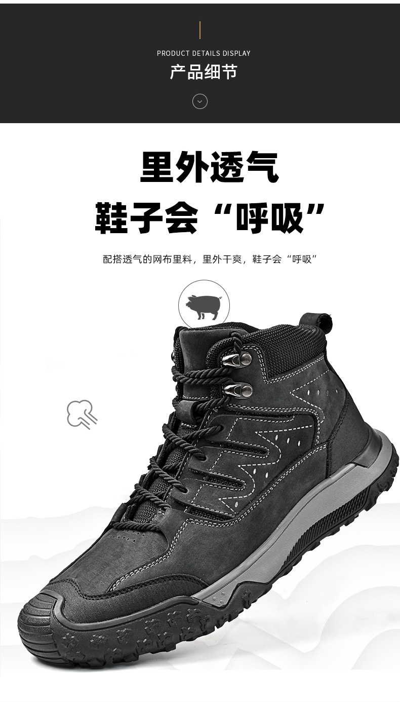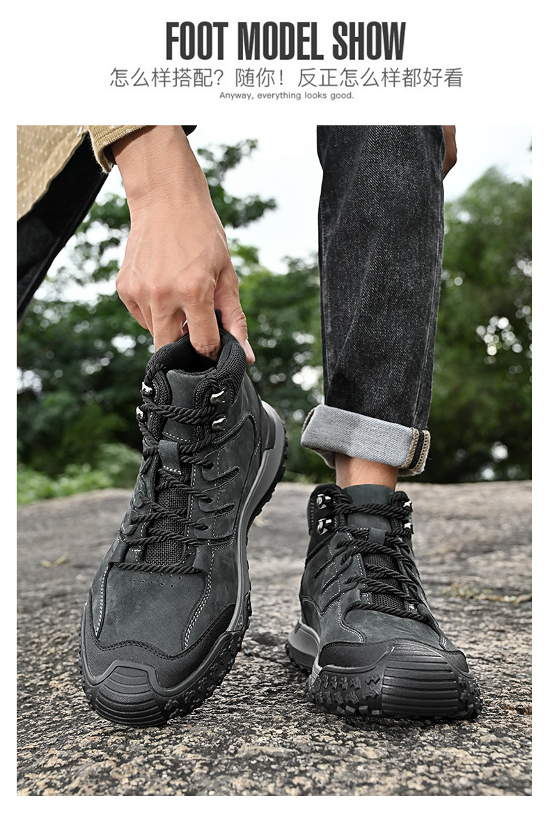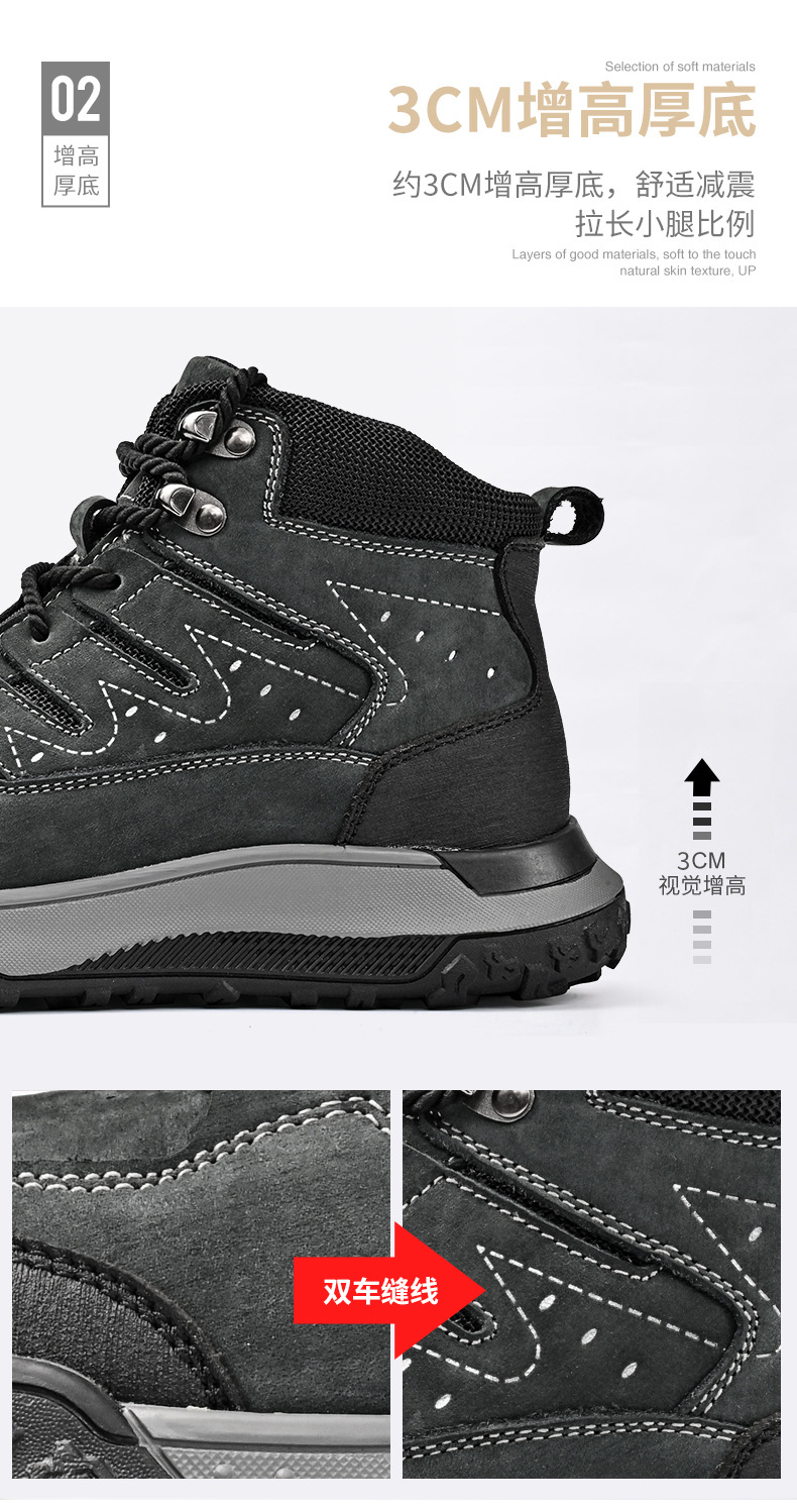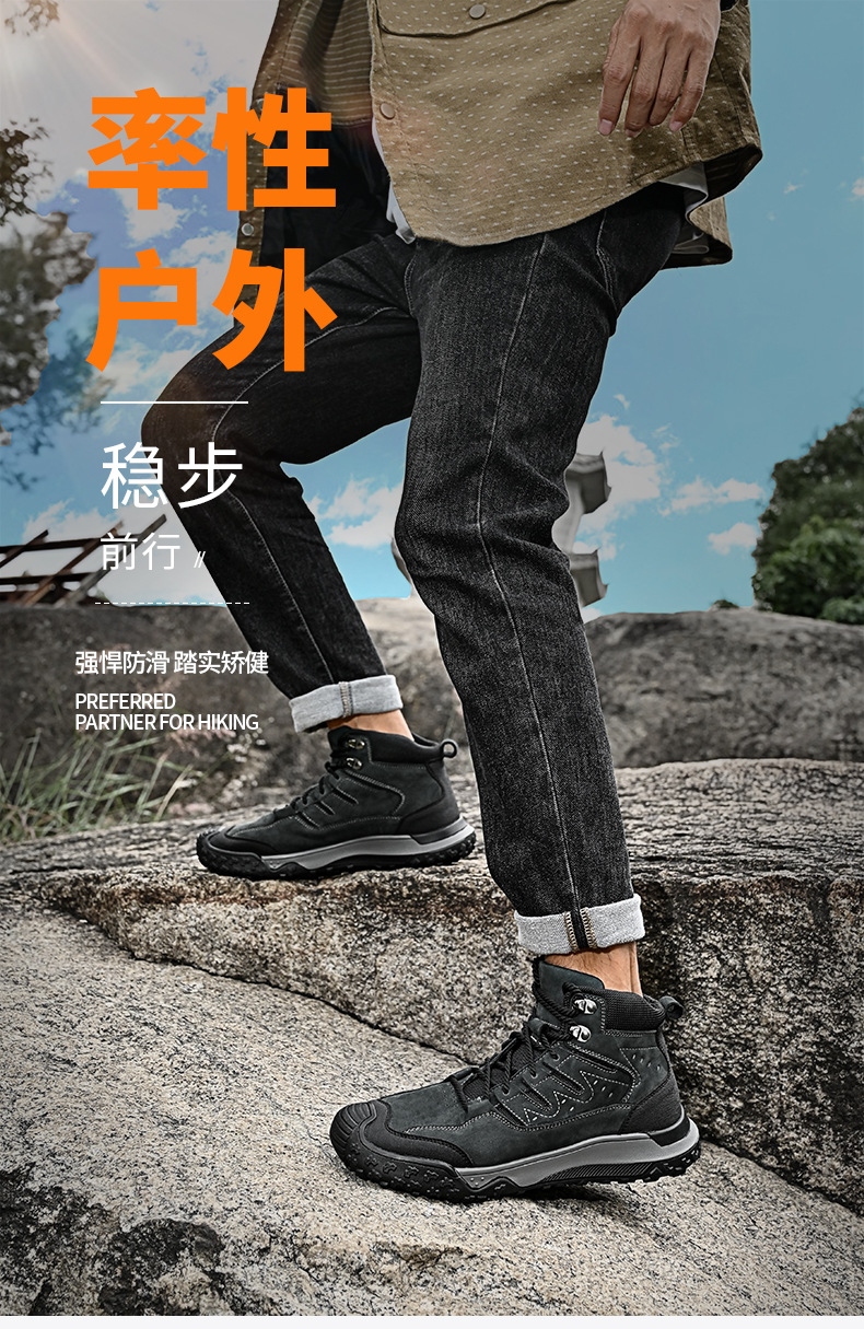 대외 무역 수출 남성용 야외 하이킹 신발, 하이탑 하이킹 신발, 가을 겨울 벨벳 코튼 남성용 신발, 1층 소가죽 레이스 업, 내마모성스토어 가기