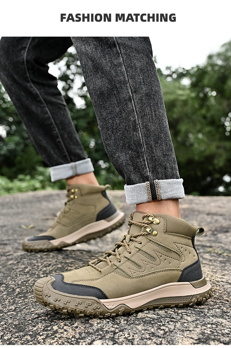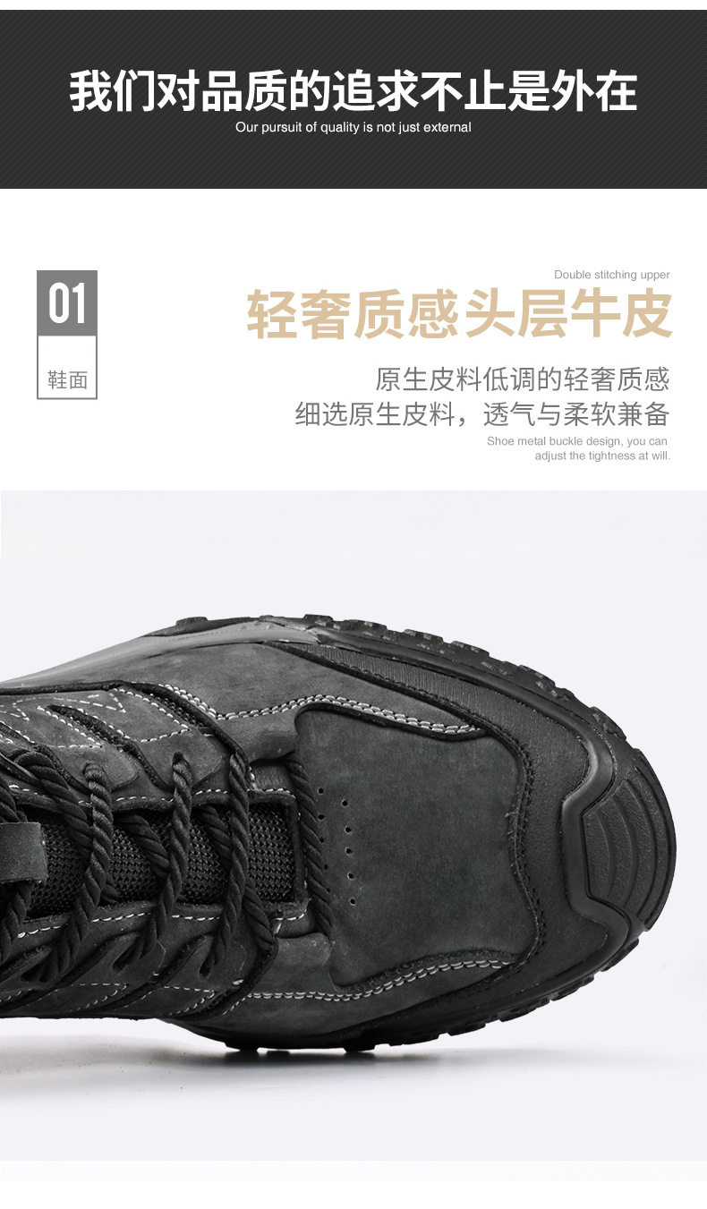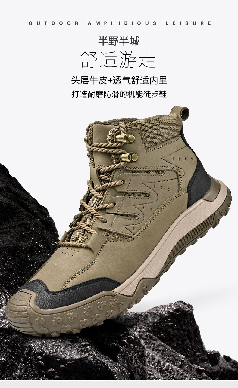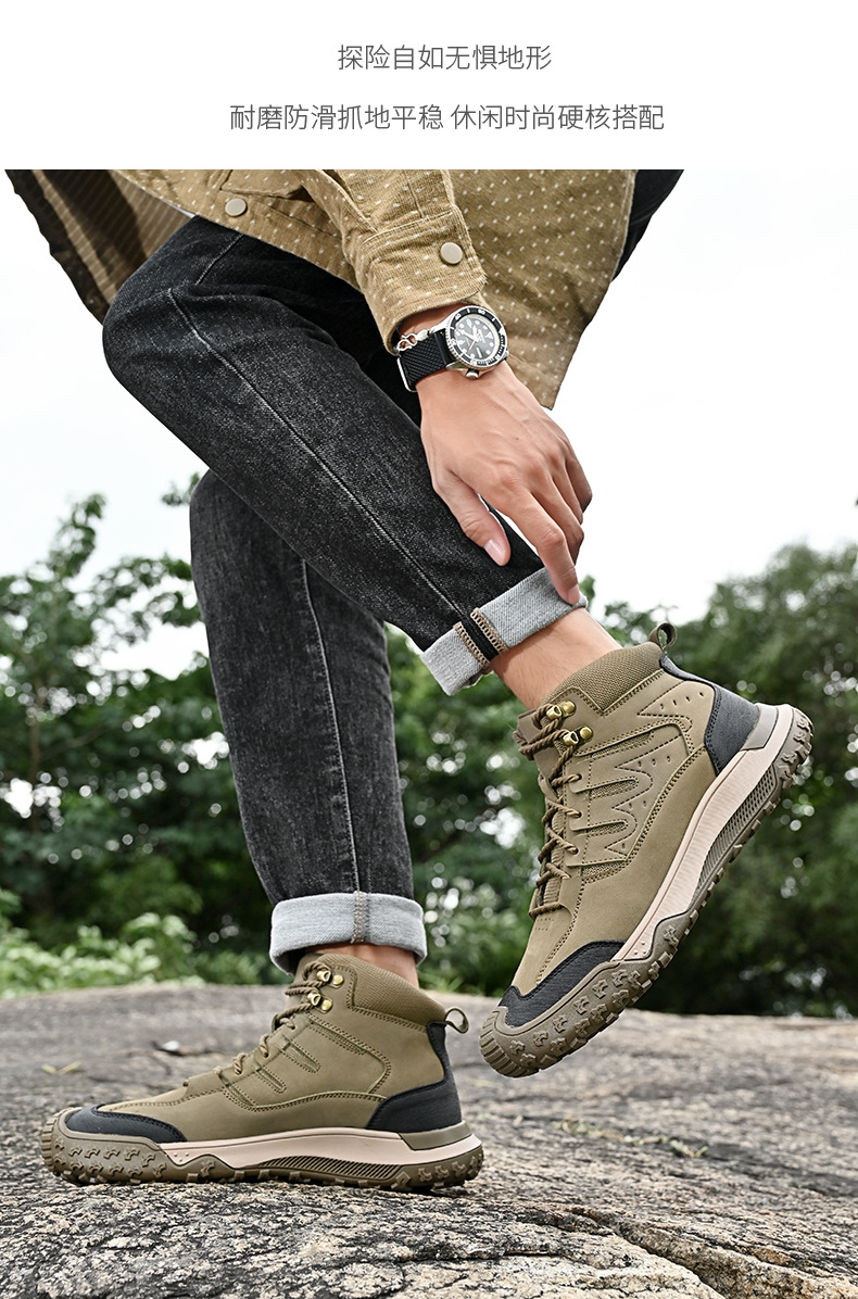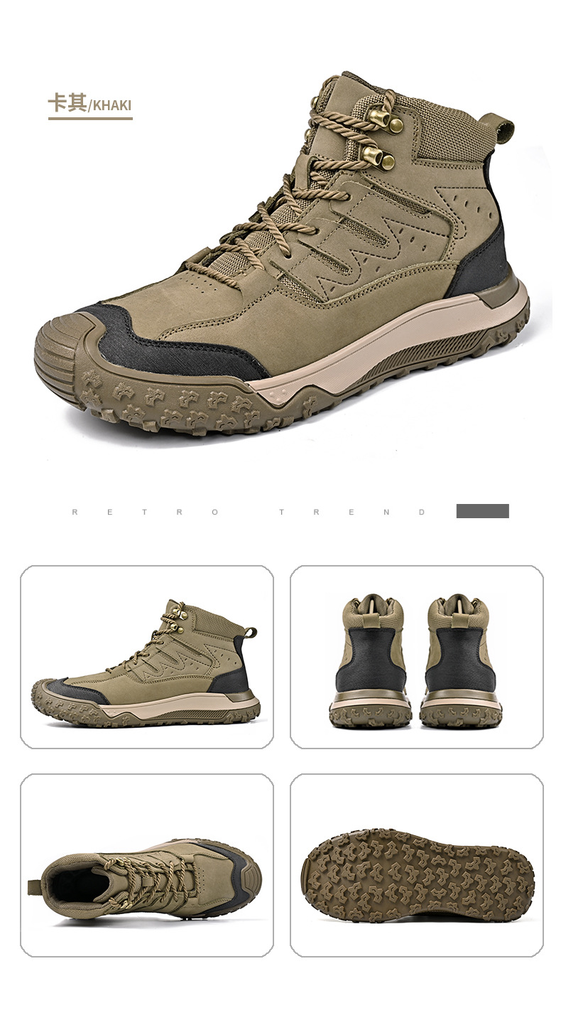 대외 무역 수출 남성용 야외 하이킹 신발, 하이탑 하이킹 신발, 가을 겨울 벨벳 코튼 남성용 신발, 1층 소가죽 레이스 업, 내마모성스토어 가기