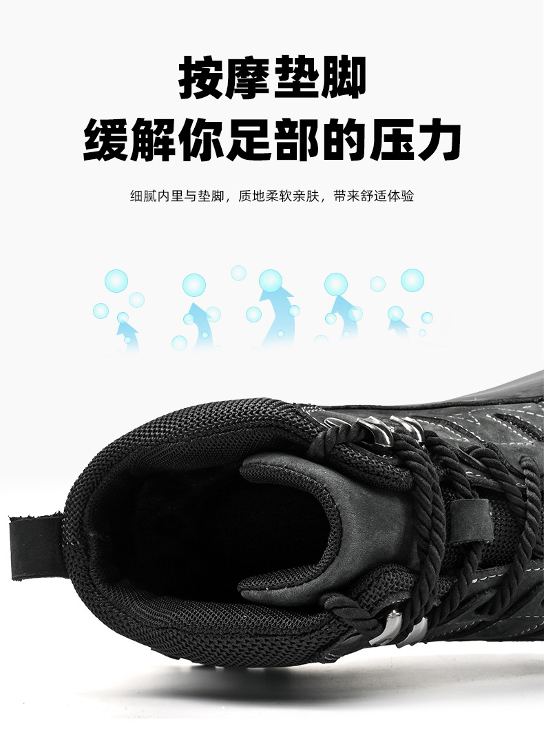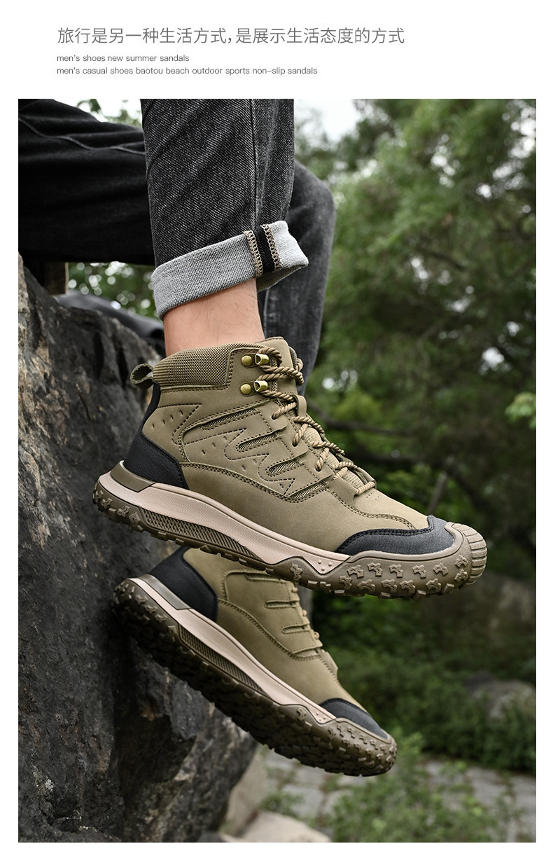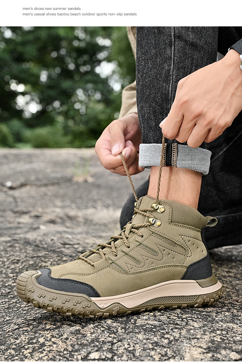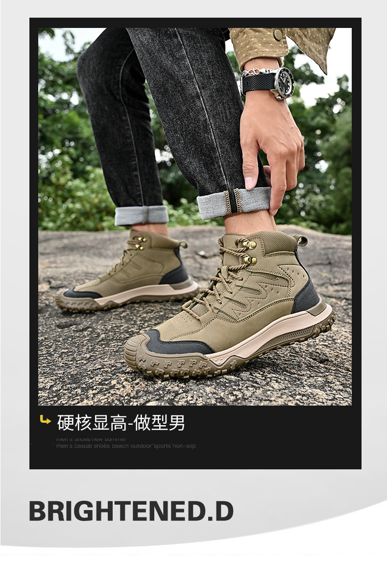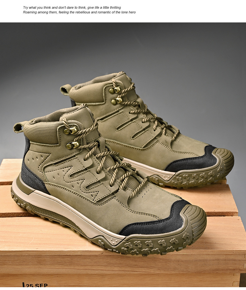 대외 무역 수출 남성용 야외 하이킹 신발, 하이탑 하이킹 신발, 가을 겨울 벨벳 코튼 남성용 신발, 1층 소가죽 레이스 업, 내마모성스토어 가기