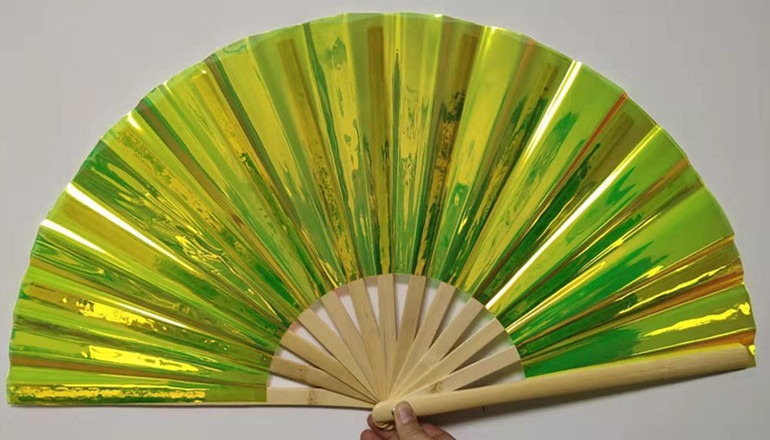 재고 국경 폭발 홀로그램 접이식 팬 PVC 팬 공예 타이지 팬 레이저 쿵푸 팬 재고 도매