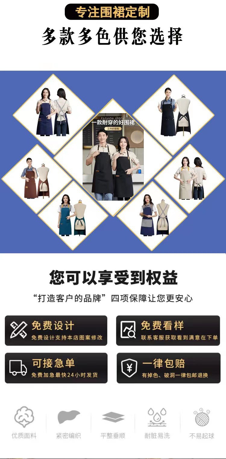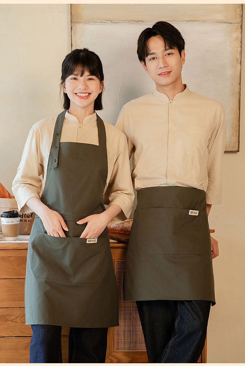새로운 이중 목적 하프 길이 앞치마 맞춤형 로고 웨이터 작업복 순수 코튼 케이터링 커피 숍 앞치마 자수