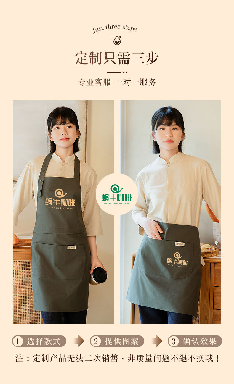 새로운 이중 목적 하프 길이 앞치마 맞춤형 로고 웨이터 작업복 순수 코튼 케이터링 커피 숍 앞치마 자수스토어 가기