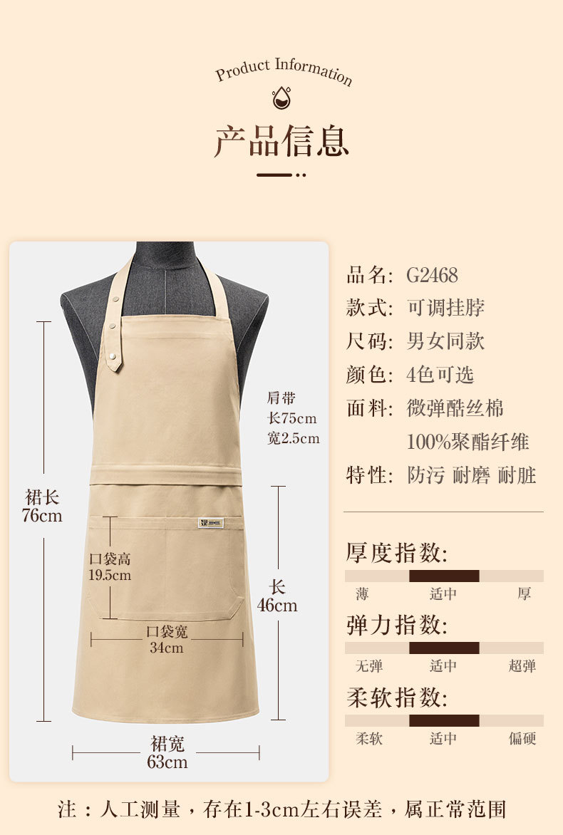 • 카키 [마이크로 엘라스틱 쿨 실크 코튼] 방수 겸용 앞치마