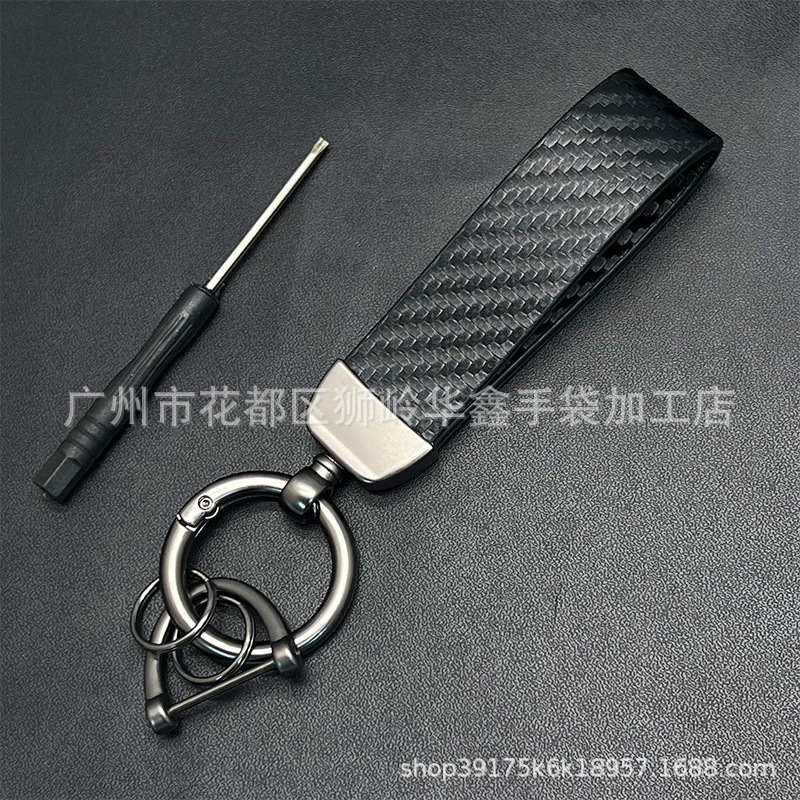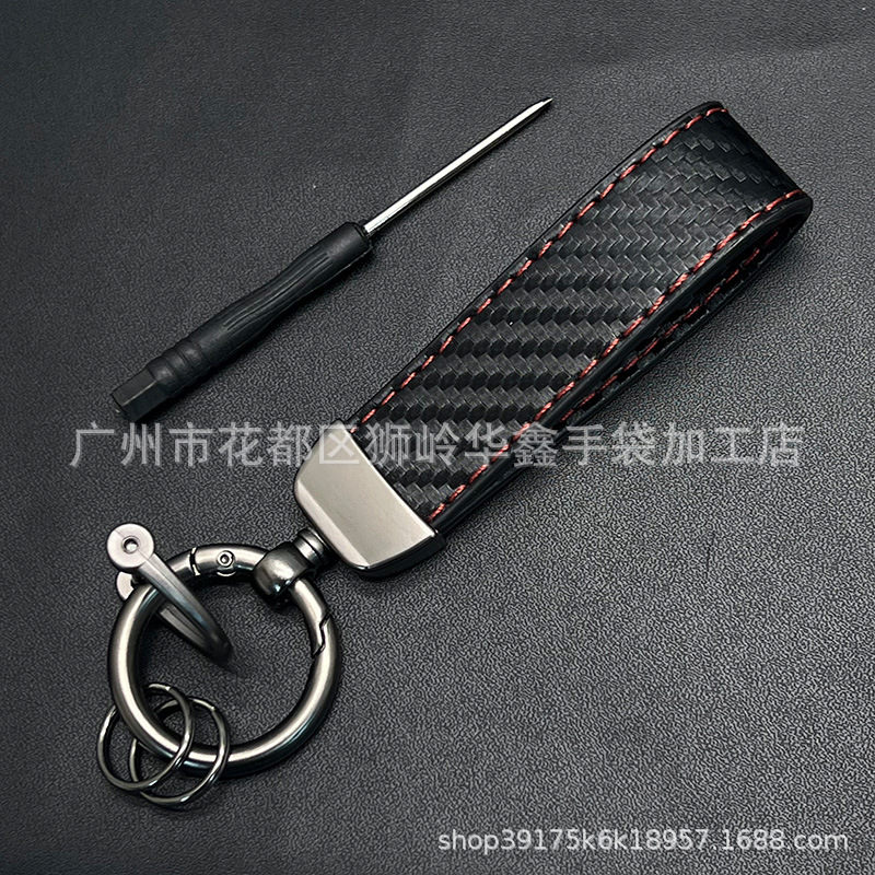 국경을 넘는 카본 패턴 자동차 키체인 현대적이고 심플한 금속 가죽 키체인 액세서리 소형 선물 공장 도매스토어 가기